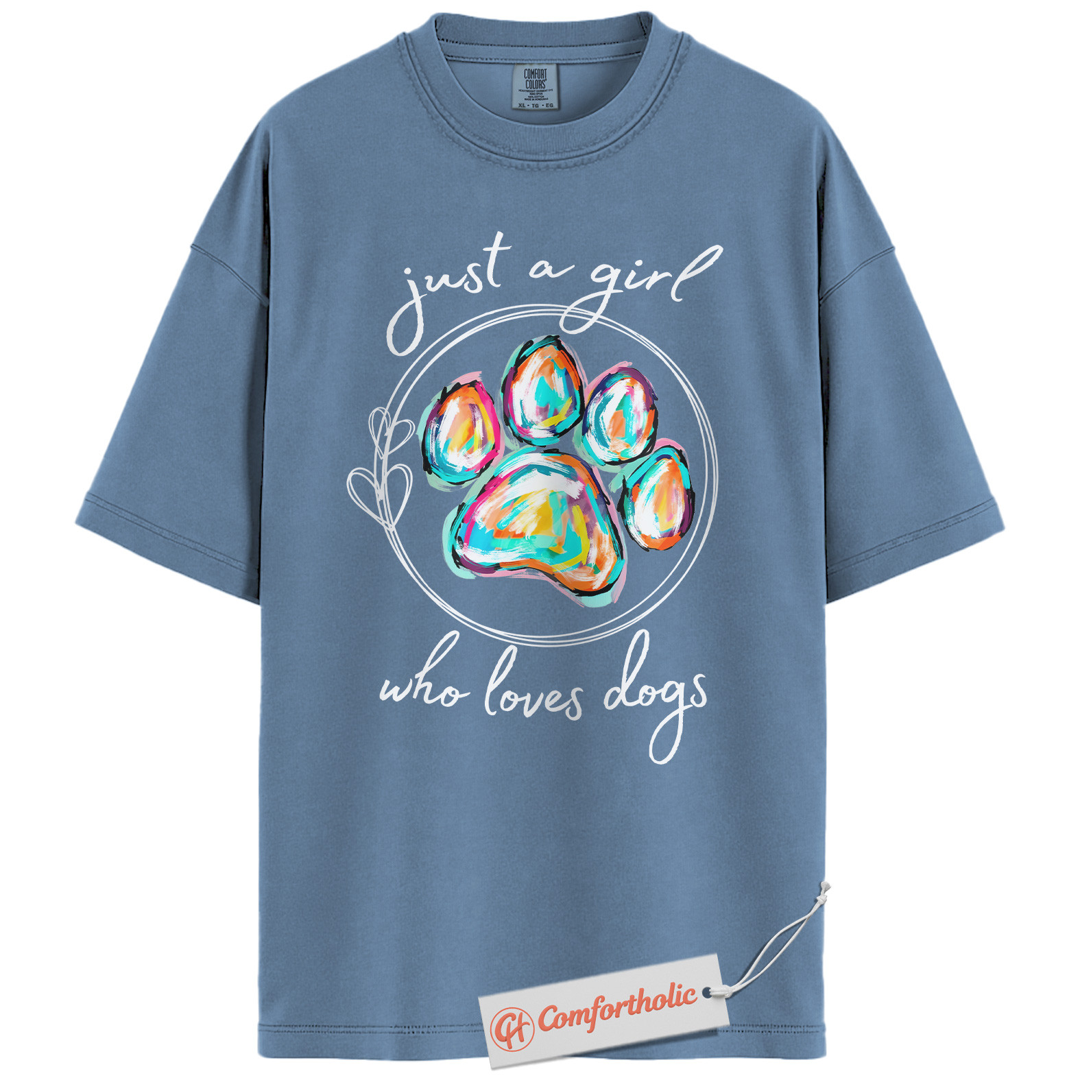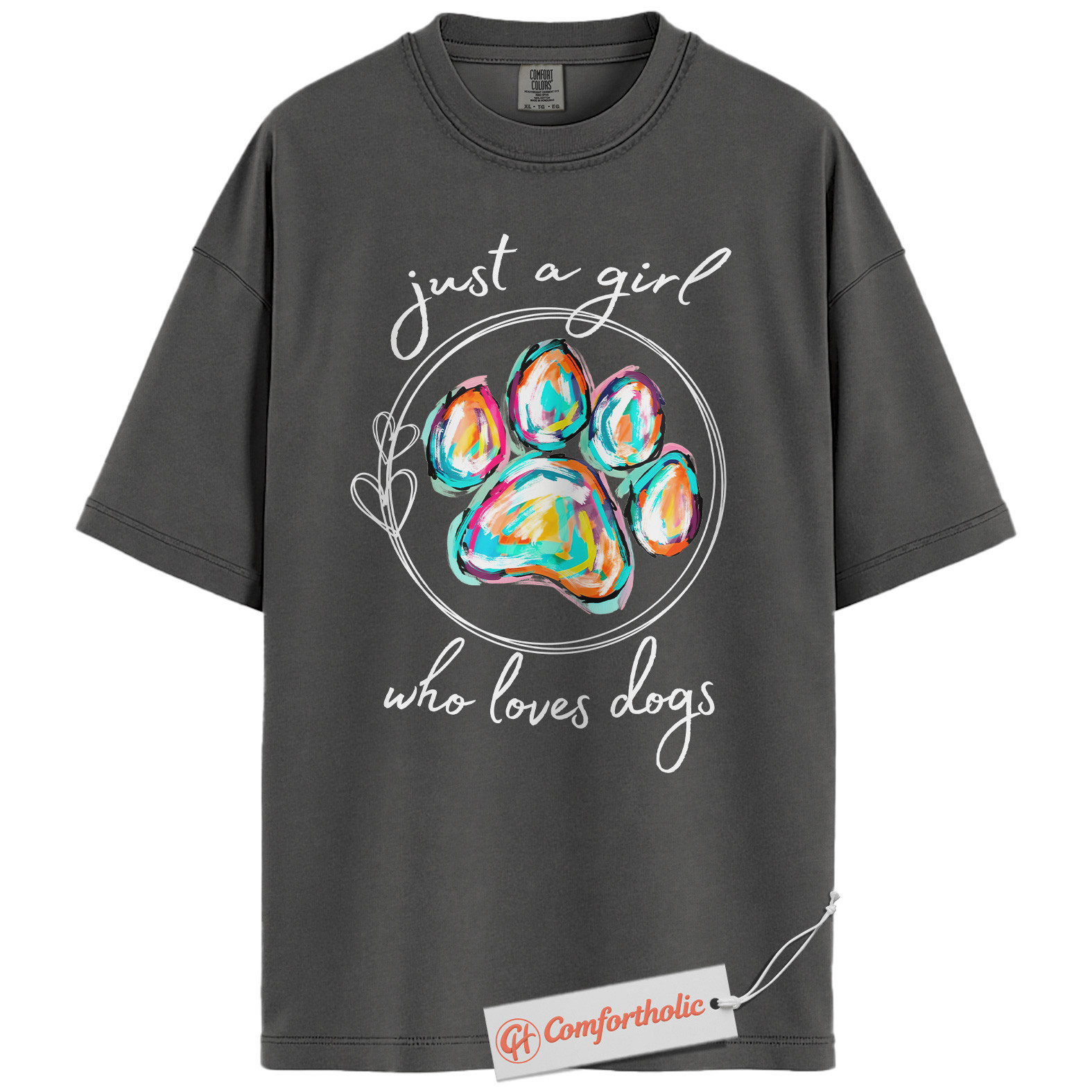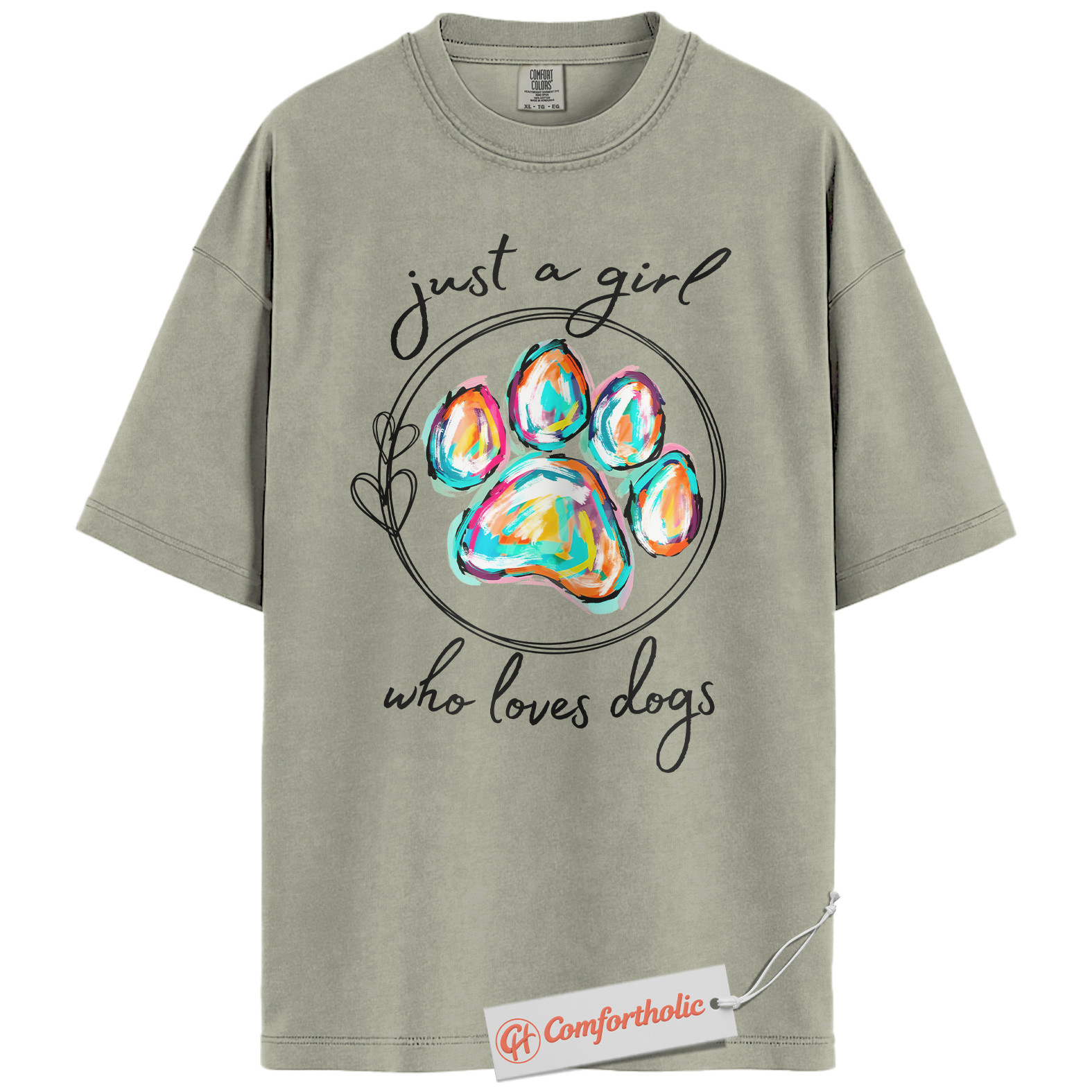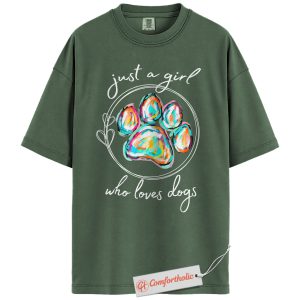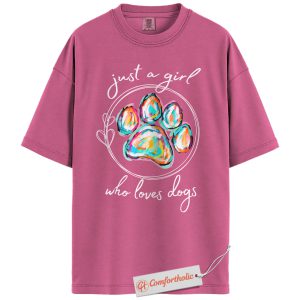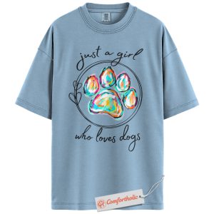 Just a Girl Who Loves Dogs Shirt, Colorful Paw Print Shirt, Dog Lover Shirt, Comfort Colors Shirt
