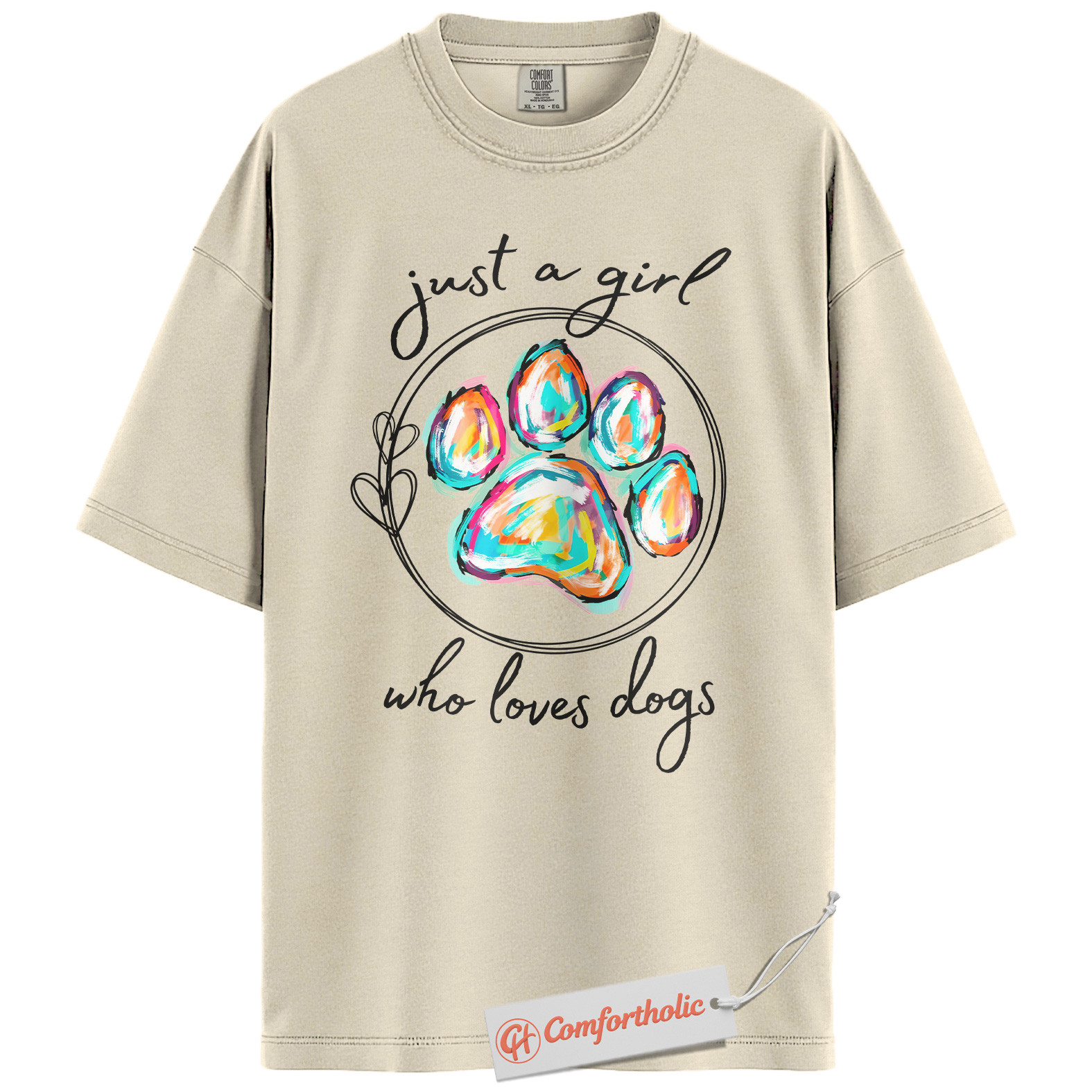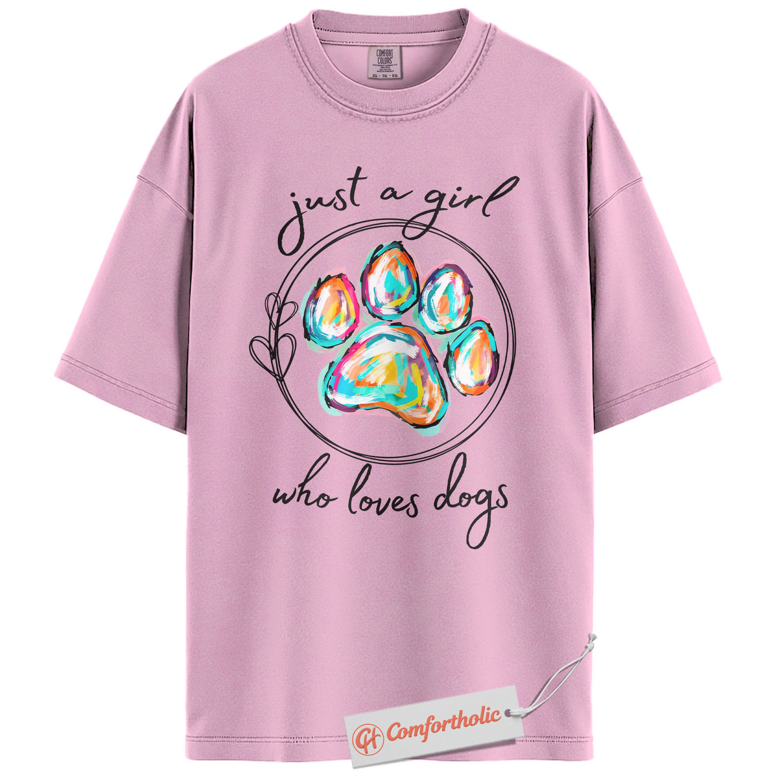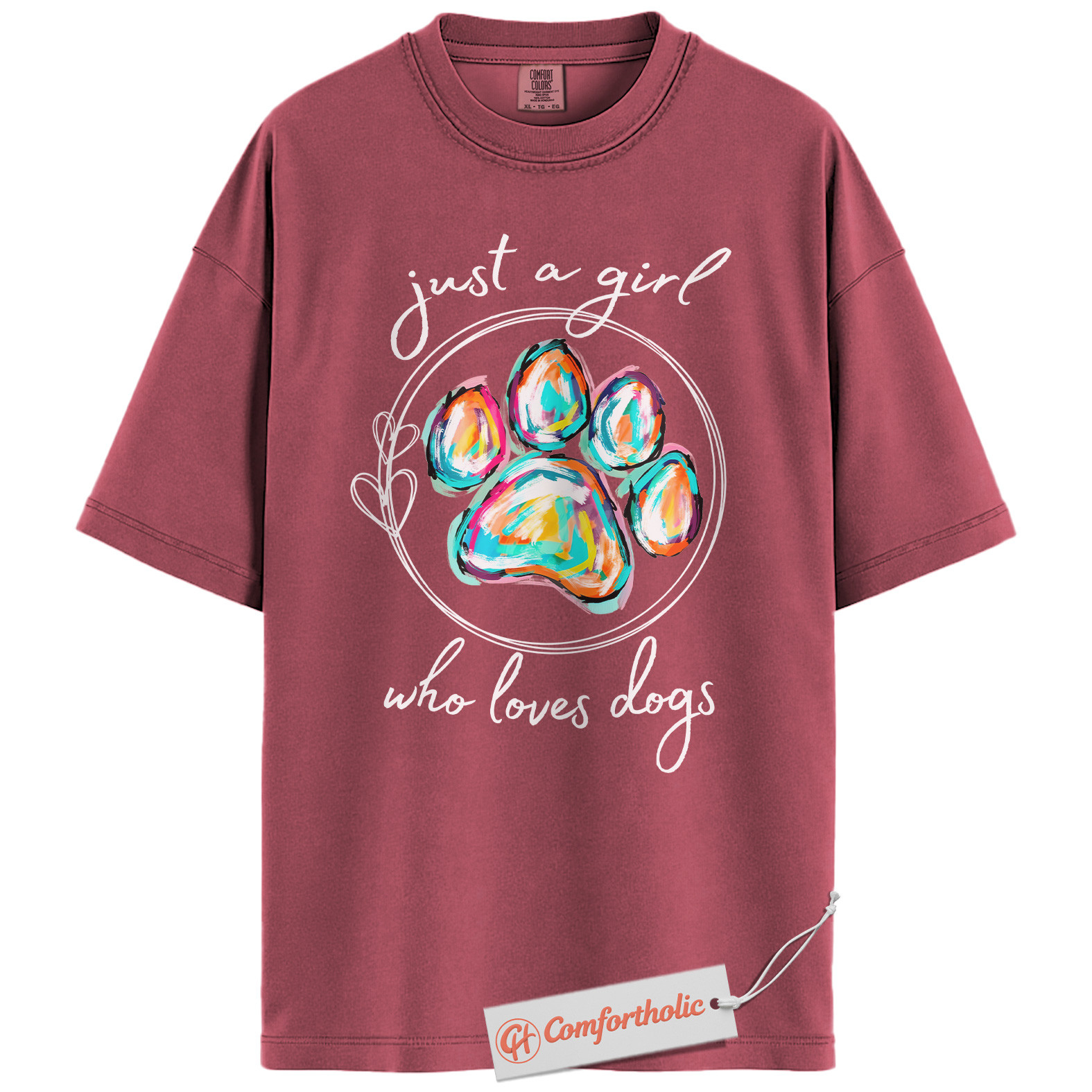 Just a Girl Who Loves Dogs Shirt, Colorful Paw Print Shirt, Dog Lover Shirt, Comfort Colors Shirt