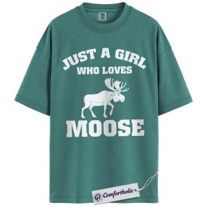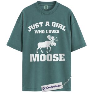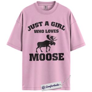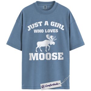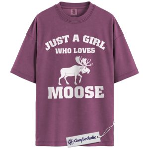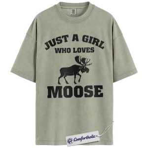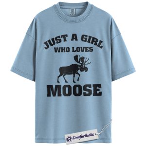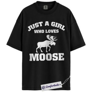 Just a Girl Who Loves Moose Shirt, Cute Wildlife Animal T-Shirt, Nature Outdoor Graphic Tee, Gift for Moose Lovers, Comfort Colors Shirt