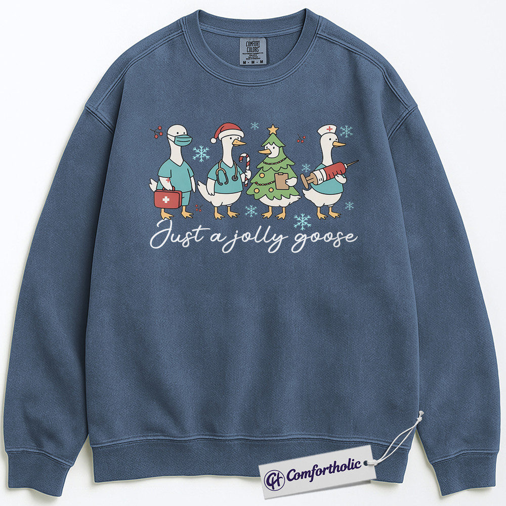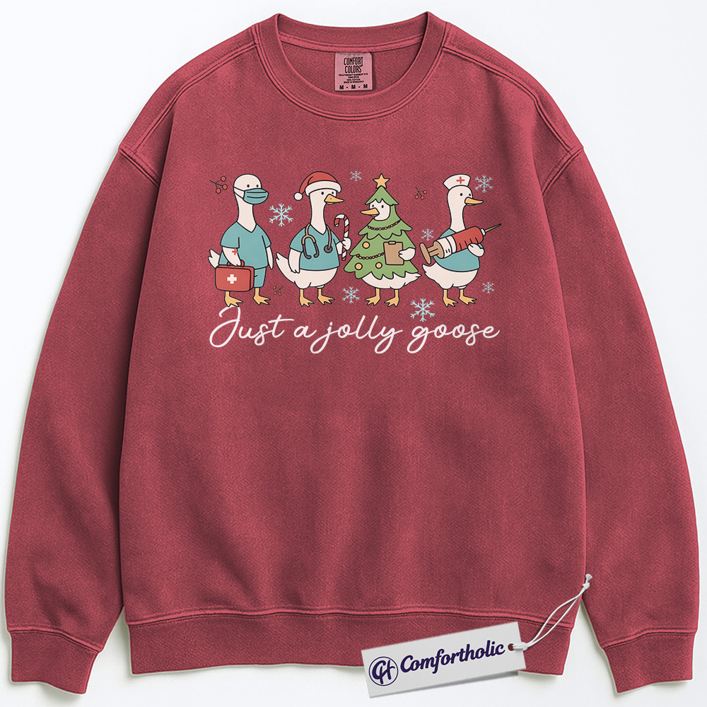 Just a Jolly Goose Sweatshirt, Funny Christmas Nurse Pullover, Holiday Medical Worker Graphic Crewneck, Cute Healthcare Gift for Goose Lovers, Comfort Colors Sweatshirt