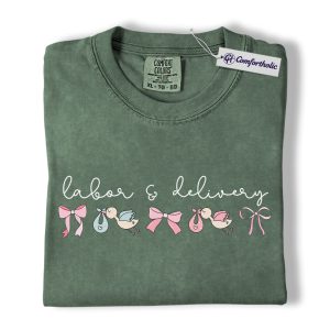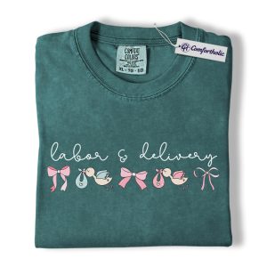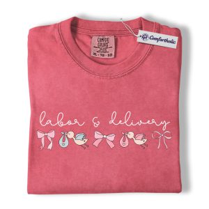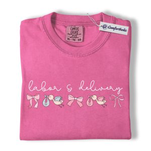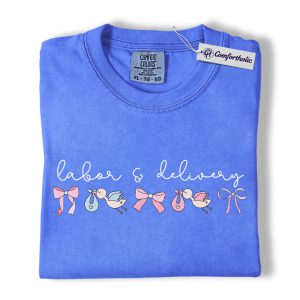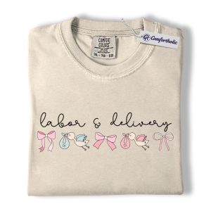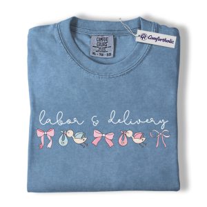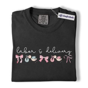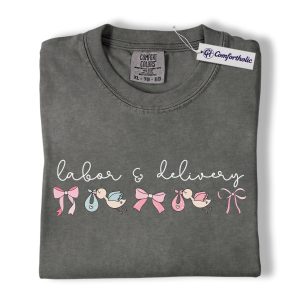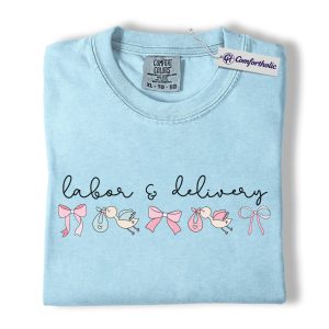 Labor & Delivery Nurse Shirt, Cute Stork Baby Bow Graphic Tee, L&D OB RN T-Shirt, Gift for Labor and Delivery Nurses, Comfort Colors Shirt