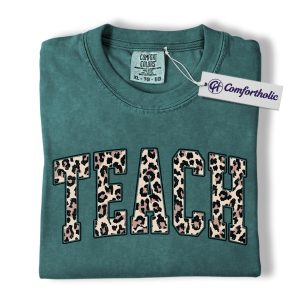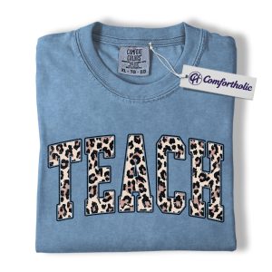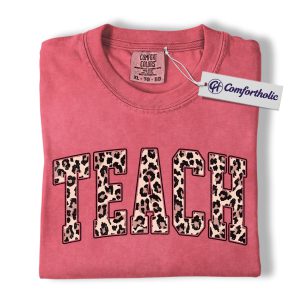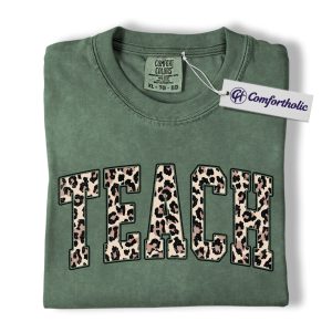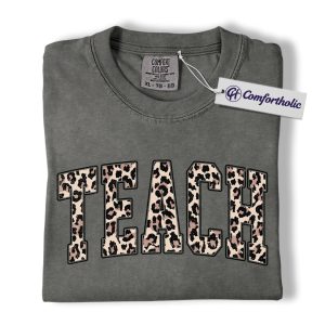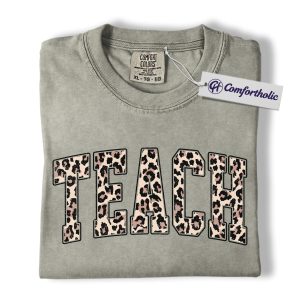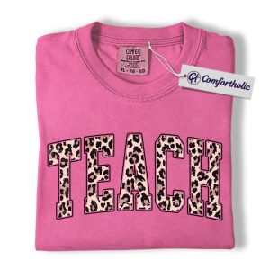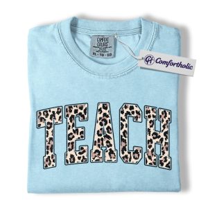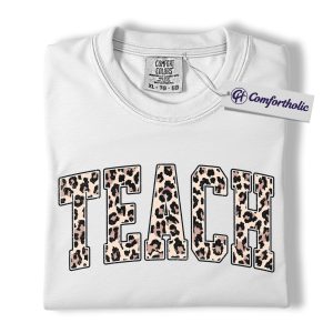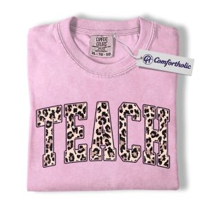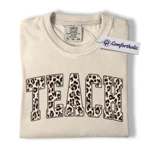 Leopard Print Teach Shirt, Cute Teacher T-Shirt, Trendy Back to School Graphic Tee, Aesthetic Educator Gift for Women, Teacher Comfort Colors Shirt