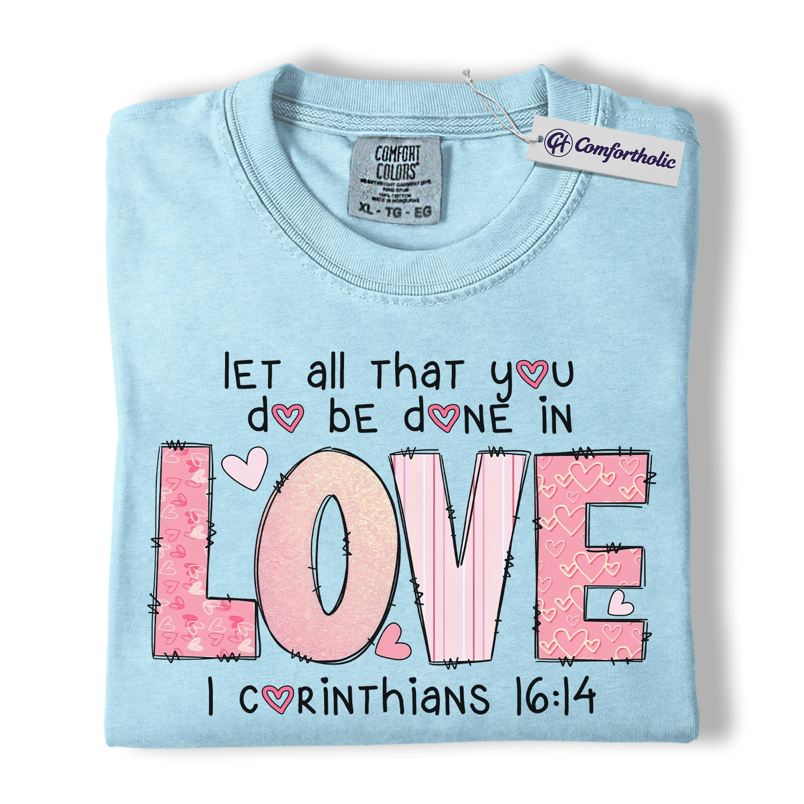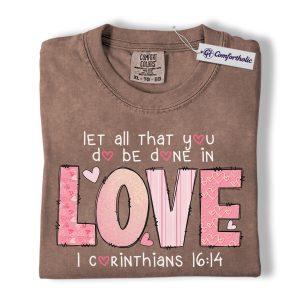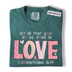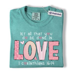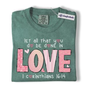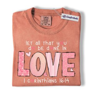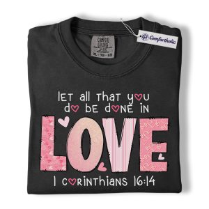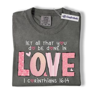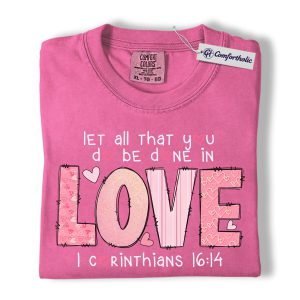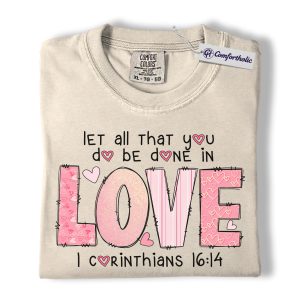 Let All You Do Be Done In Love Shirt, Pink Christian Valentine Graphic Tee, 1 Corinthians 16:14 Bible Verse T-Shirt, Faith Gift for Women & Church Ladies, Comfort Colors Shirt