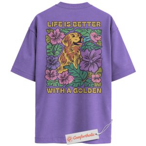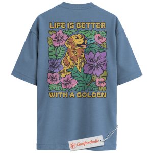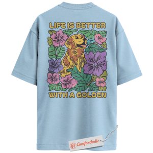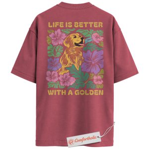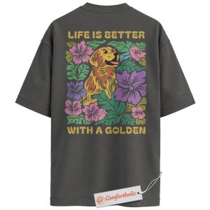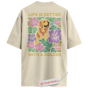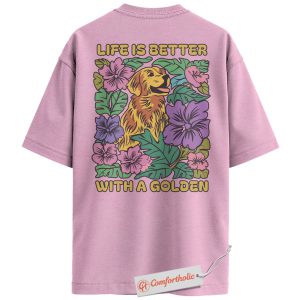 Life Is Better with a Golden Shirt, Golden Retriever Dog T-Shirt, Floral Dog Lover Graphic Tee, Gift for Dog Moms, Cute Pet Comfort Colors Back Print Shirt