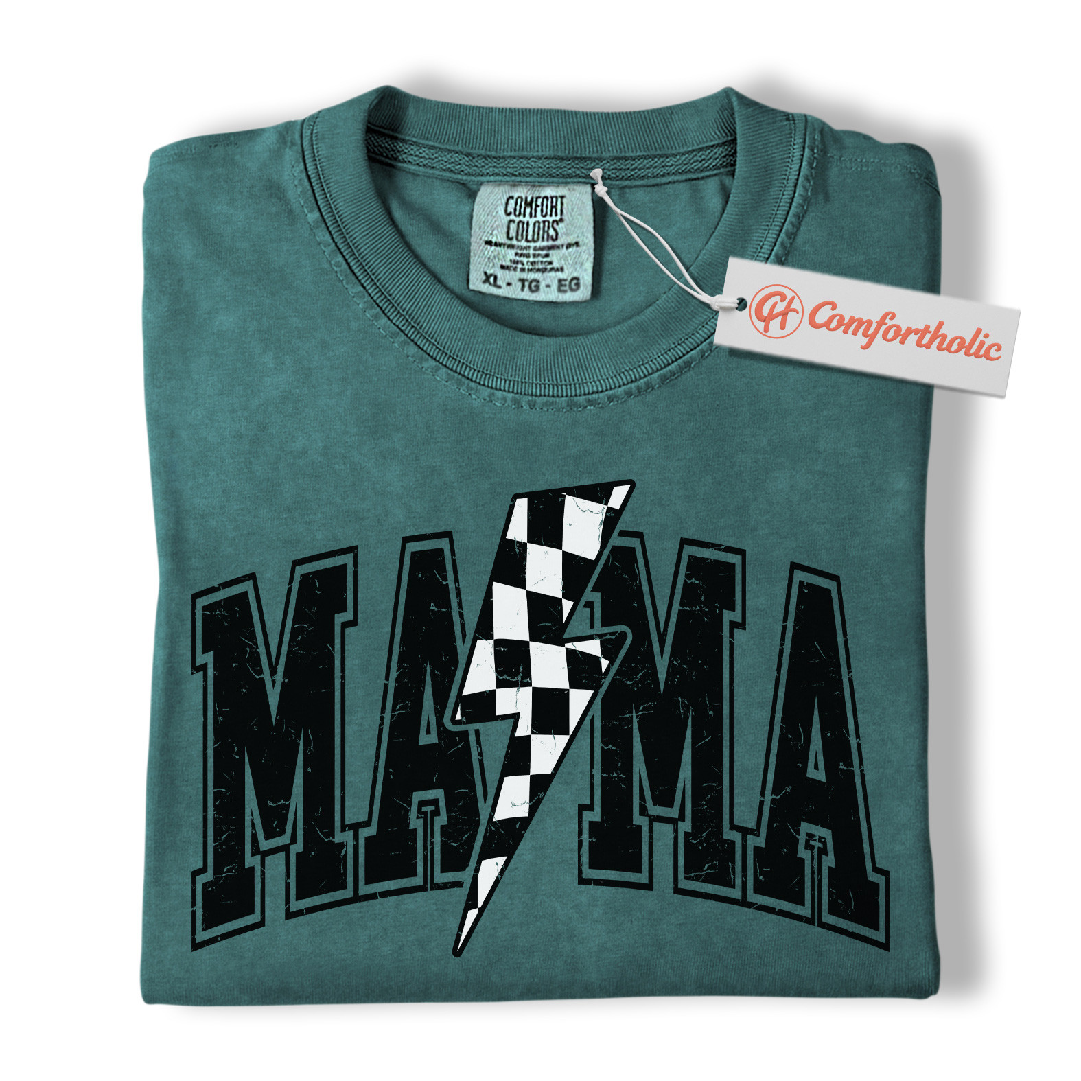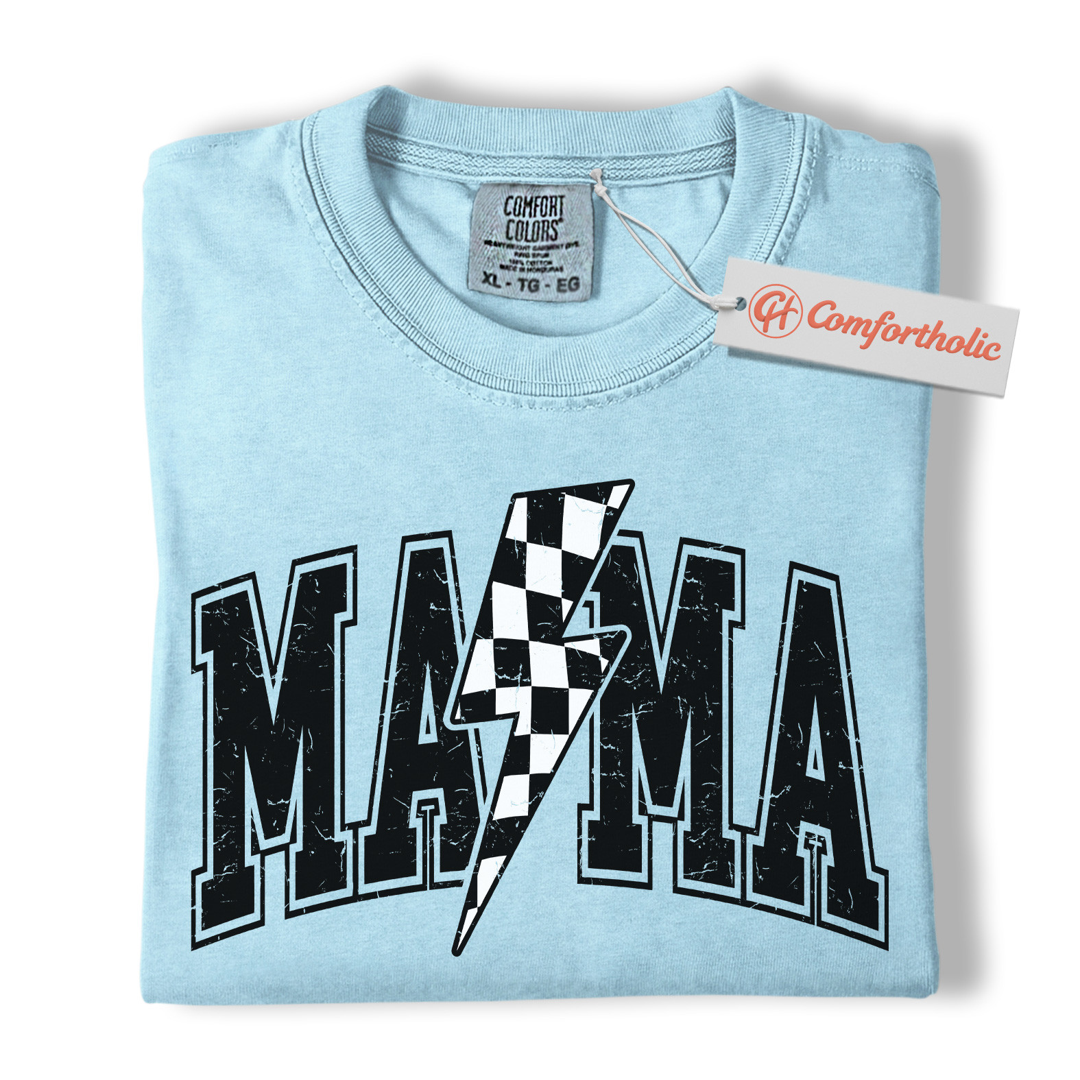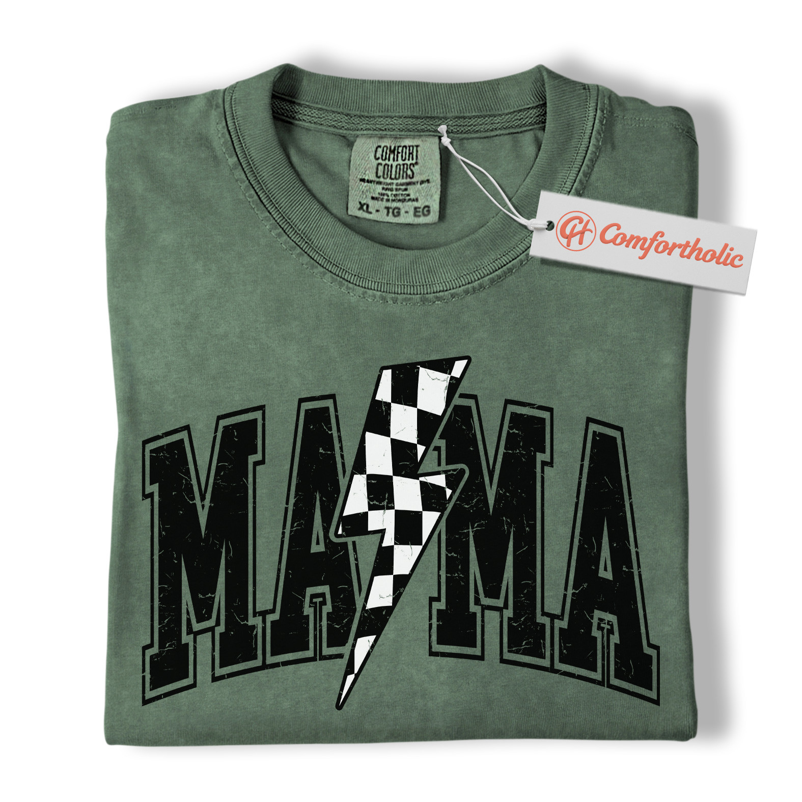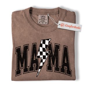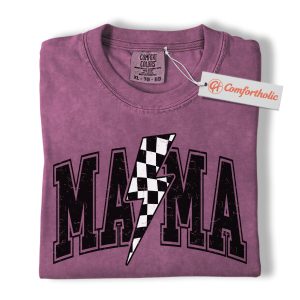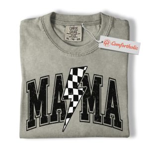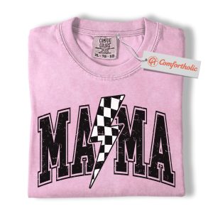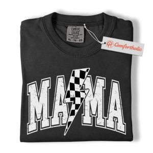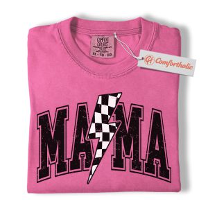 Lightning Bolt Mama Shirt, Checkered Bolt Mom Graphic Tee, Mother’s Day Gift, Family Comfort Colors Shirt