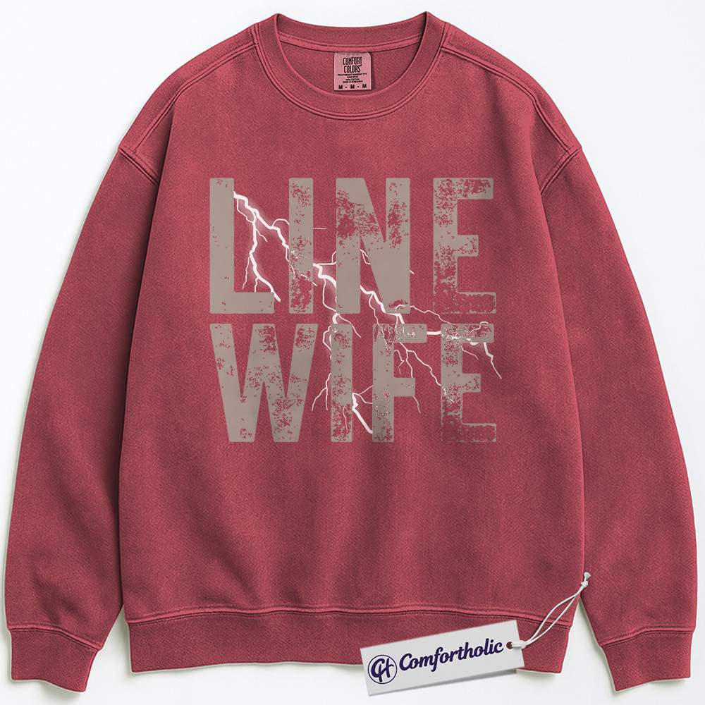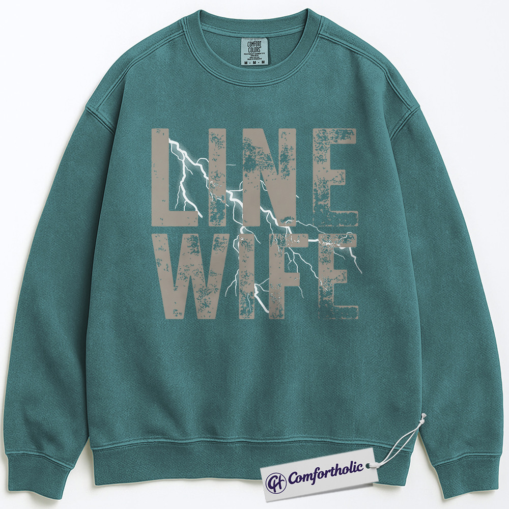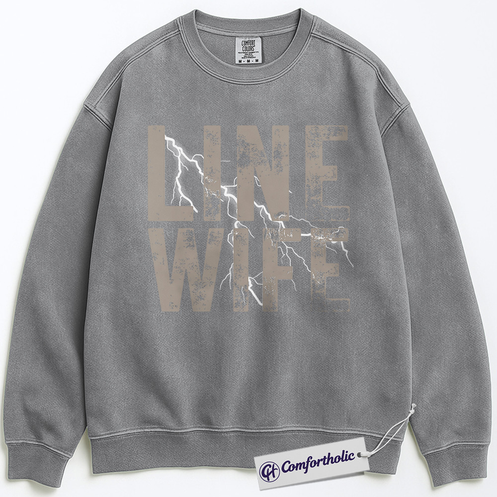 Line Wife Sweatshirt, Lineman Support Graphic Pullover, Proud Lineman Wife Crewneck Sweatshirt, Gritty Lightning Gift, Comfort Colors Sweatshirt