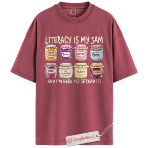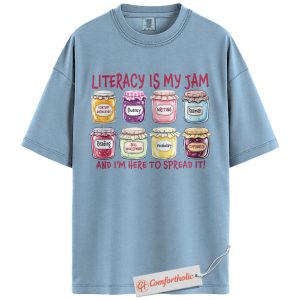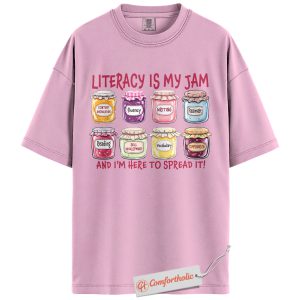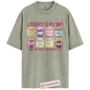Literacy Is My Jam Shirt, Funny Reading Teacher Shirt, Bookworm Educator Shirt, Classroom Comfort Colors T-Shirt