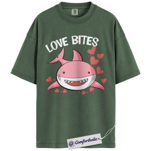 Love Bites Shark Shirt, Cute Valentine Ocean Graphic Tee, Funny Shark Lover T-Shirt, Valentine’s Day Gift for Sea Animal Lovers, Comfort Colors Shirt