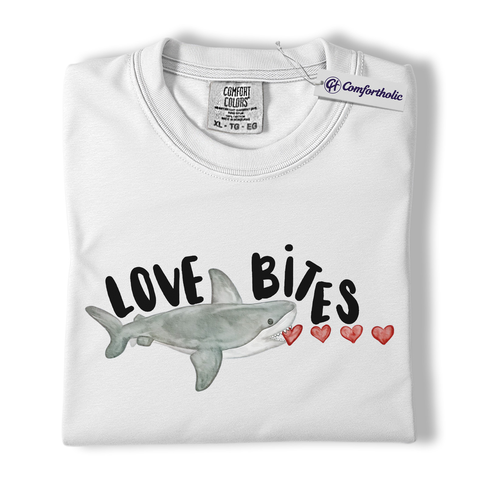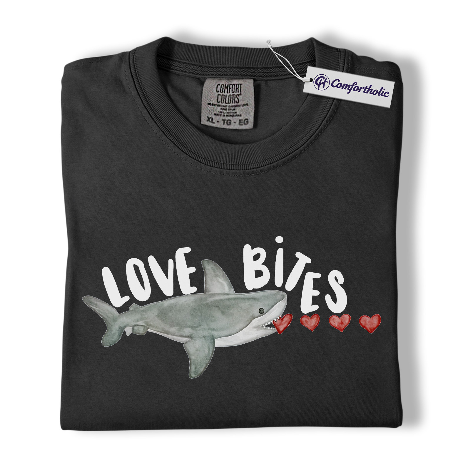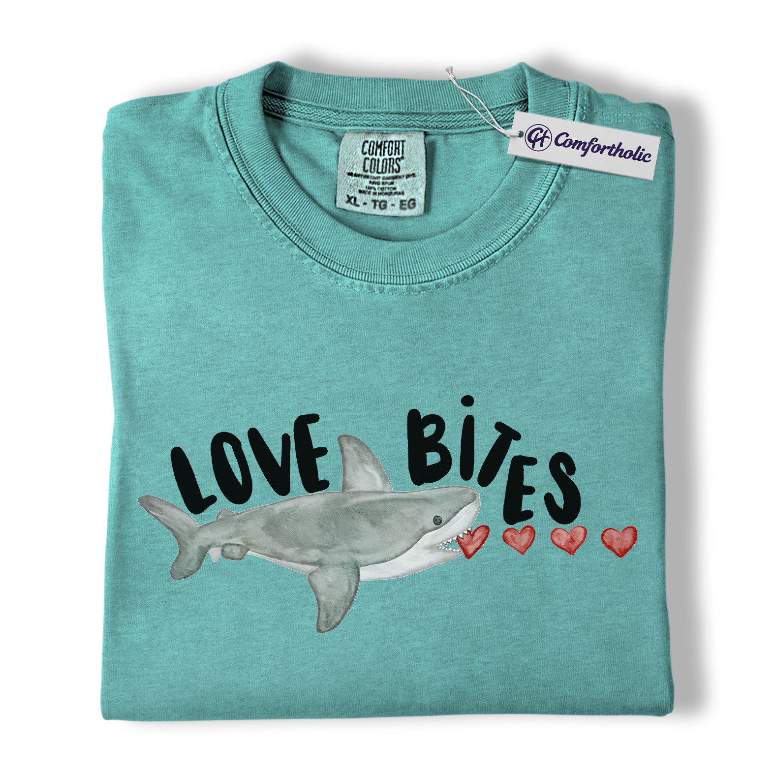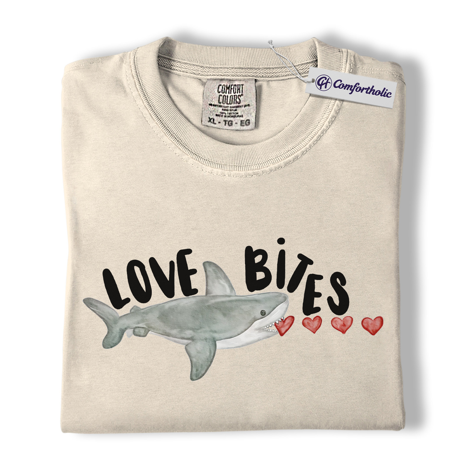 Love Bites Shirt, Funny Shark Valentine T-Shirt, Cute Ocean Animal Lover Pun Tee, Sea Life Gift for Boyfriend or Girlfriend, Comfort Colors Shirt