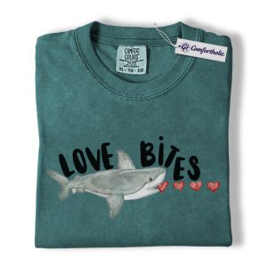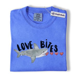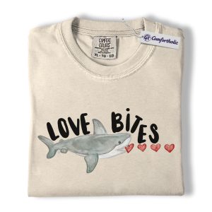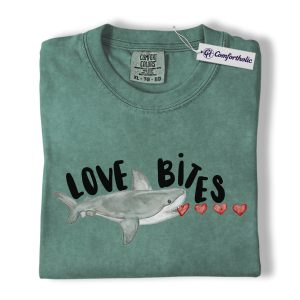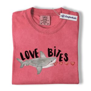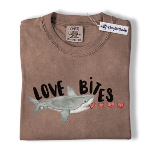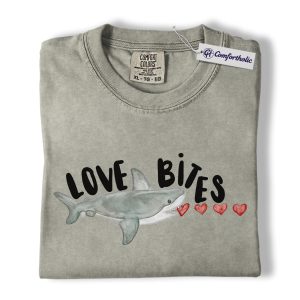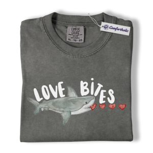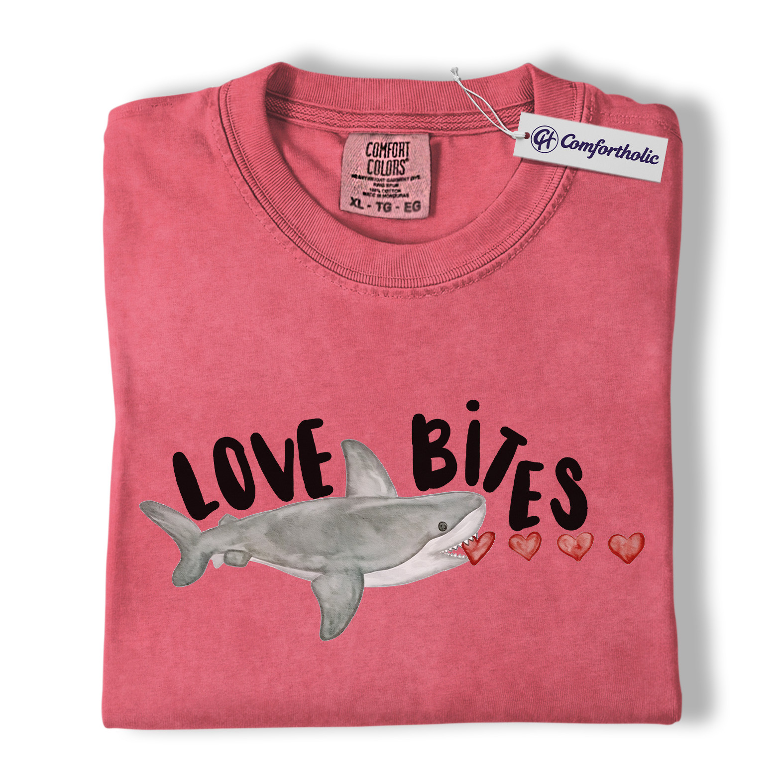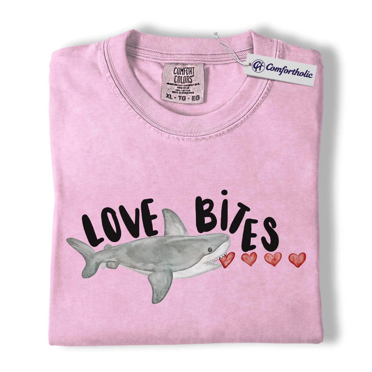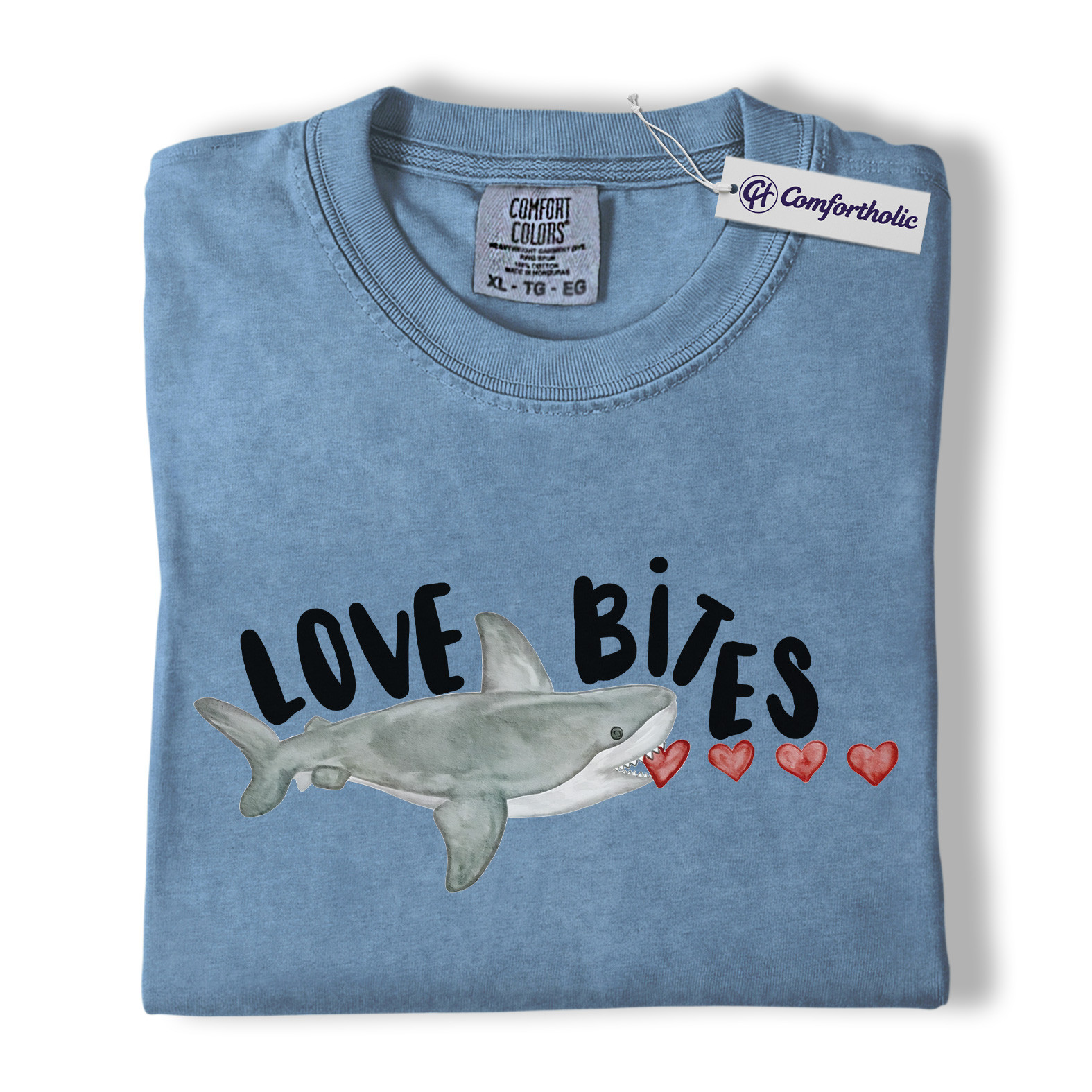 Love Bites Shirt, Funny Shark Valentine T-Shirt, Cute Ocean Animal Lover Pun Tee, Sea Life Gift for Boyfriend or Girlfriend, Comfort Colors Shirt