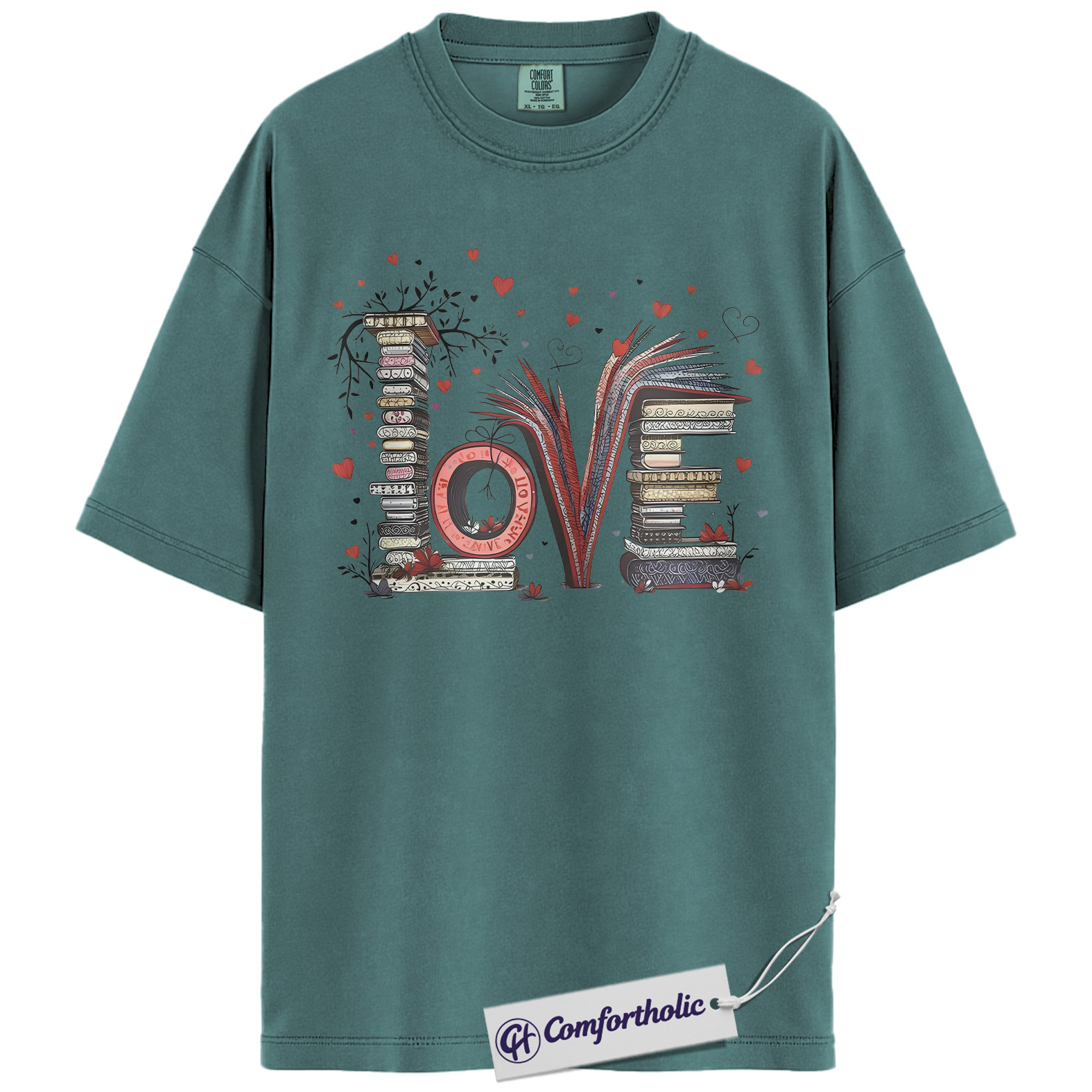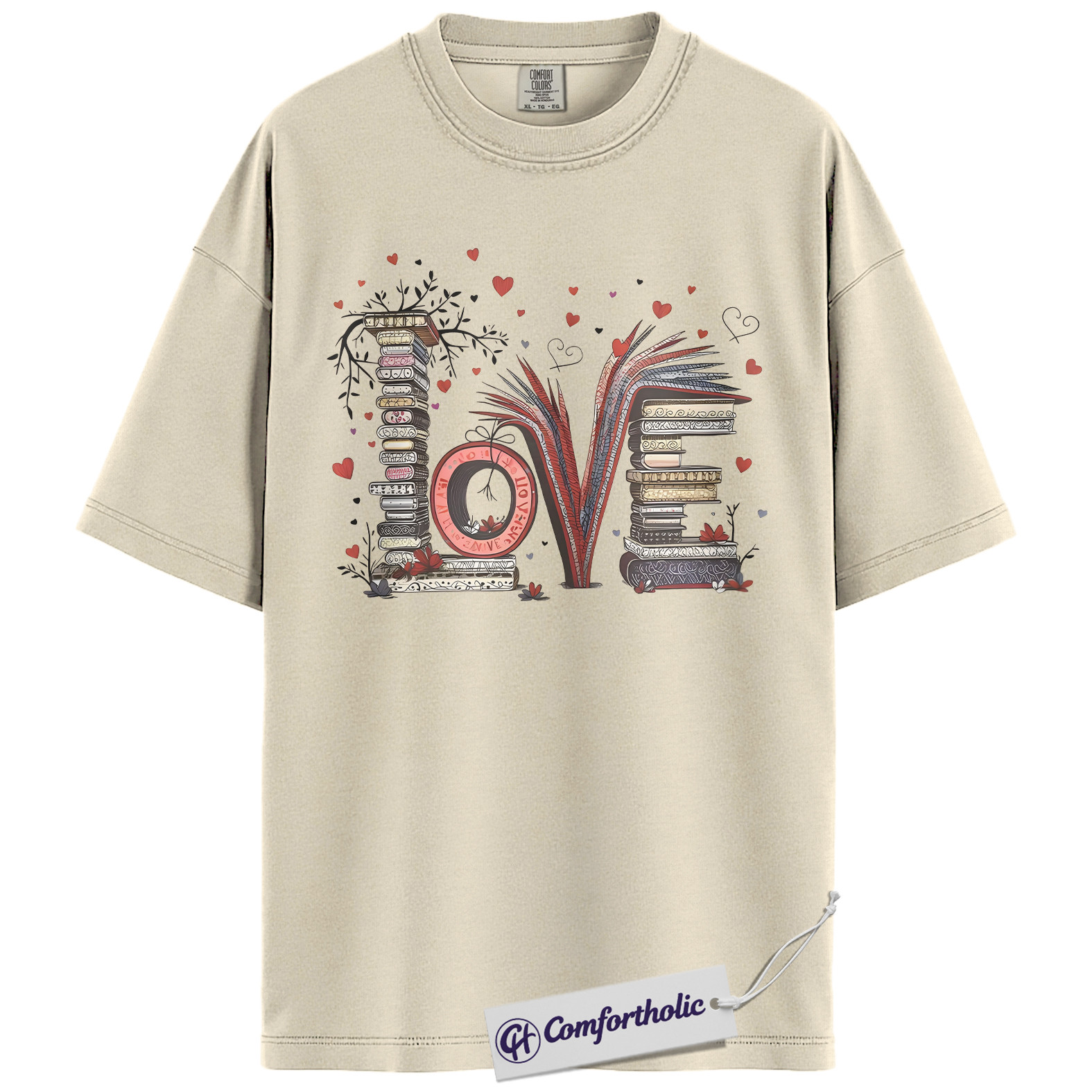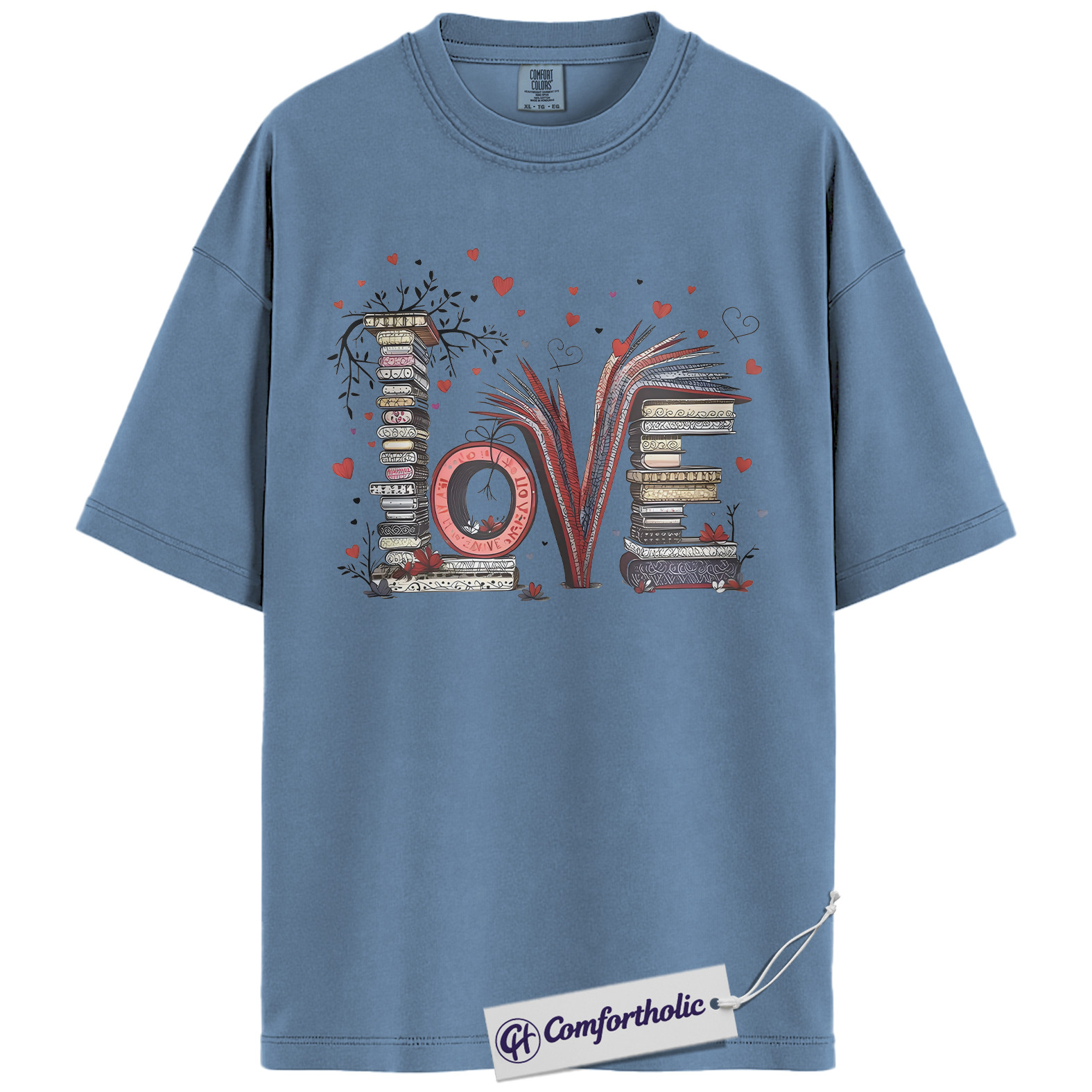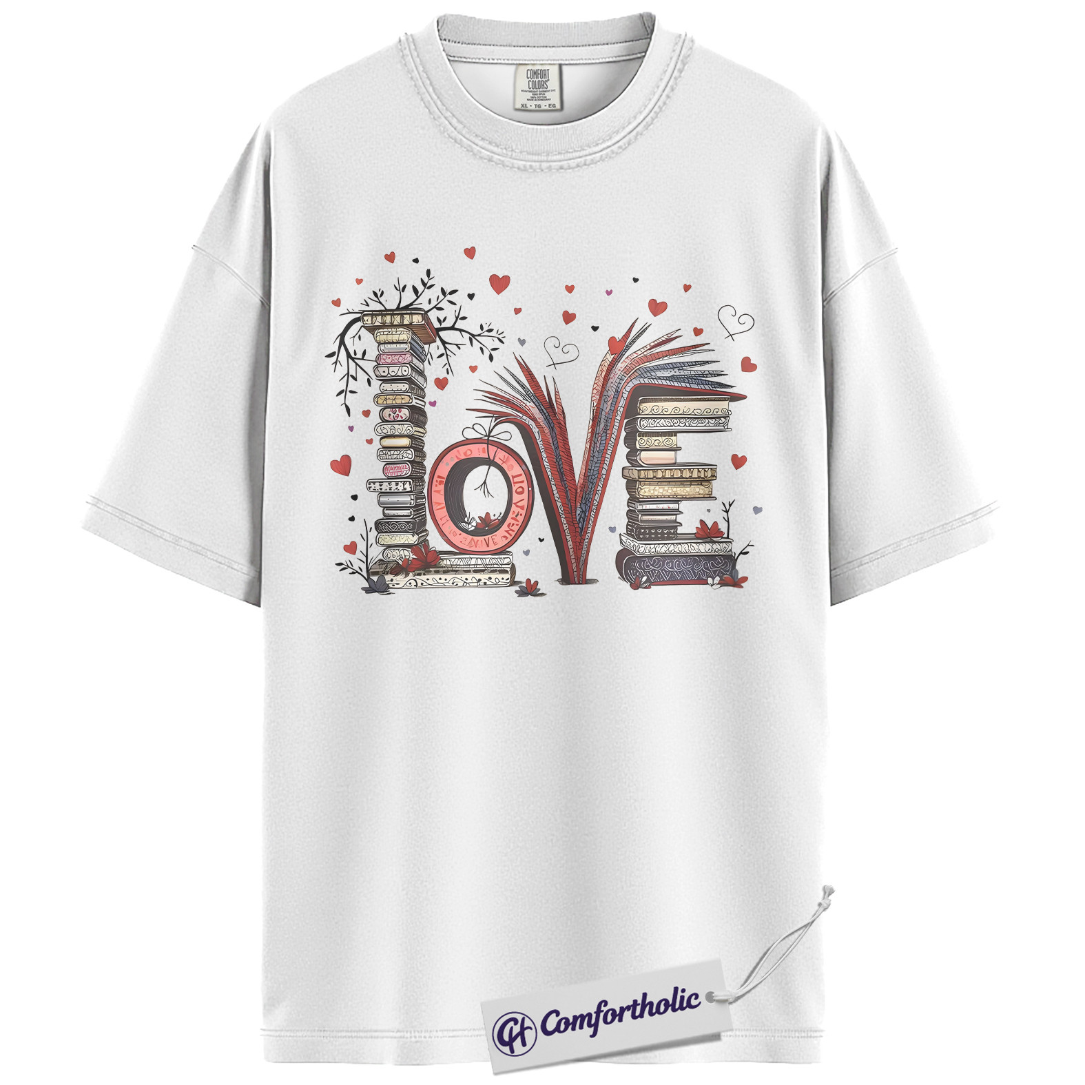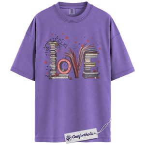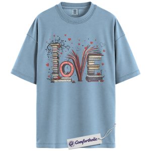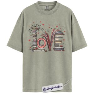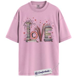 LOVE Book Lover Shirt, Cute Bibliophile Valentine T-Shirt, Aesthetic Reading Graphic Tee, Gift for Readers and Book Lovers, Comfort Colors Shirt