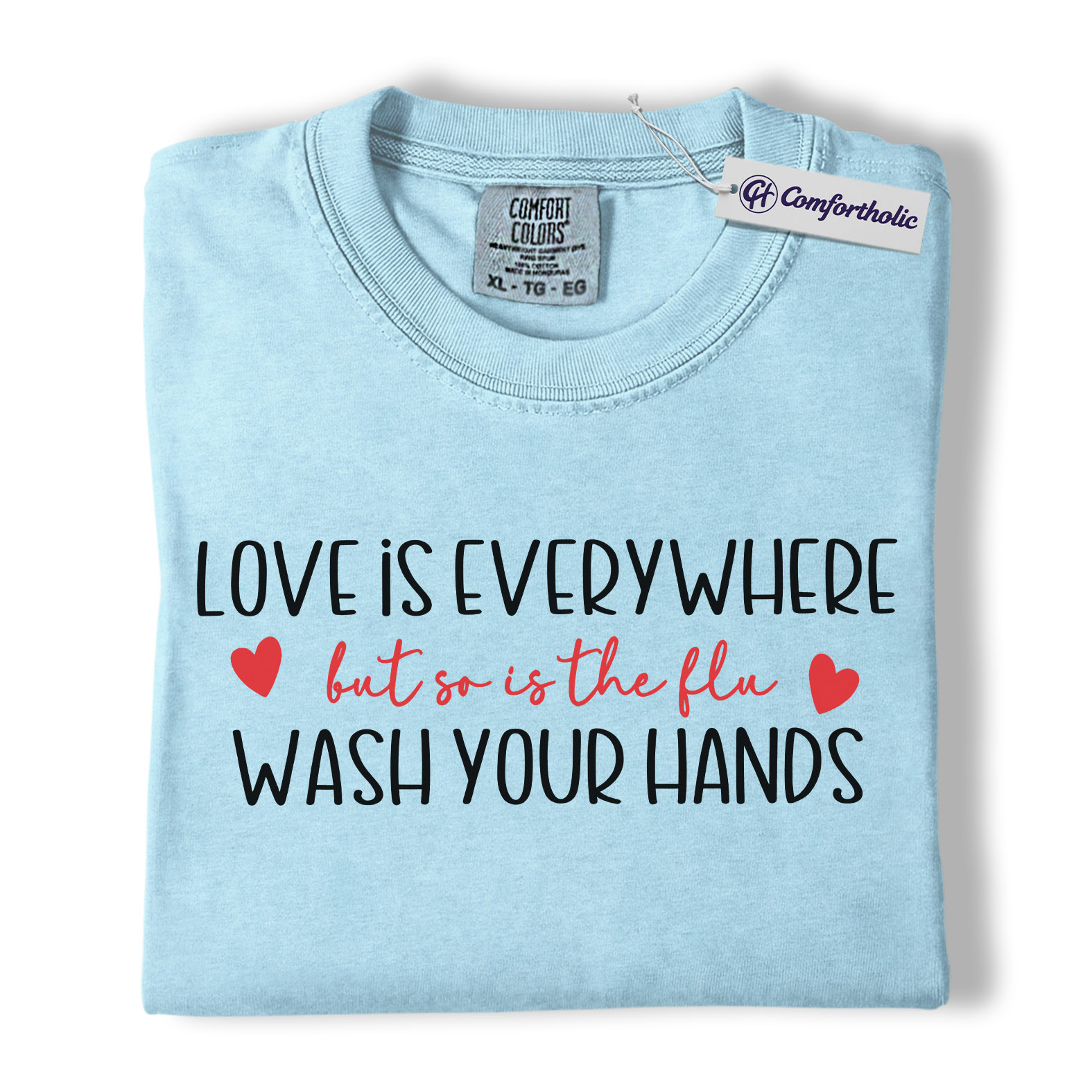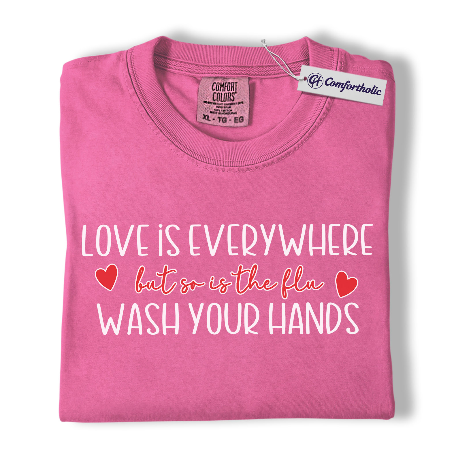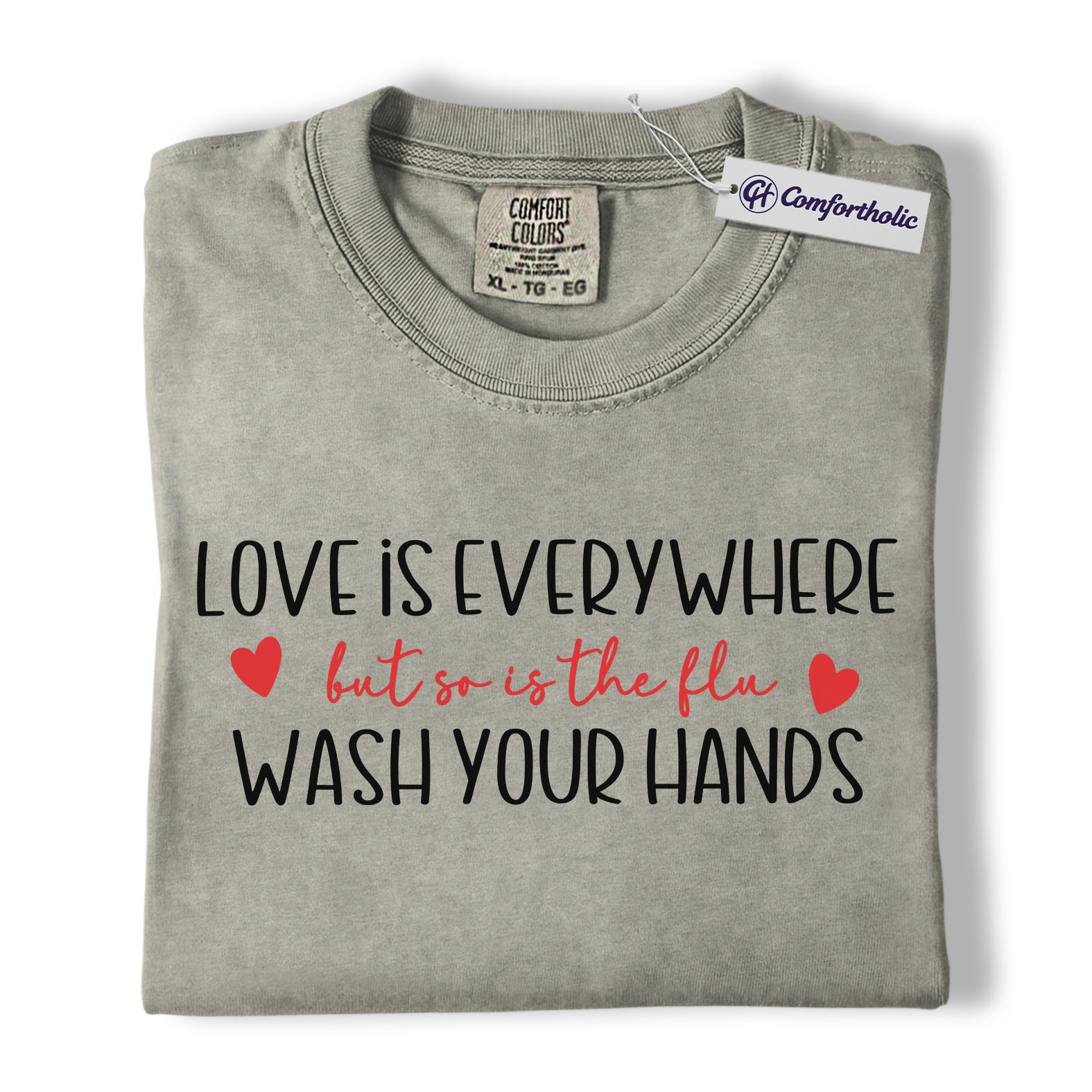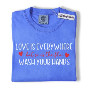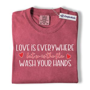 Love Is Everywhere But So Is The Flu Shirt, Funny Wash Your Hands Graphic Tee, Nurse Life Hygiene T-Shirt, Valentine’s Day Gift for Nurses, Comfort Colors Shirt