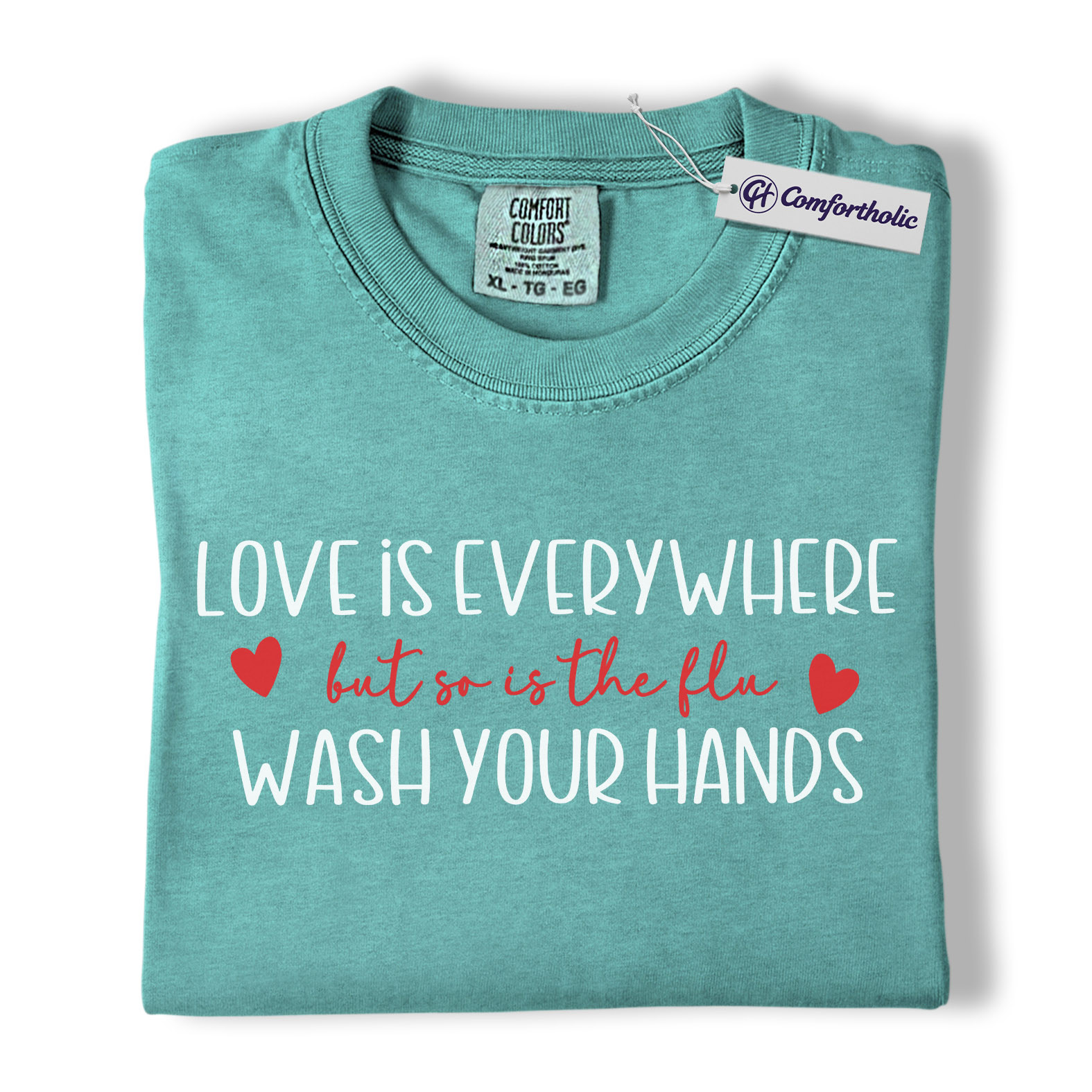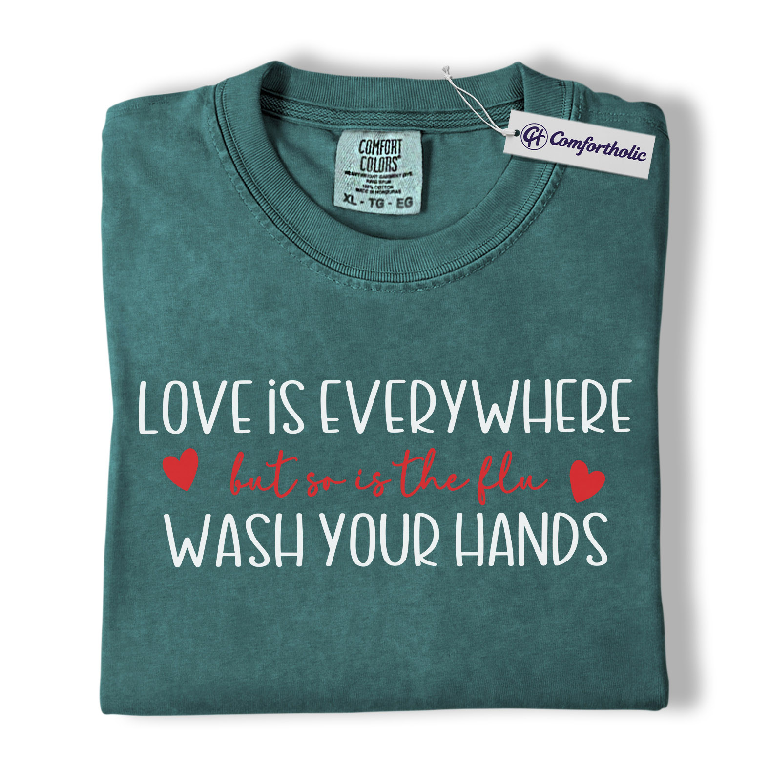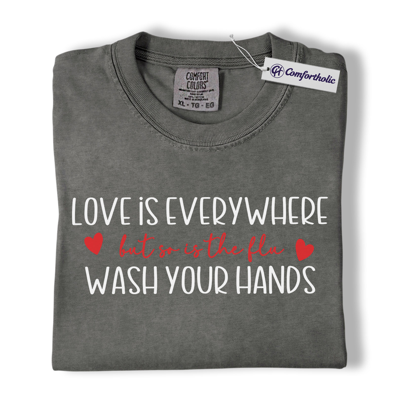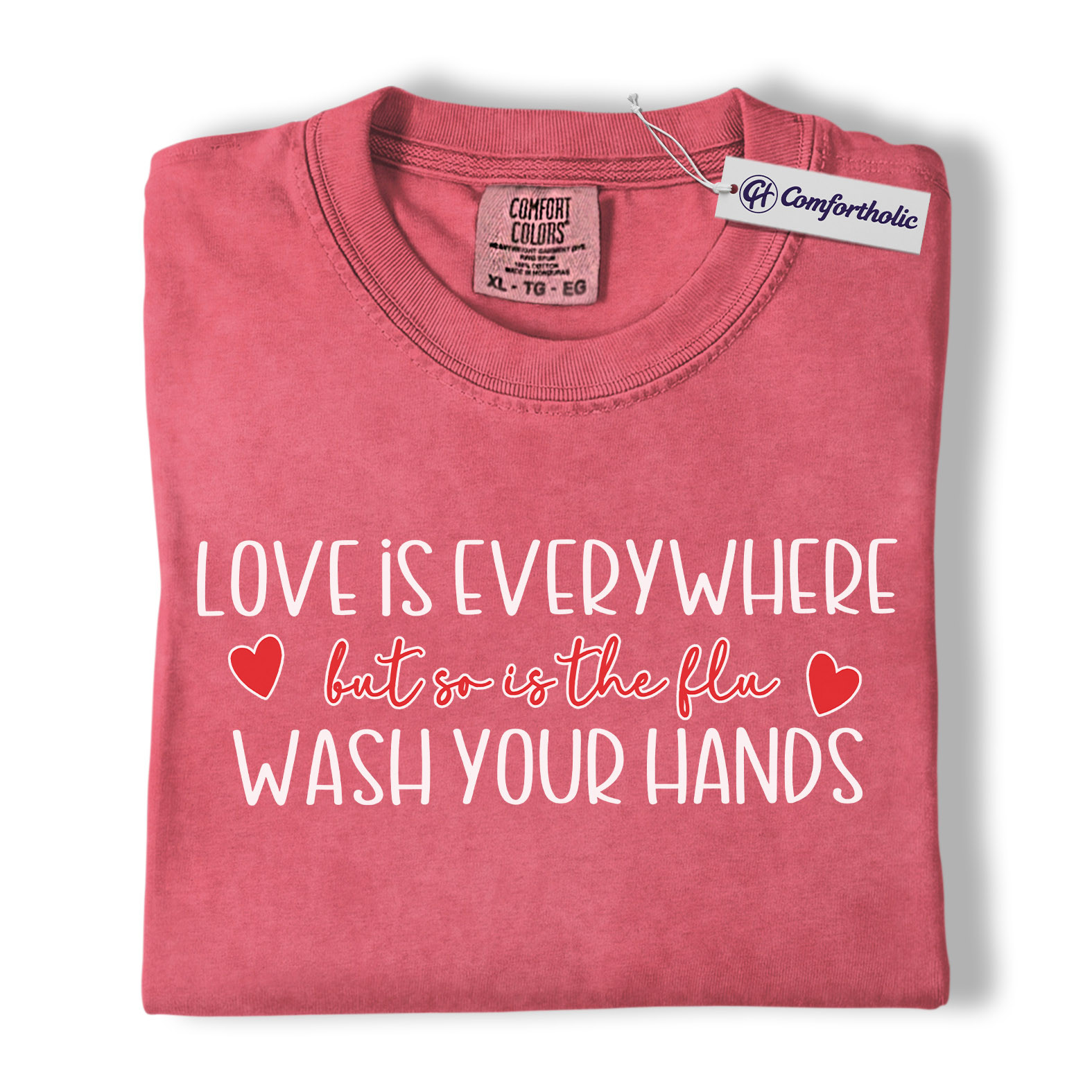 Love Is Everywhere But So Is The Flu Shirt, Funny Wash Your Hands Graphic Tee, Nurse Life Hygiene T-Shirt, Valentine’s Day Gift for Nurses, Comfort Colors Shirt