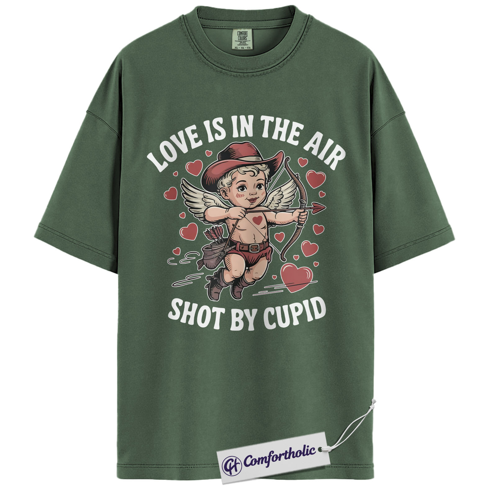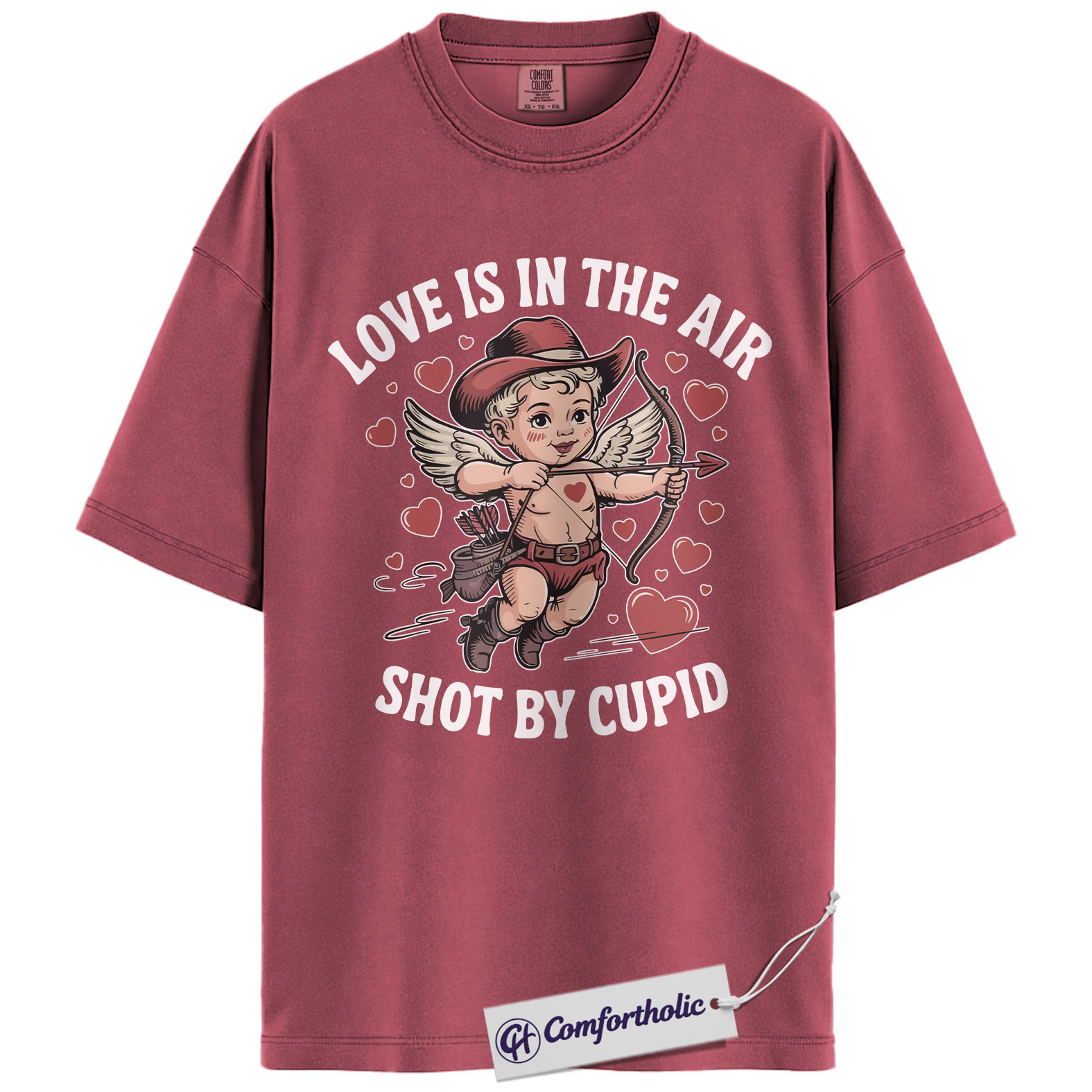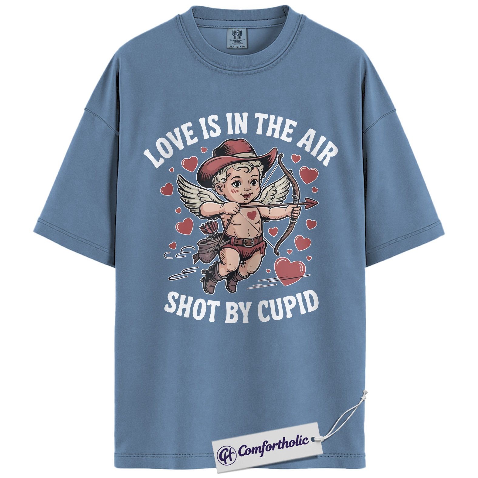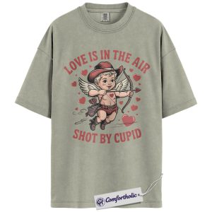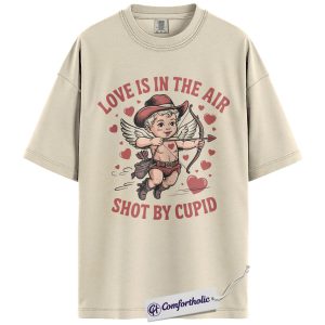 Love Is In The Air Shirt, Cute Cowboy Cupid Western Graphic Tee, Funny Valentine’s Day T-Shirt, Gift for Couples & Country Lovers, Comfort Colors Shirt