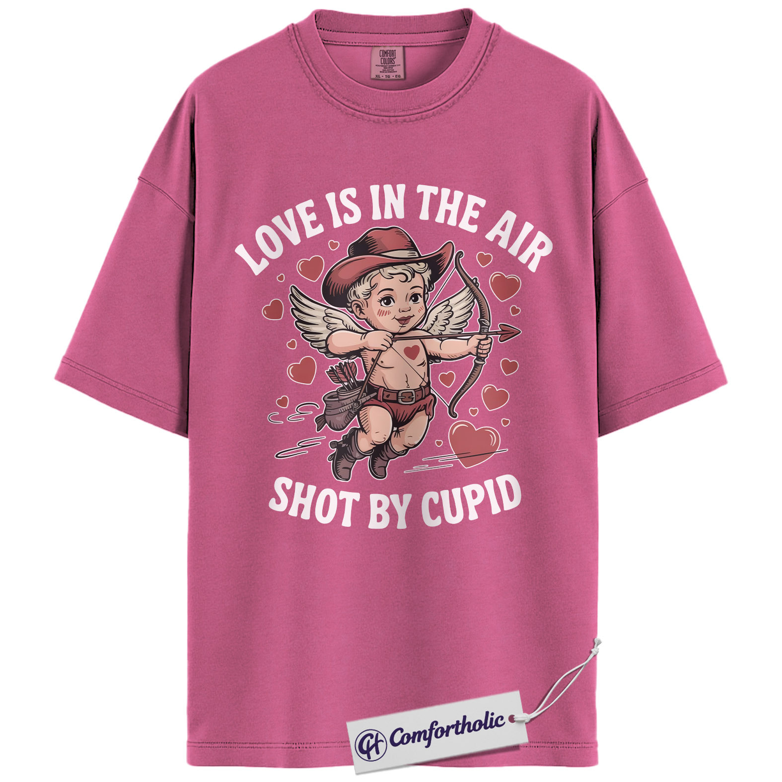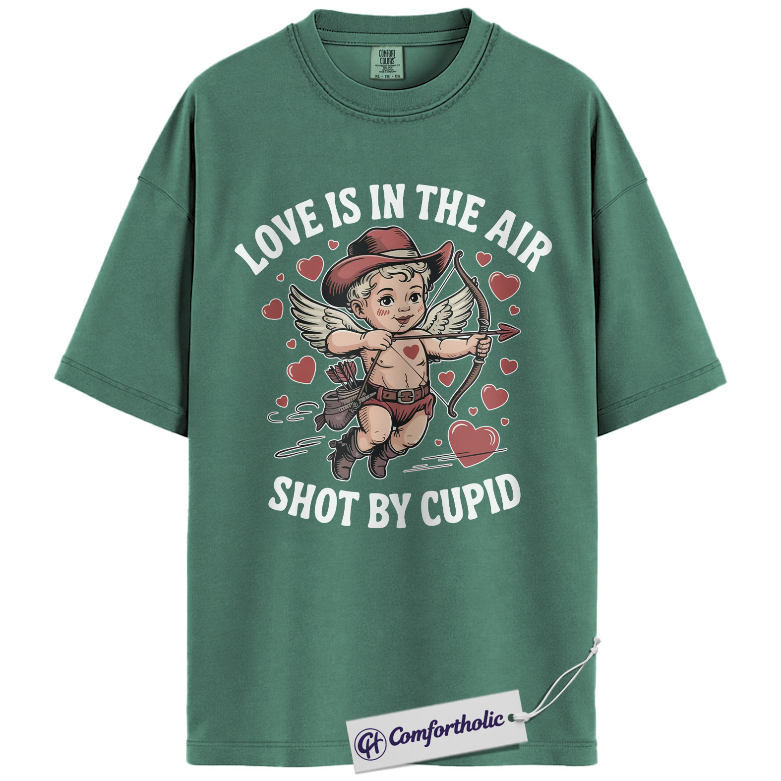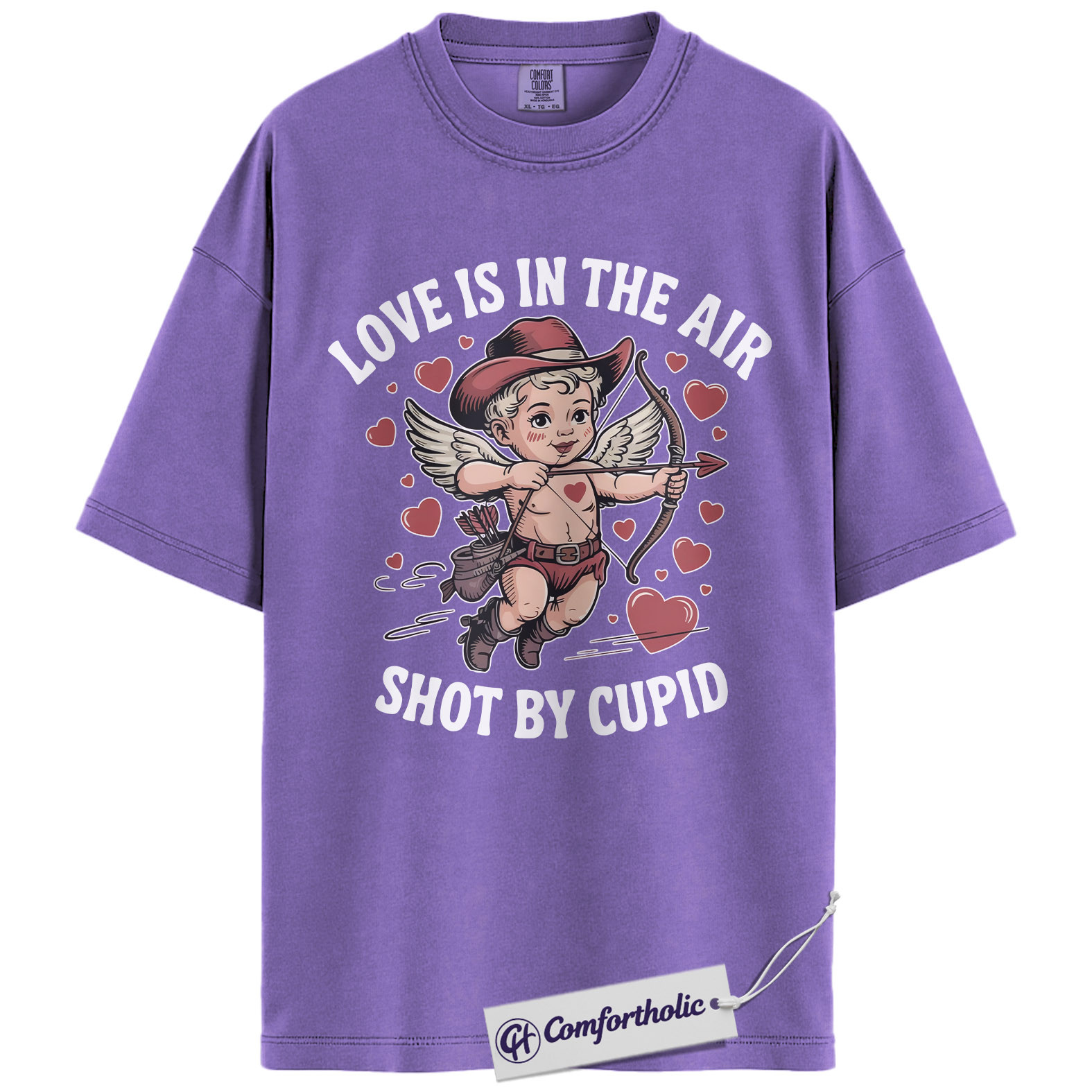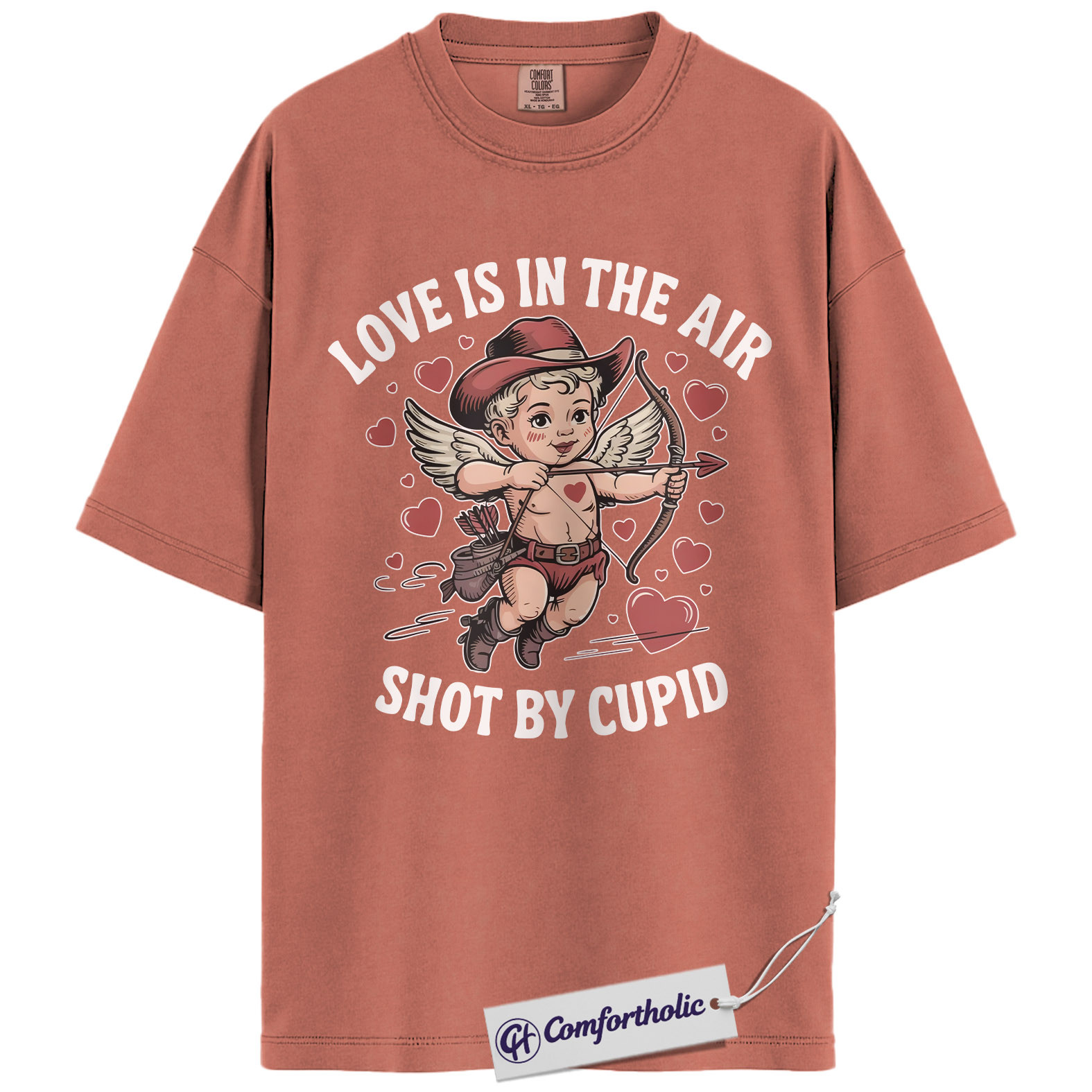 Love Is In The Air Shirt, Cute Cowboy Cupid Western Graphic Tee, Funny Valentine’s Day T-Shirt, Gift for Couples & Country Lovers, Comfort Colors Shirt