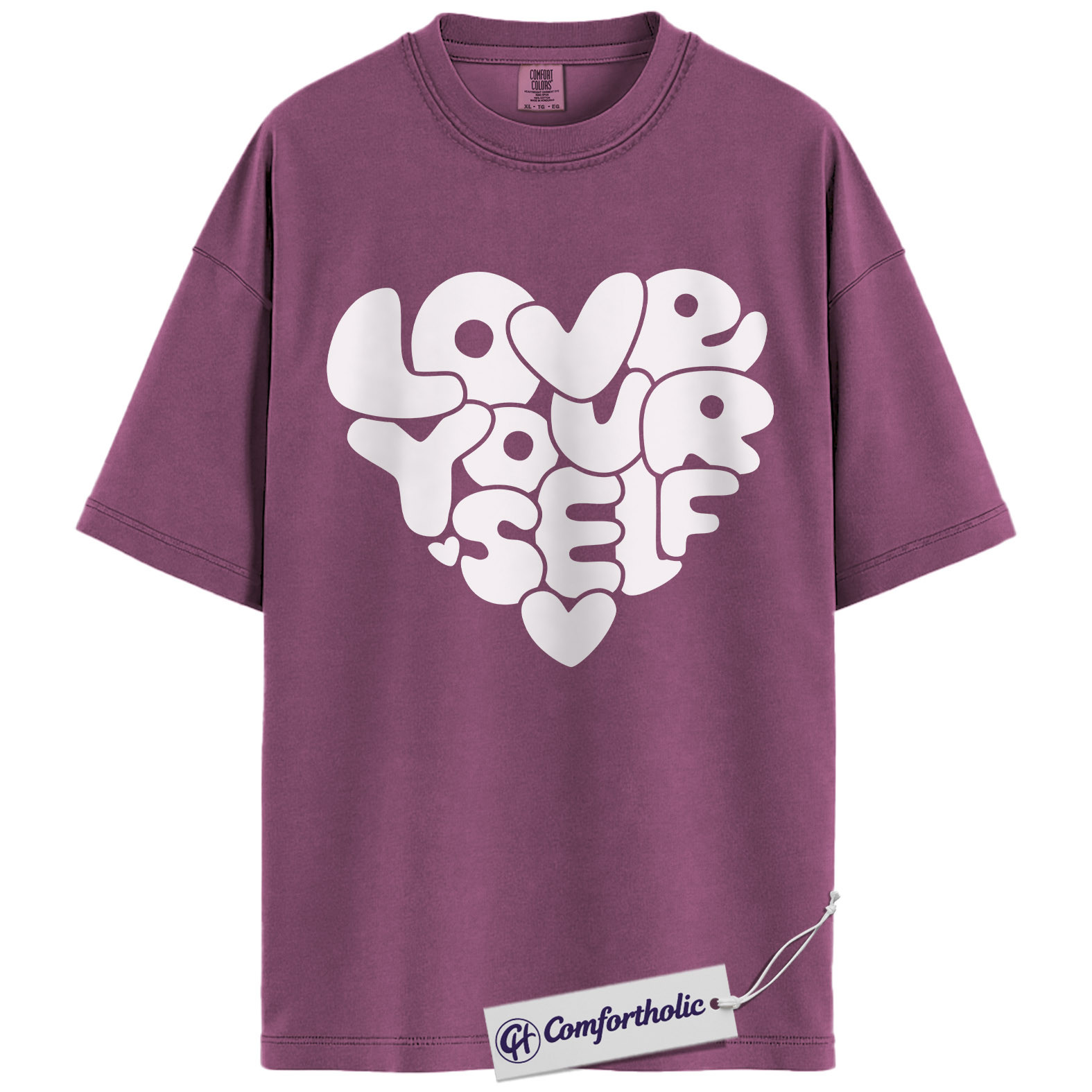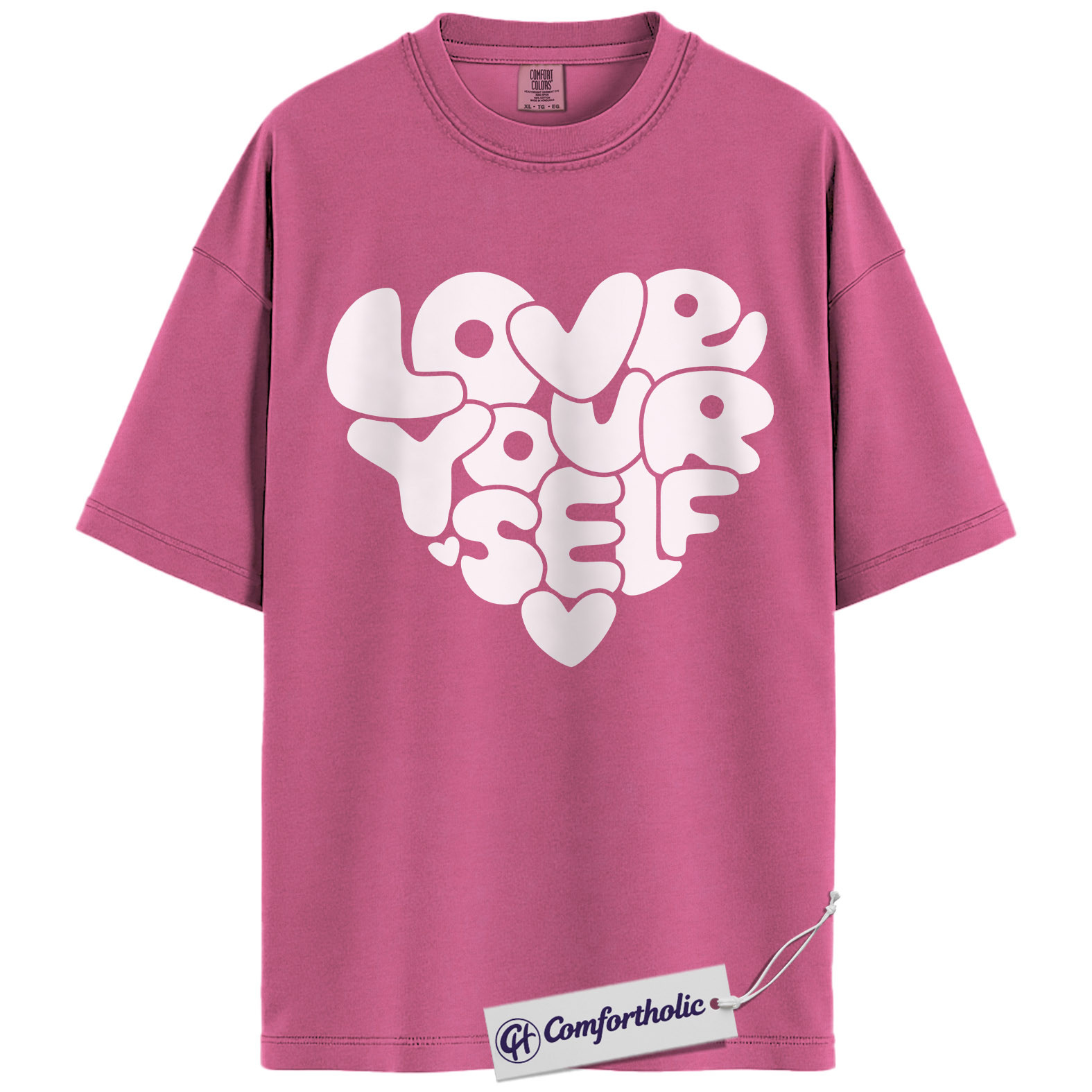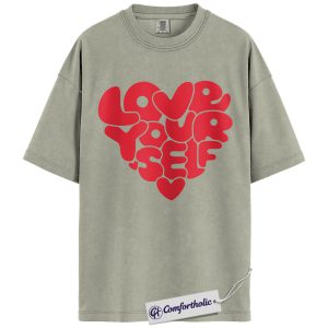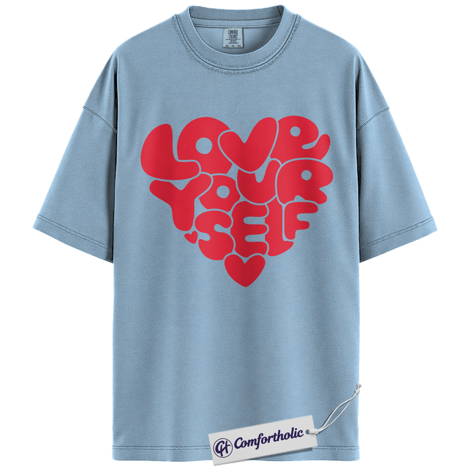 Love Yourself Shirt, Self Love Heart Graphic Tee, Positive Mental Health T-Shirt, Valentine’s Day Gift for Women & Teens, Comfort Colors Shirt