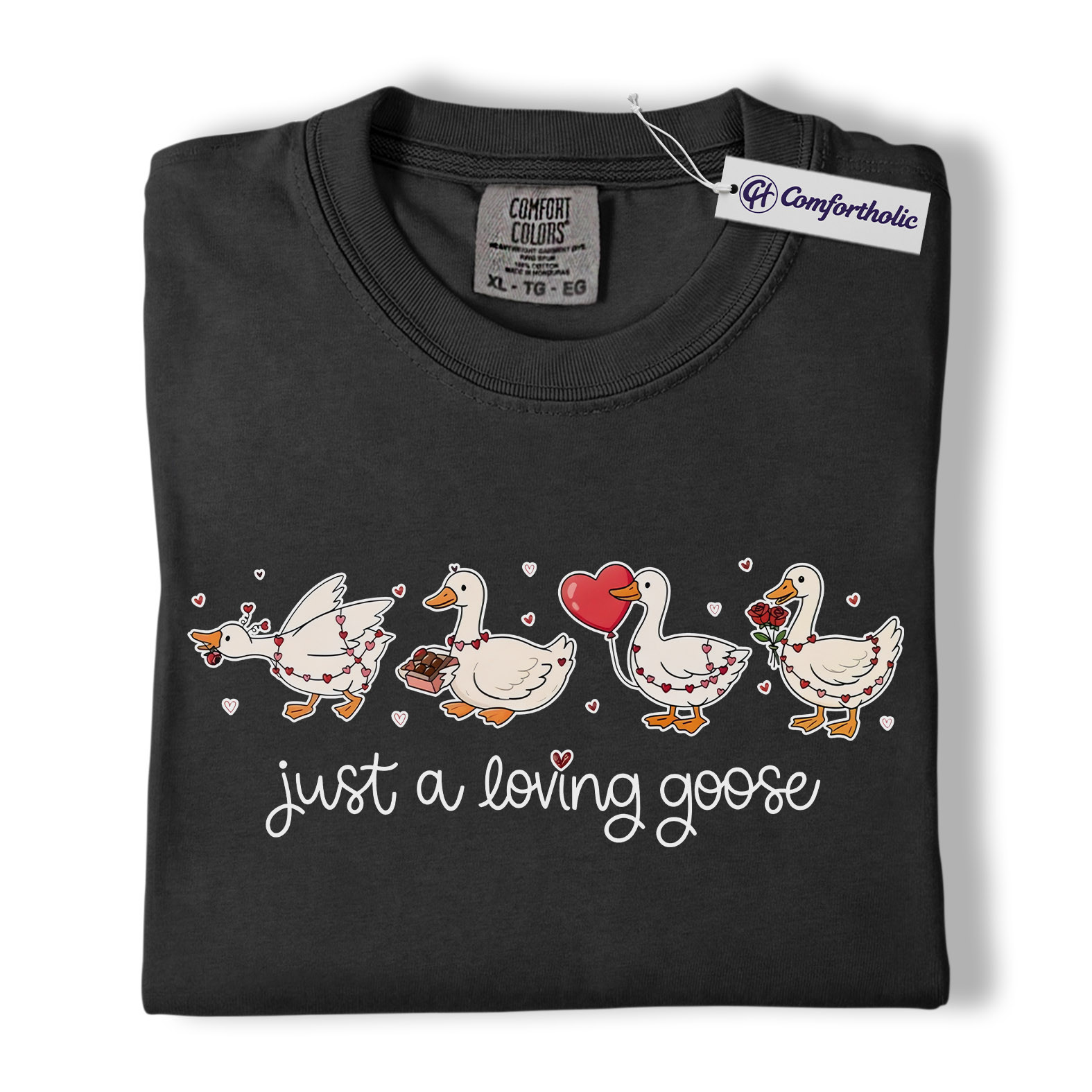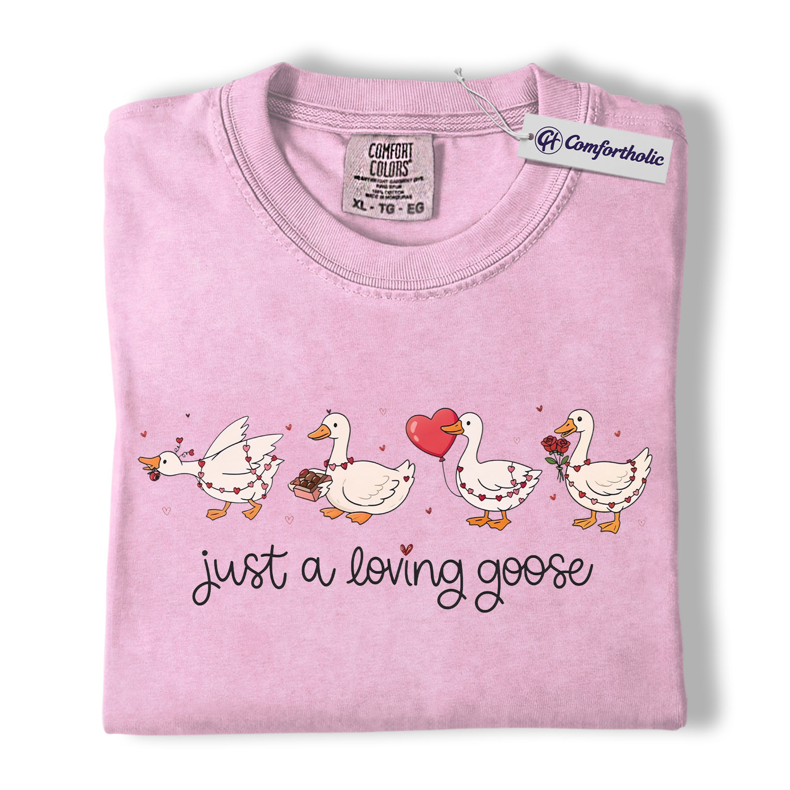 Loving Goose Shirt, Cute Valentine Goose Graphic Tee, Funny Animal Lover T-Shirt, Valentine’s Day Gift for Her & Couples, Comfort Colors Shirt