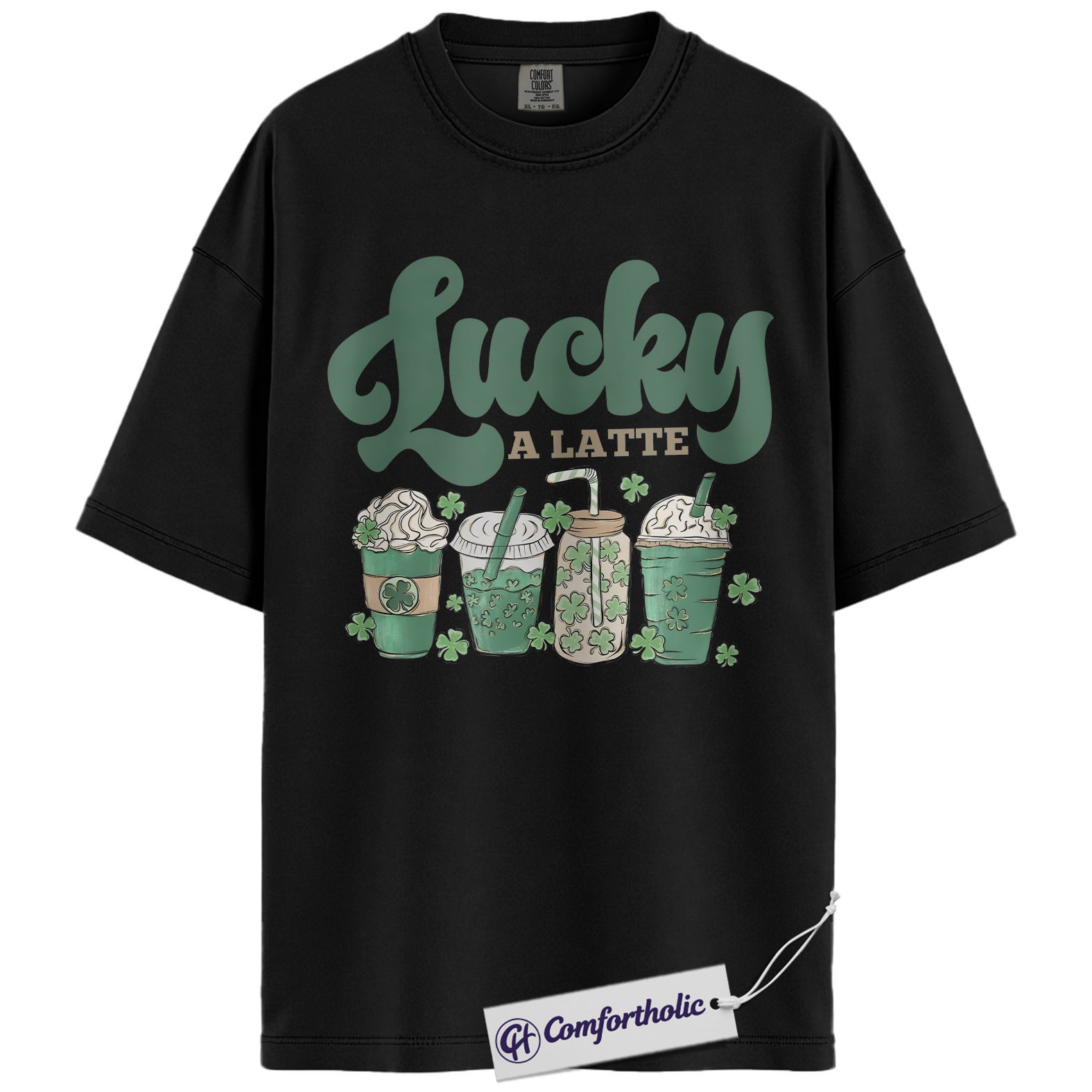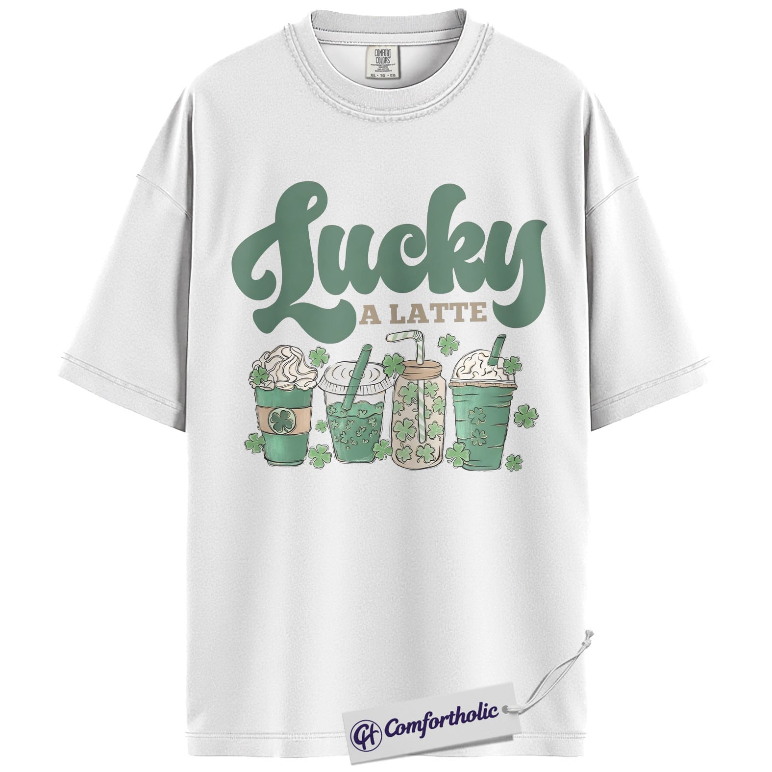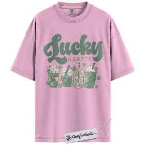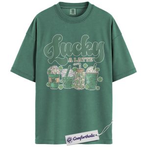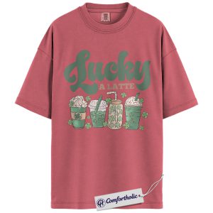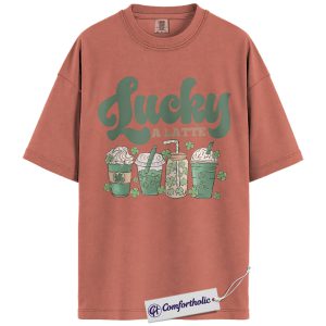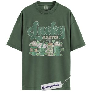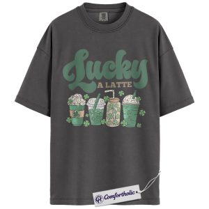 Lucky A Latte Shirt, Shamrock Coffee Graphic Tee, St Patricks Day Coffee T-Shirt, Funny St Patricks Day Gift for Coffee Lovers, Comfort Colors Shirt
