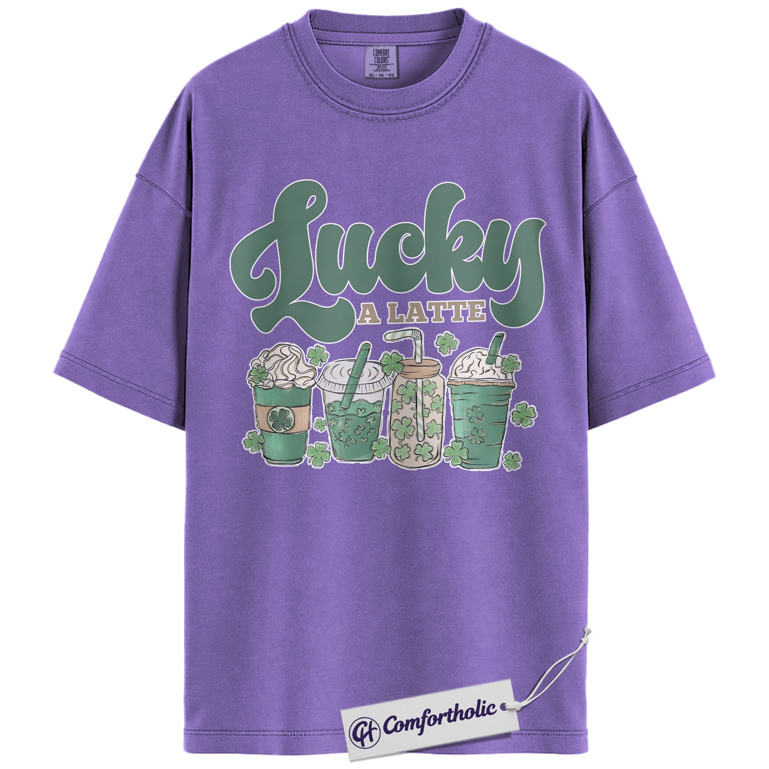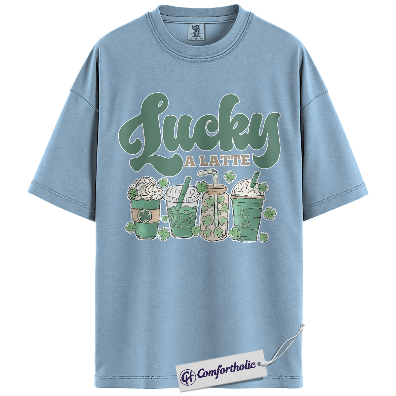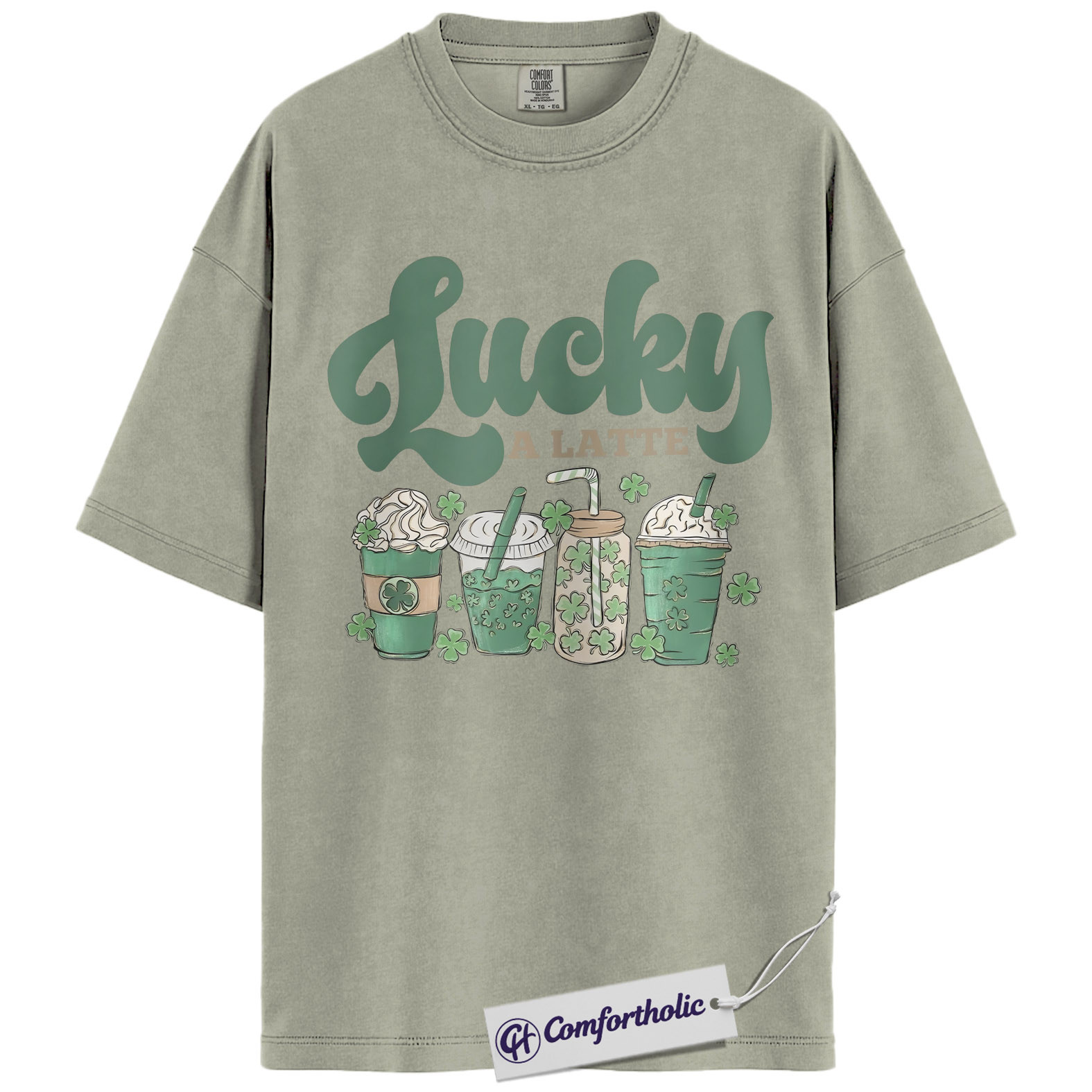 Lucky A Latte Shirt, Shamrock Coffee Graphic Tee, St Patricks Day Coffee T-Shirt, Funny St Patricks Day Gift for Coffee Lovers, Comfort Colors Shirt