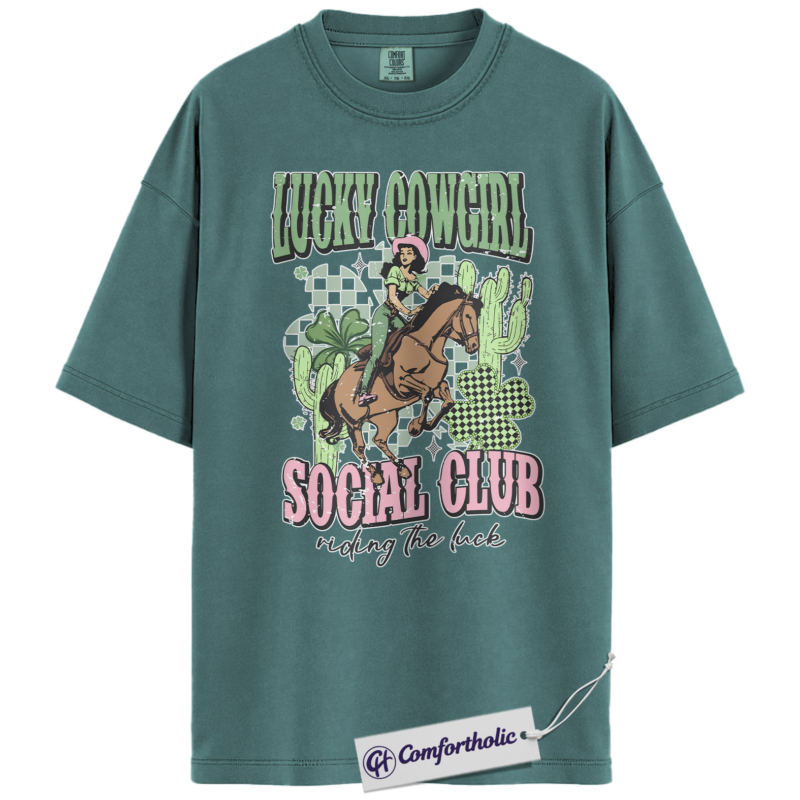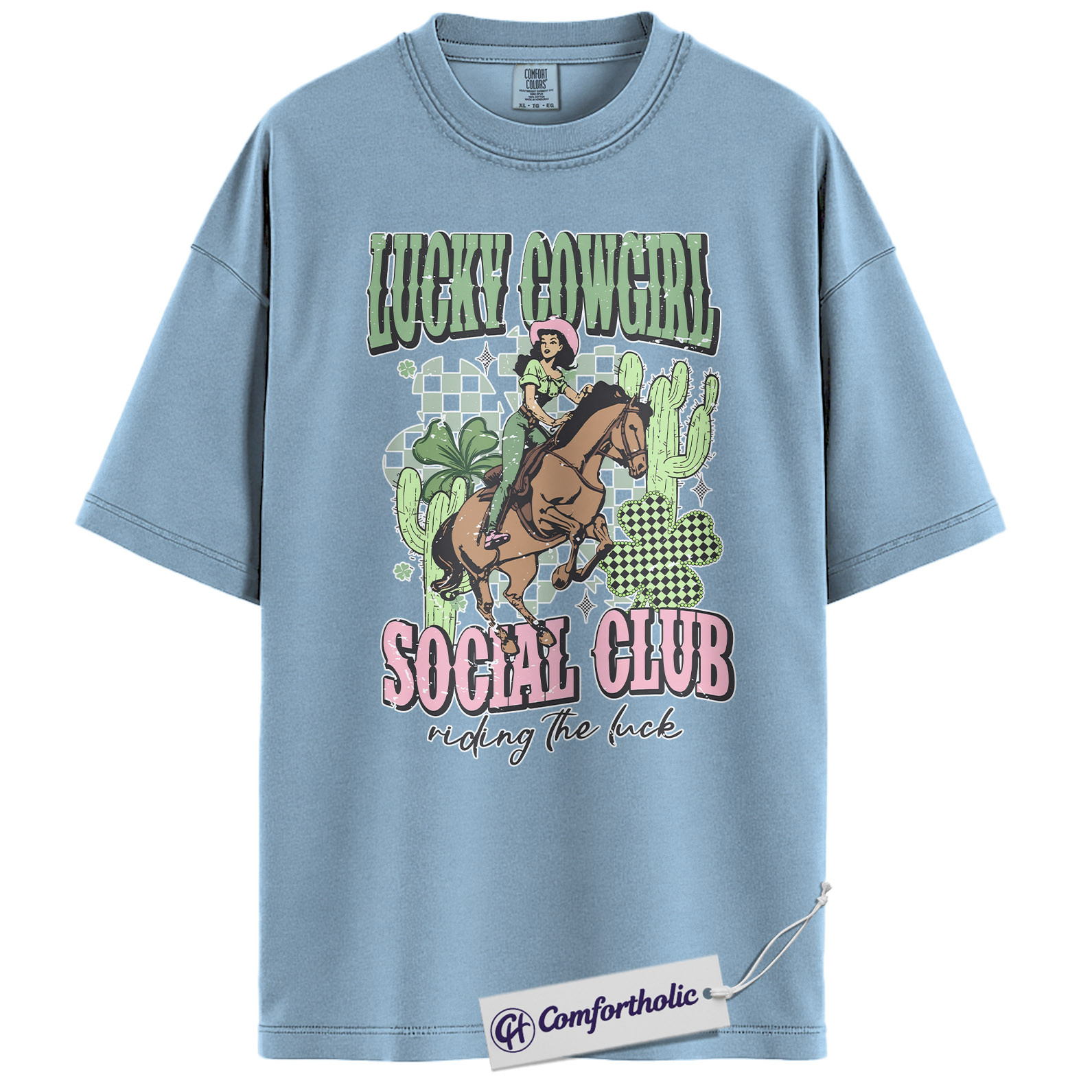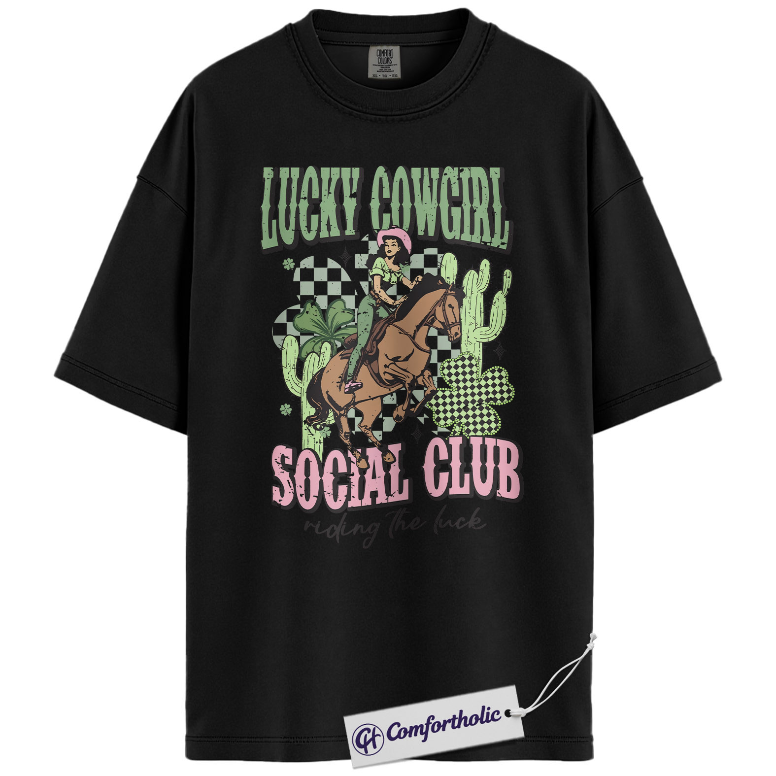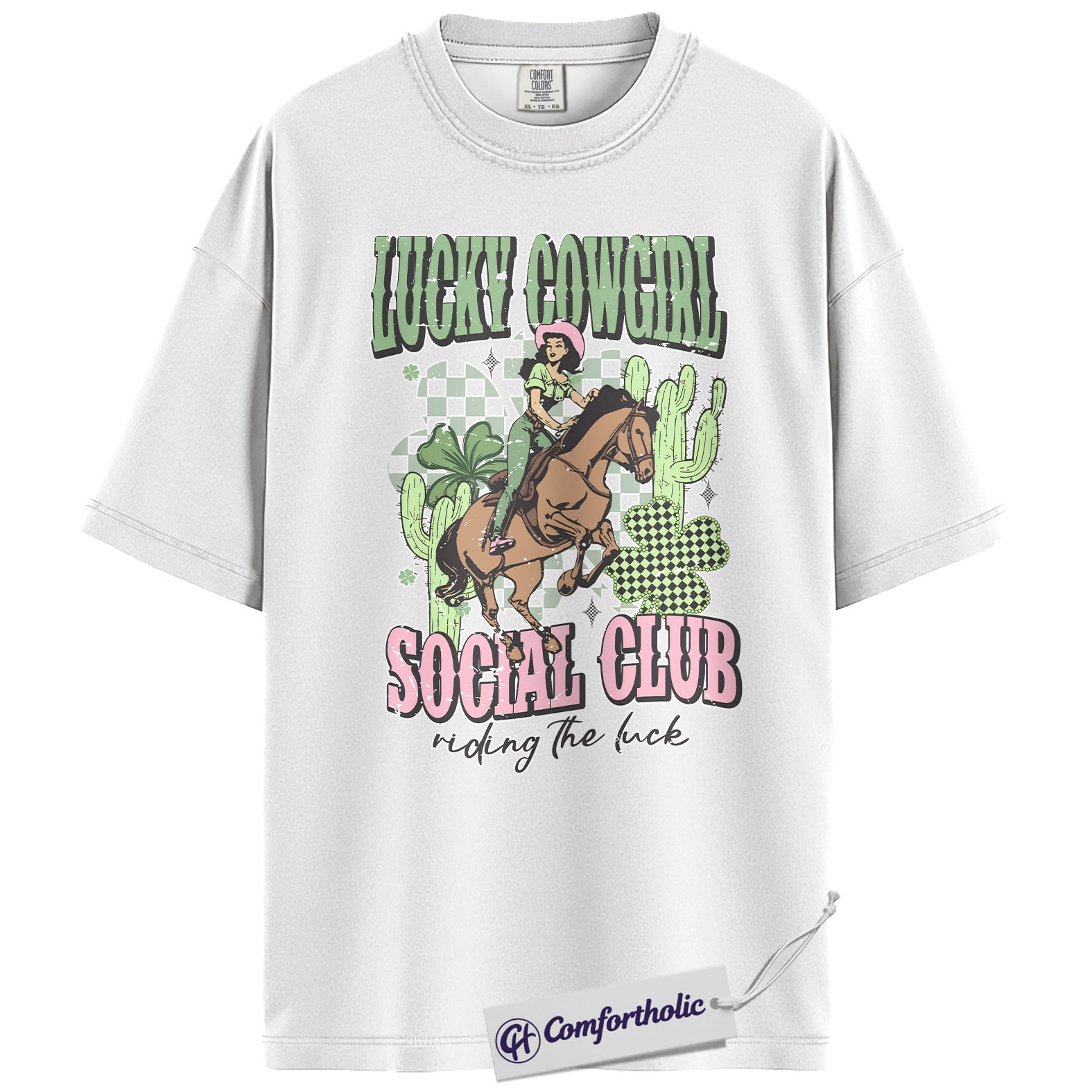 Lucky Cowgirl Shirt, Western Rodeo Graphic Tee, St Patrick’s Day Cowgirl T-Shirt, Gift for Cowgirls & Country Girls, Comfort Colors Shirt