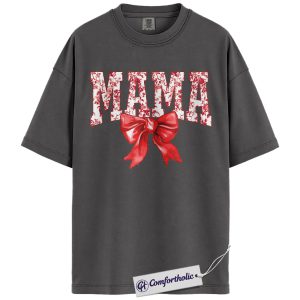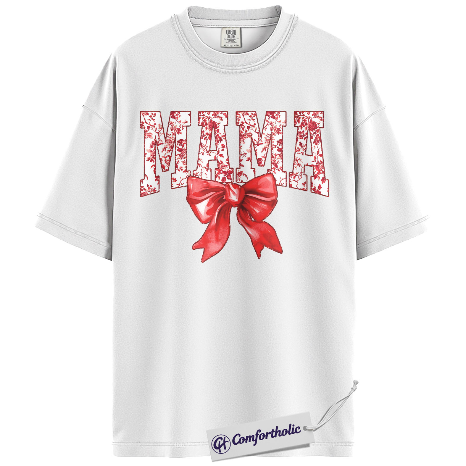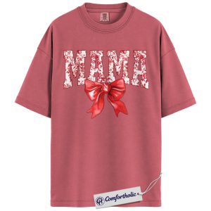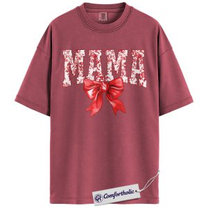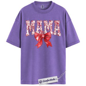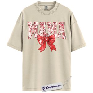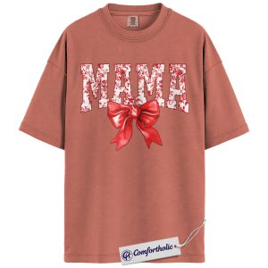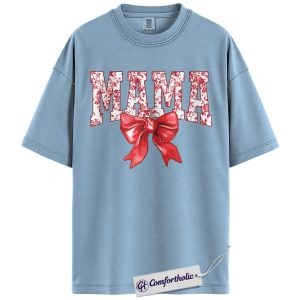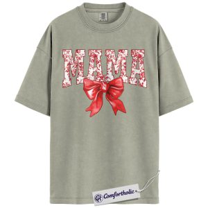 Mama Bow Valentine Shirt, Cute Floral Mama Graphic Tee, Trendy Mom Aesthetic T-Shirt, Mother’s Day Gift for Moms, Comfort Colors Shirt