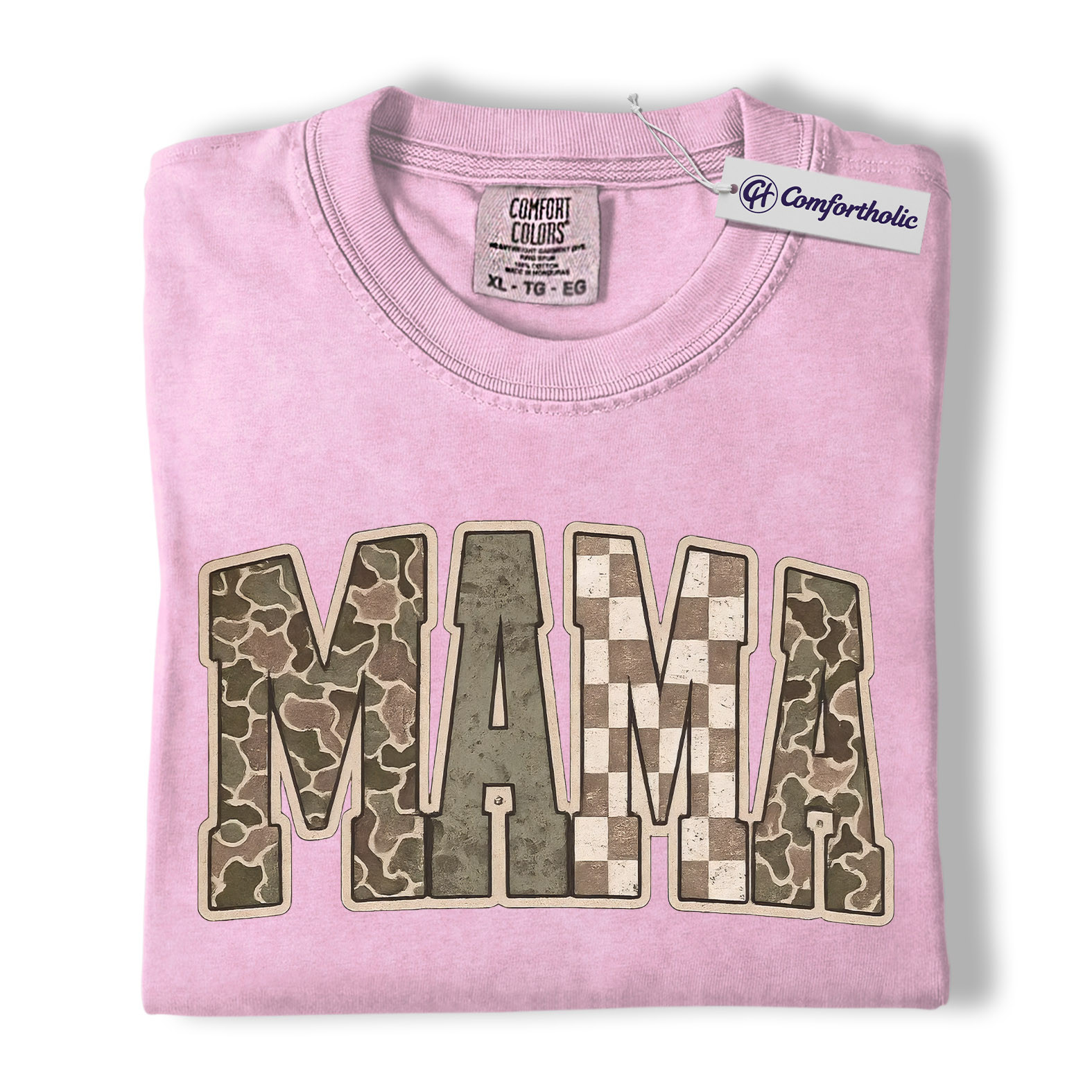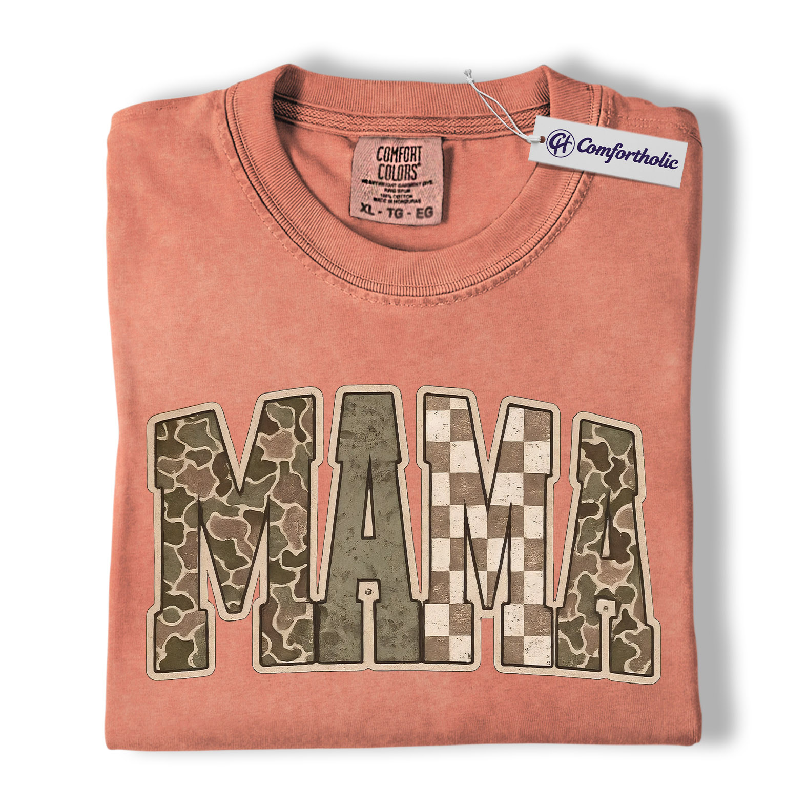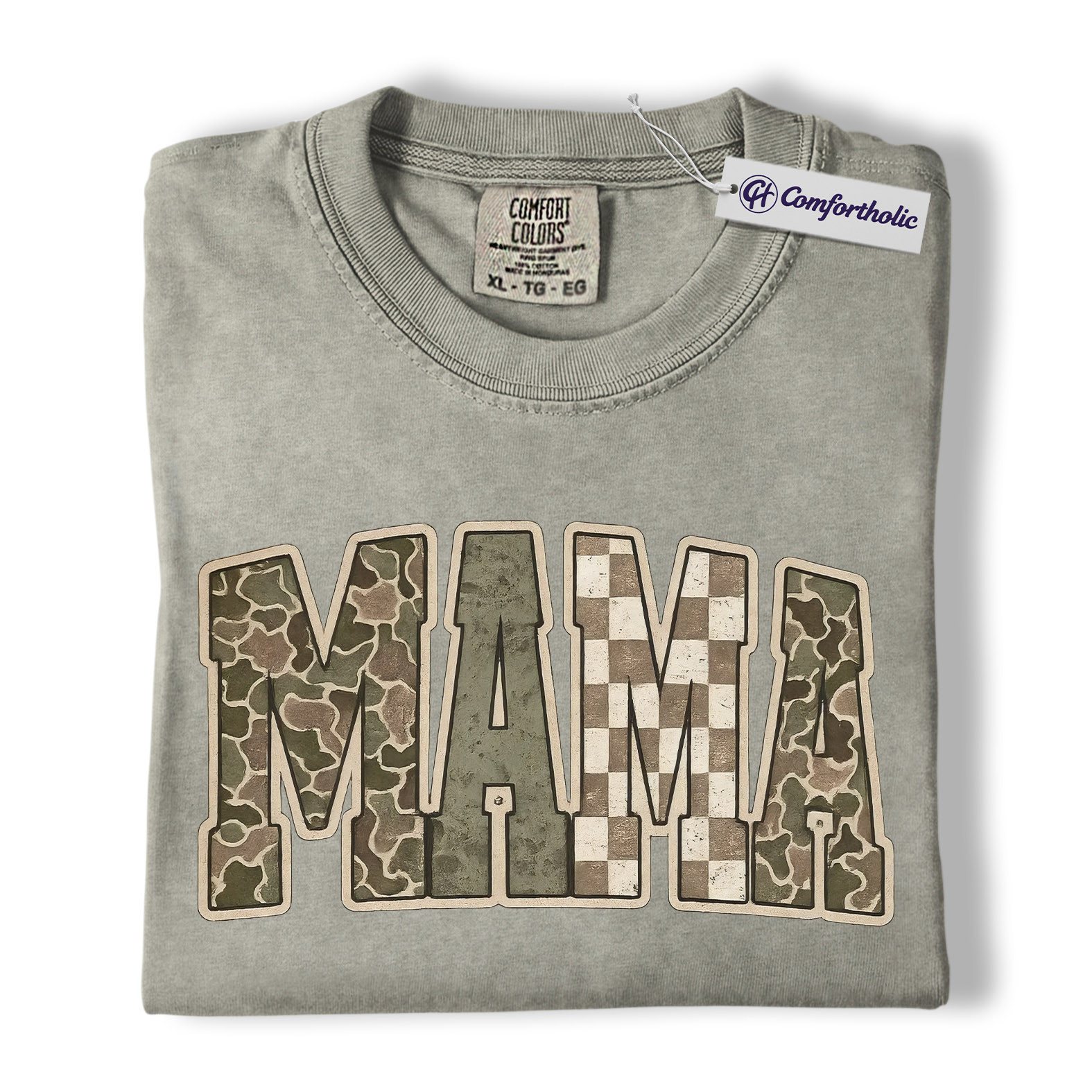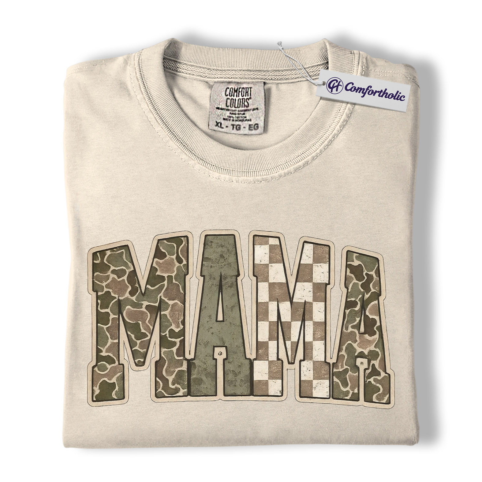 Mama Shirt, Camo and Gingham Graphic Tee, Rustic Motherhood Mom Life T-Shirt, Mother’s Day Gift for Moms, Comfort Colors Shirt