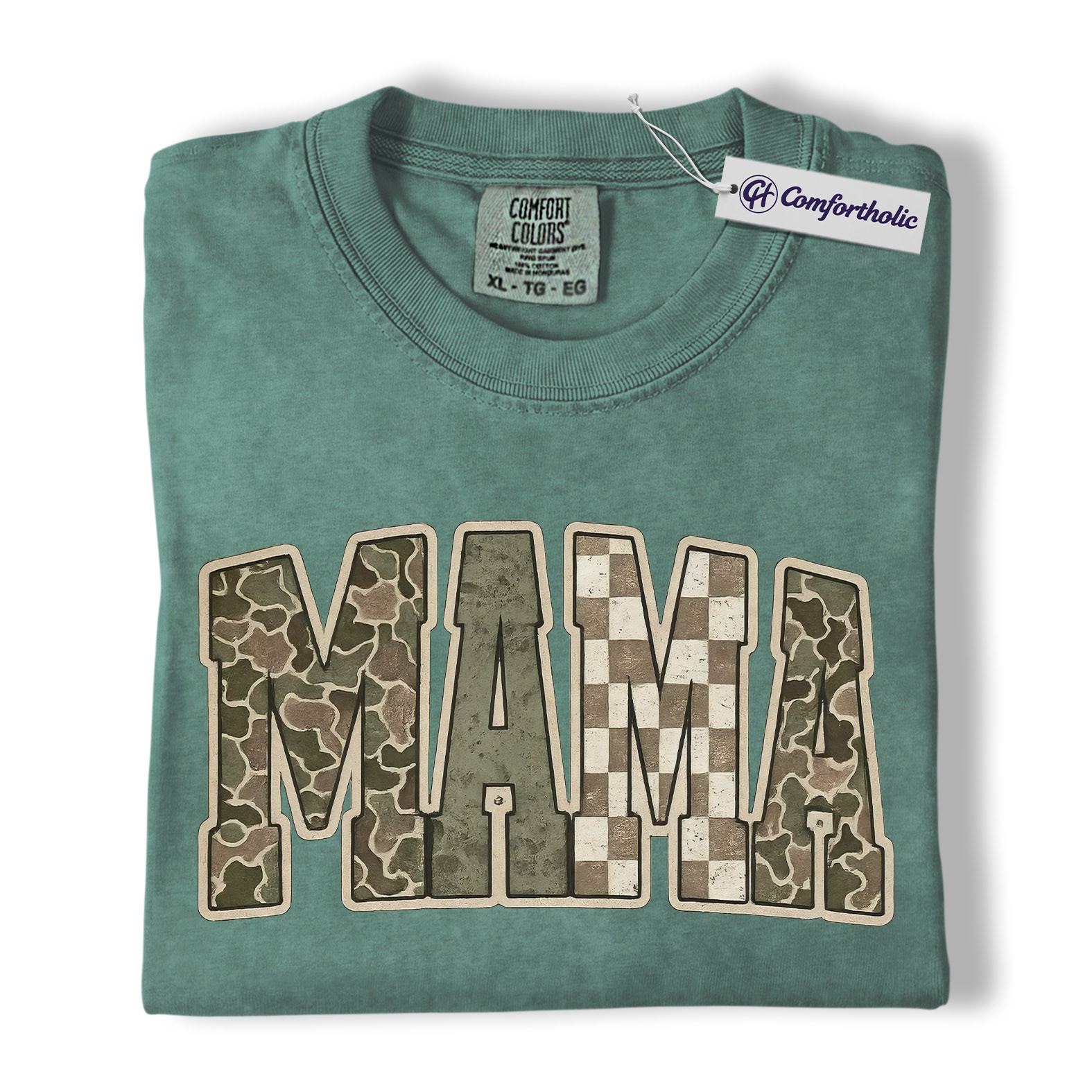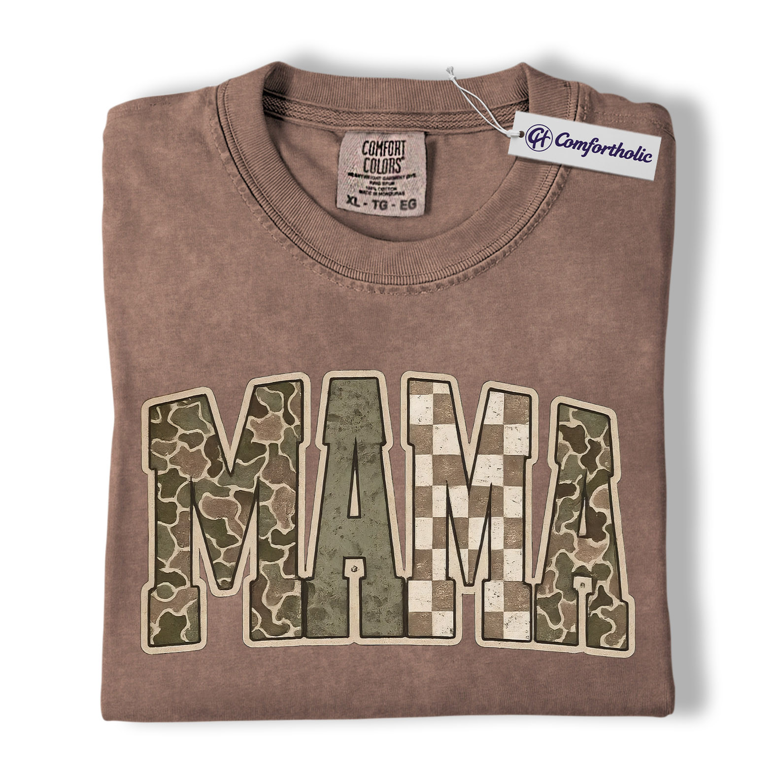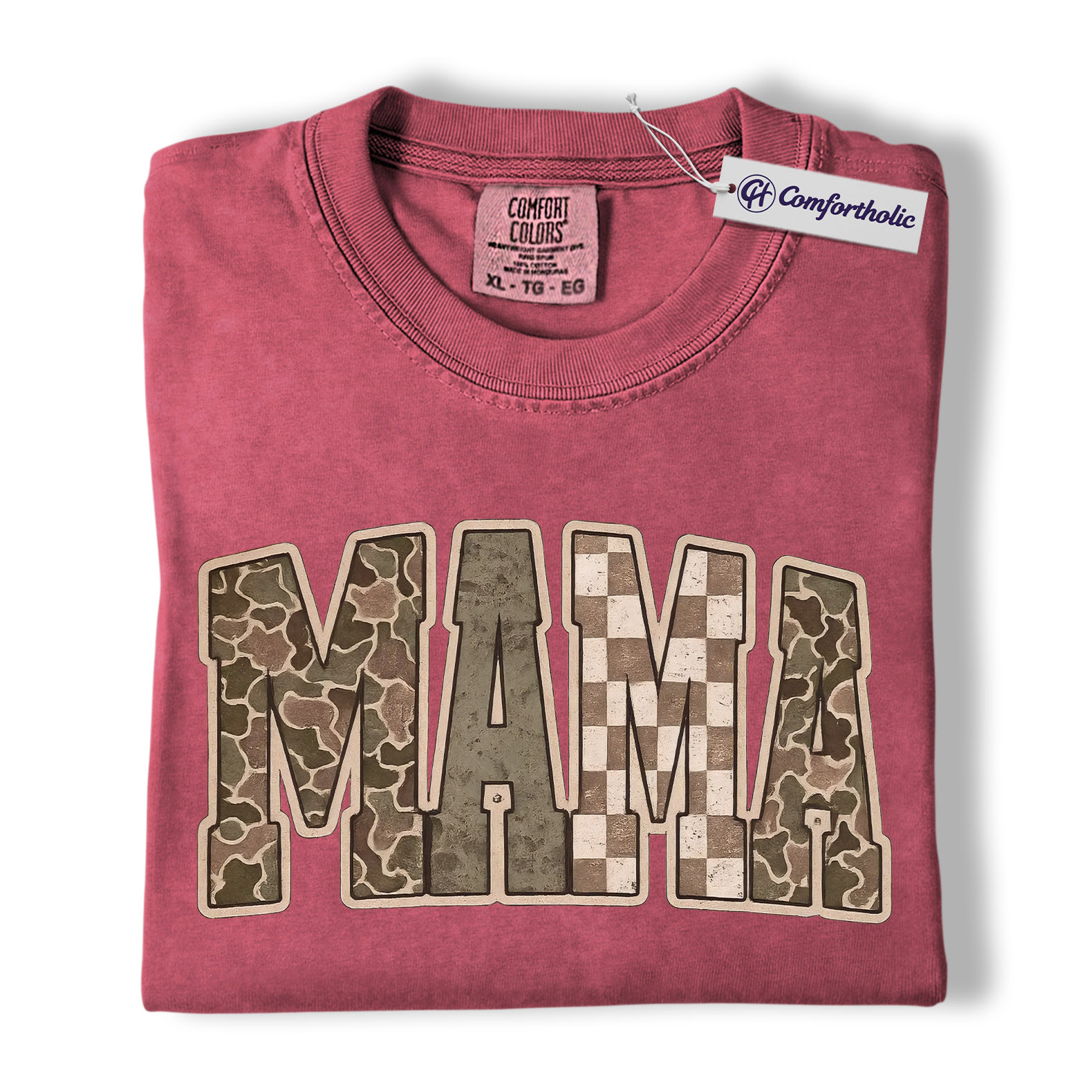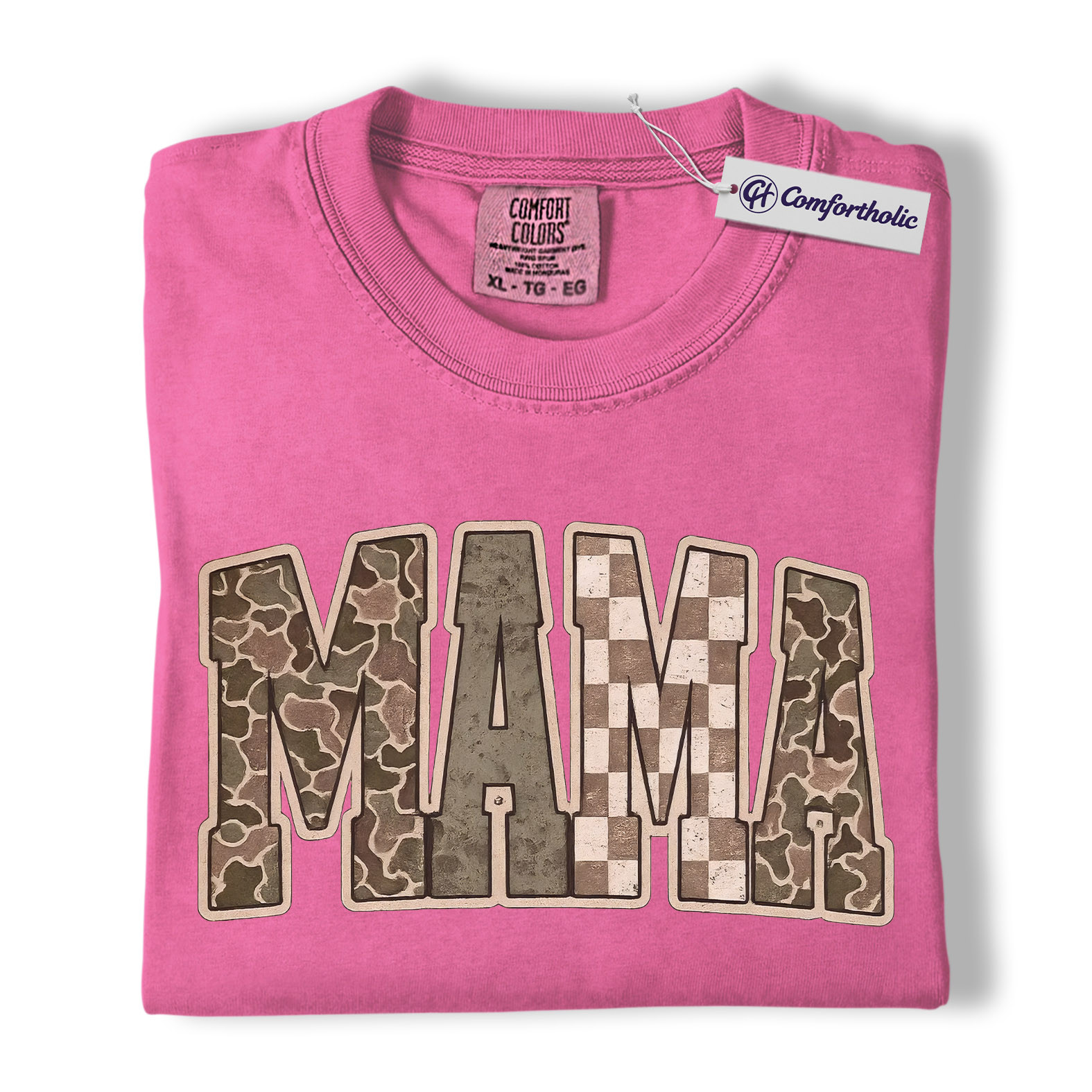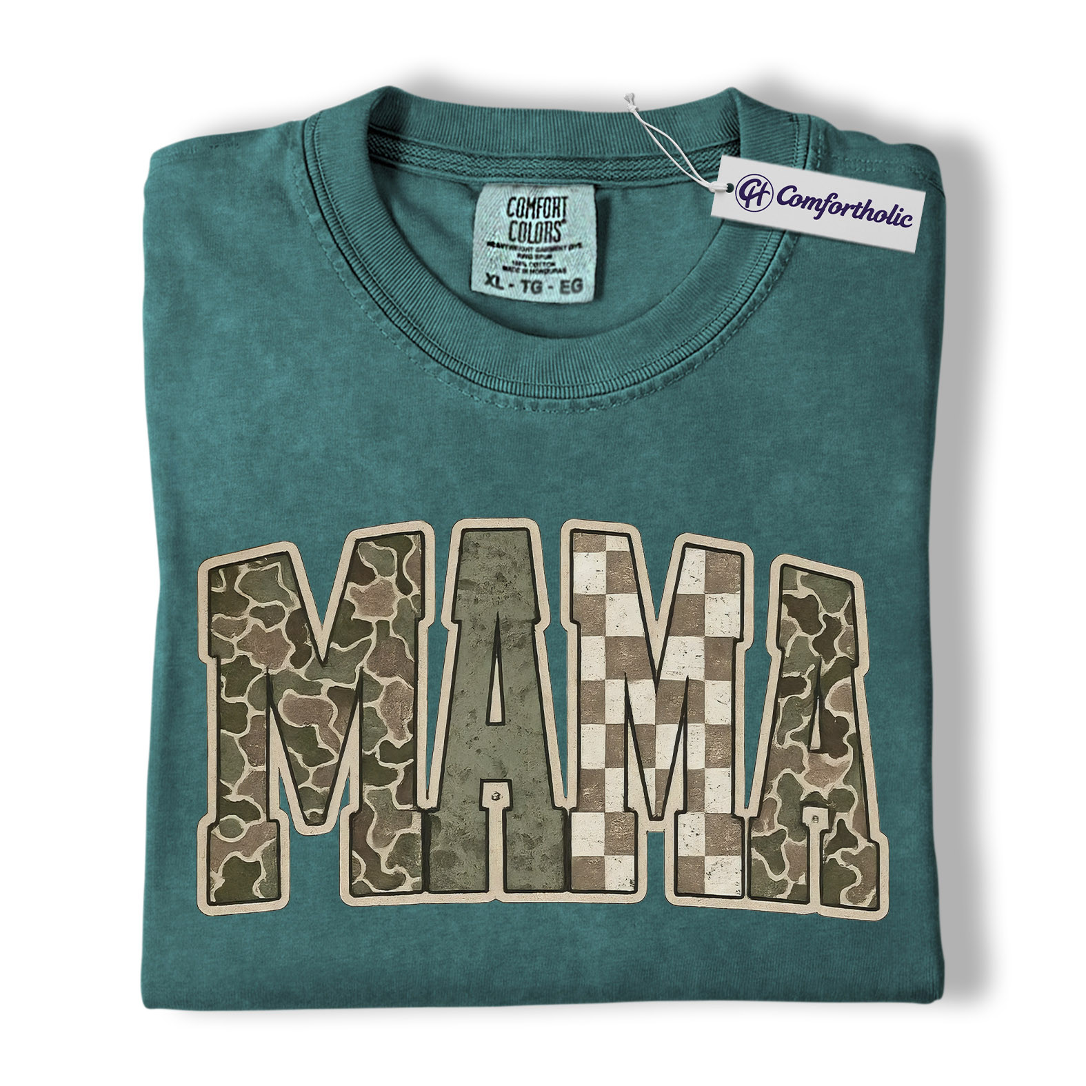 Mama Shirt, Camo and Gingham Graphic Tee, Rustic Motherhood Mom Life T-Shirt, Mother’s Day Gift for Moms, Comfort Colors Shirt