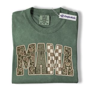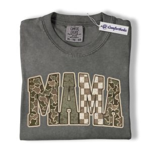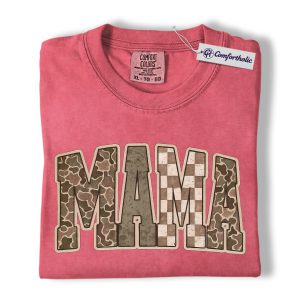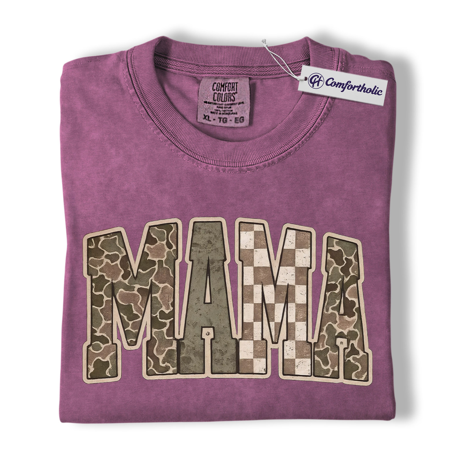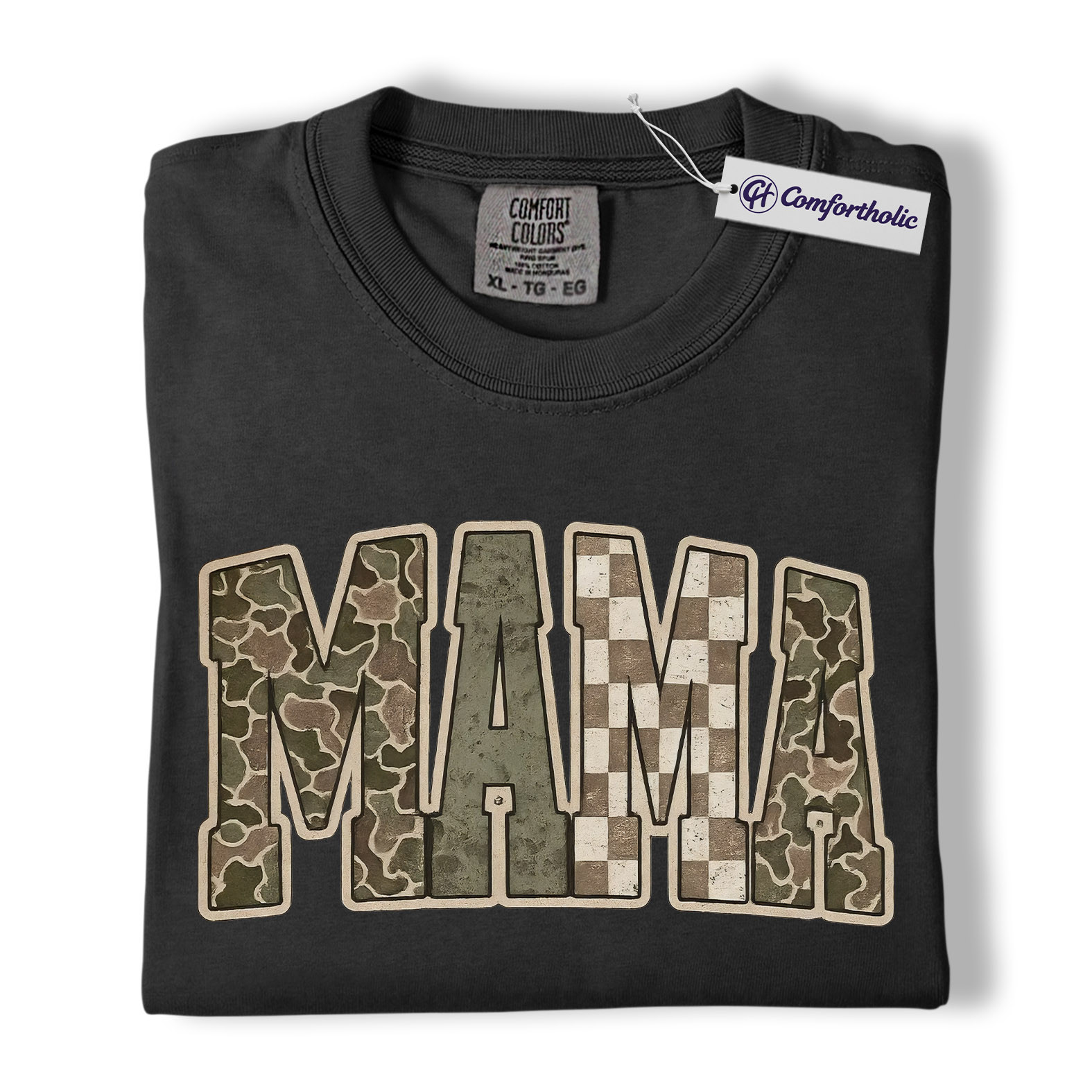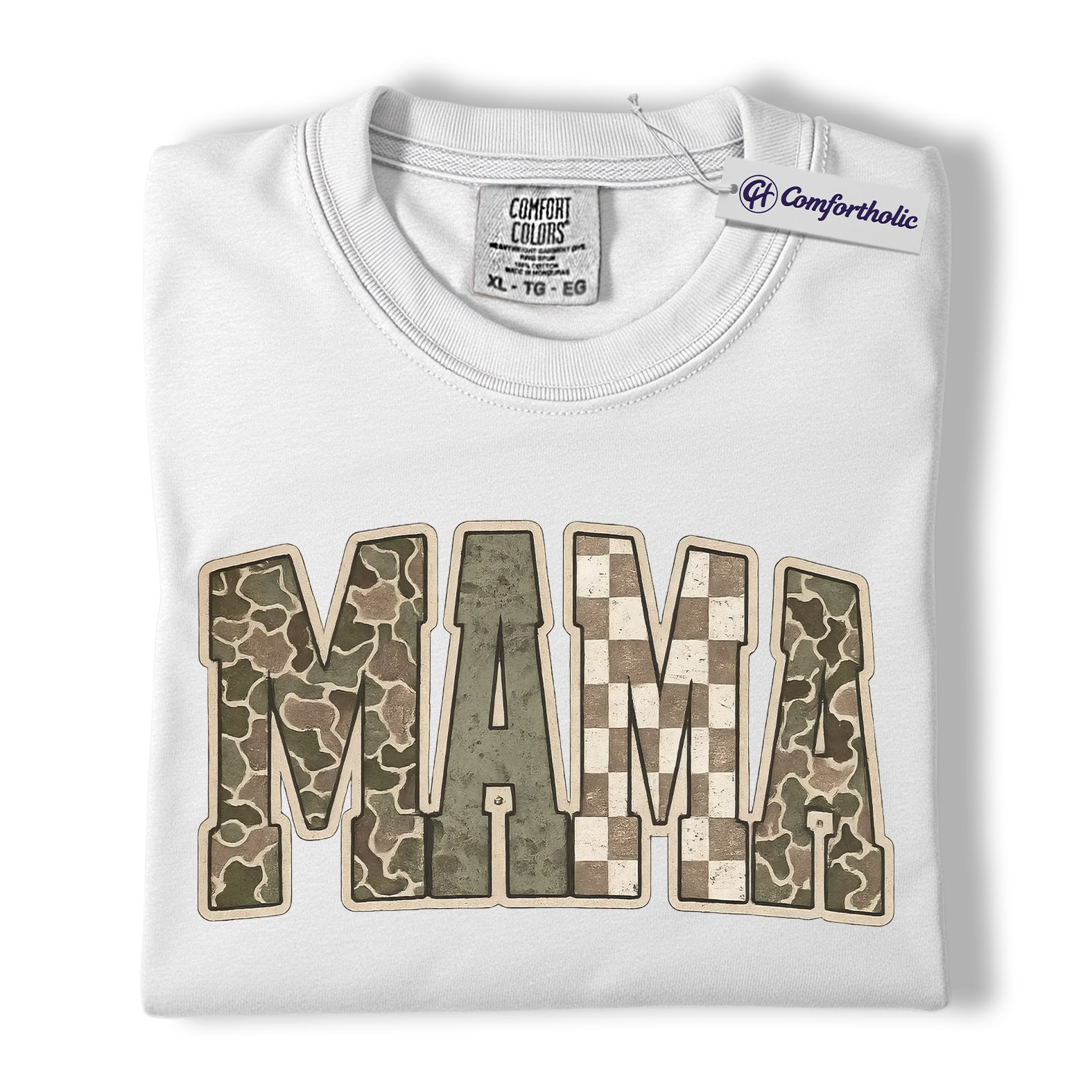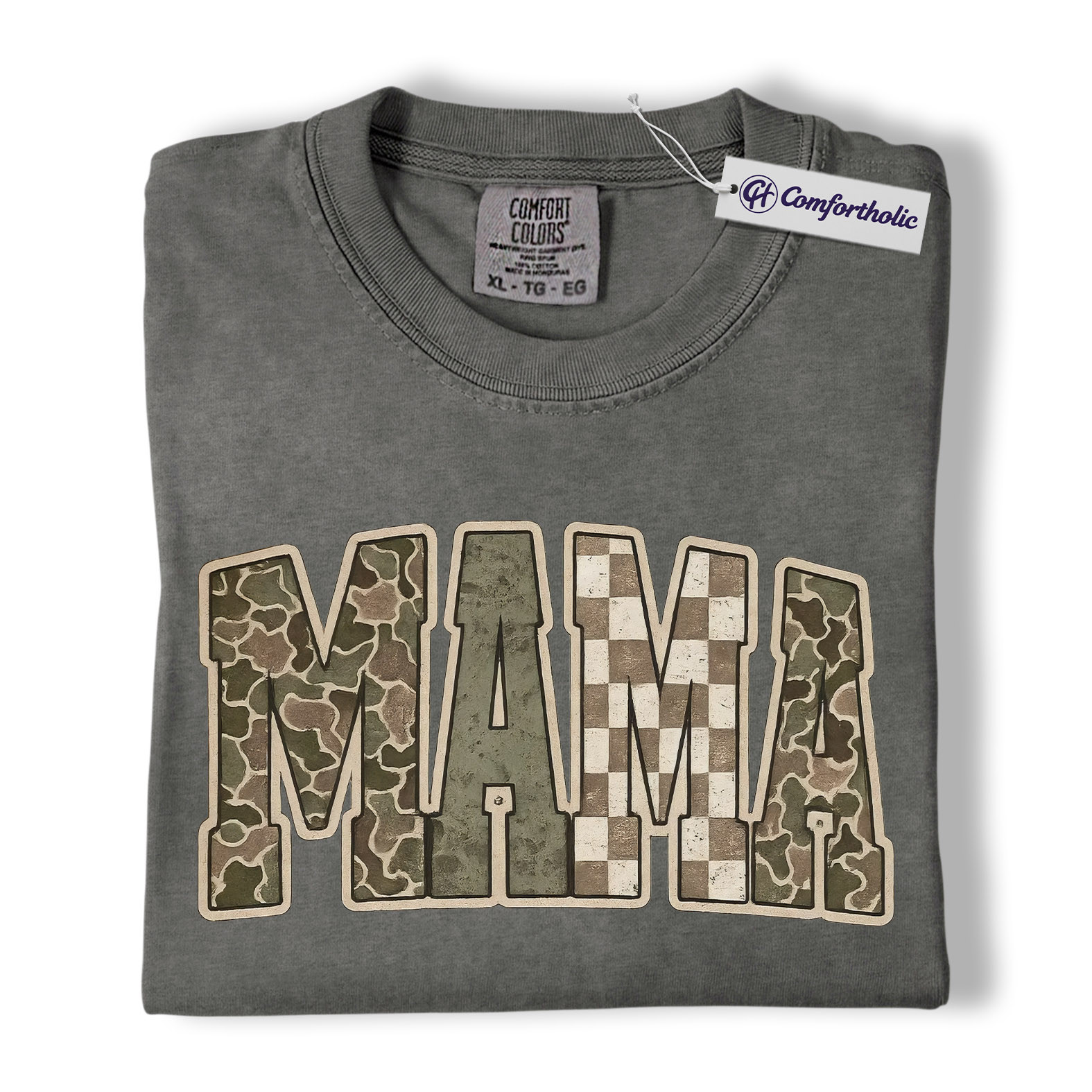 Mama Shirt, Camo and Gingham Graphic Tee, Rustic Motherhood Mom Life T-Shirt, Mother’s Day Gift for Moms, Comfort Colors Shirt