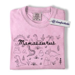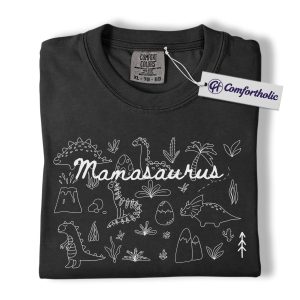 Mamasaurus Shirt, Cute Dinosaur Mom T-Shirt, Funny Motherhood Graphic Tee, Mother’s Day Gift for Mama and Kids, Family Comfort Colors Shirt