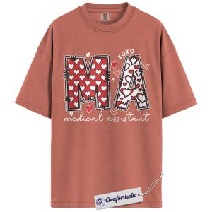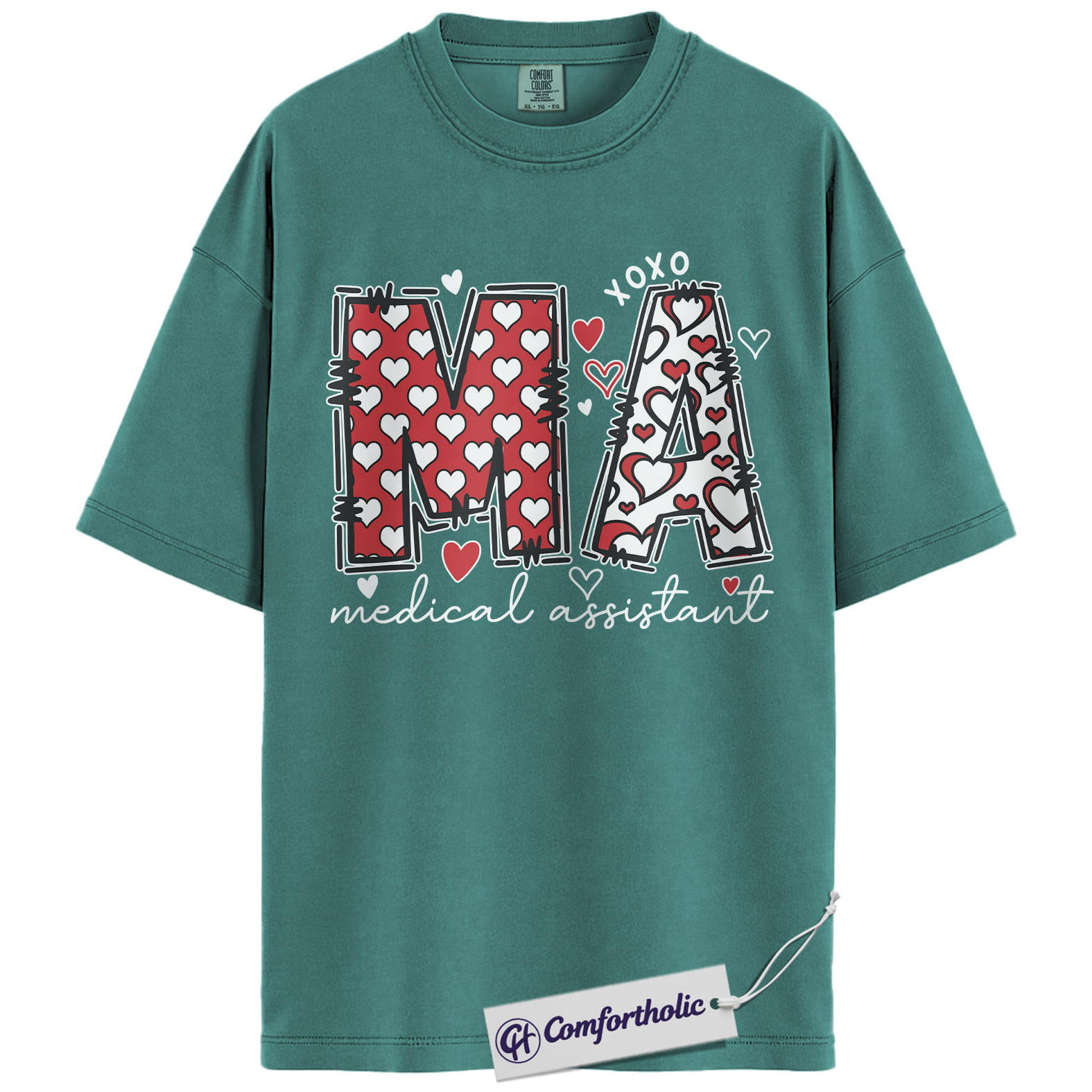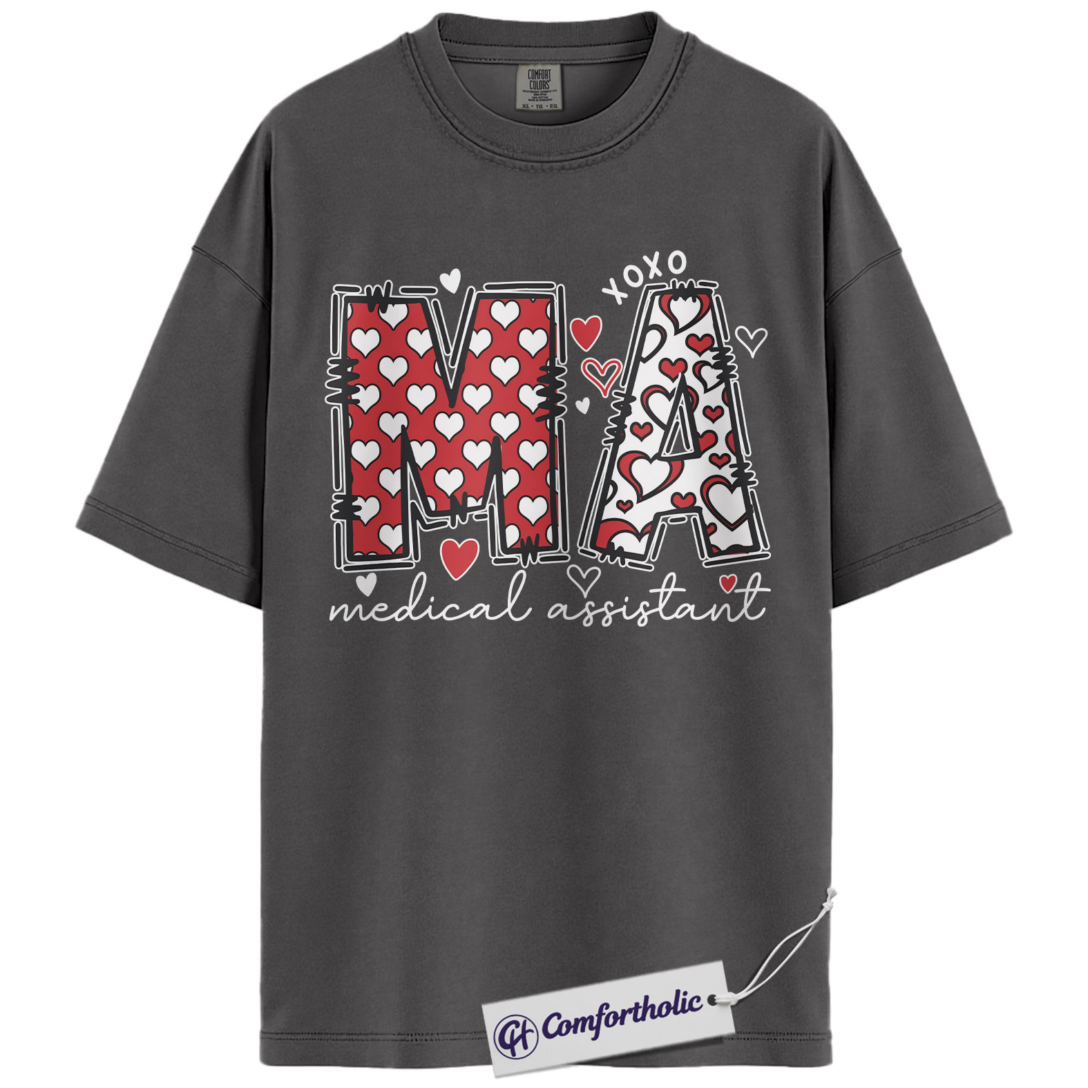 Medical Assistant Valentine Shirt, Cute Heart MA Graphic Tee, Healthcare Worker T-Shirt, Valentine’s Day Gift for Medical Assistants, Comfort Colors Shirt