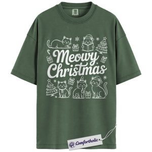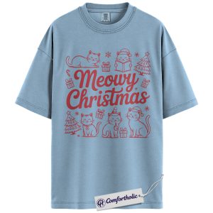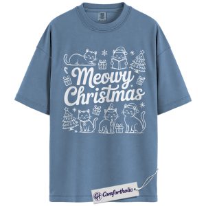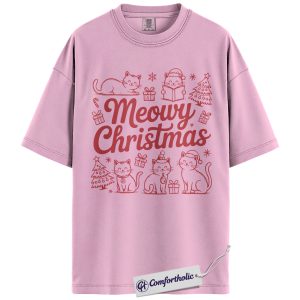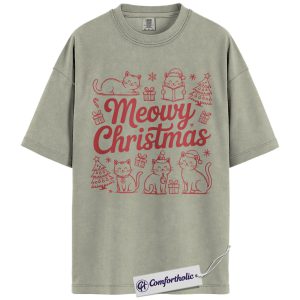 Meowy Christmas Shirt, Christmas Cat T-Shirt, Cute Holiday Cat Graphic Tee, Gift for Cat Lovers, Christmas Comfort Colors Shirt