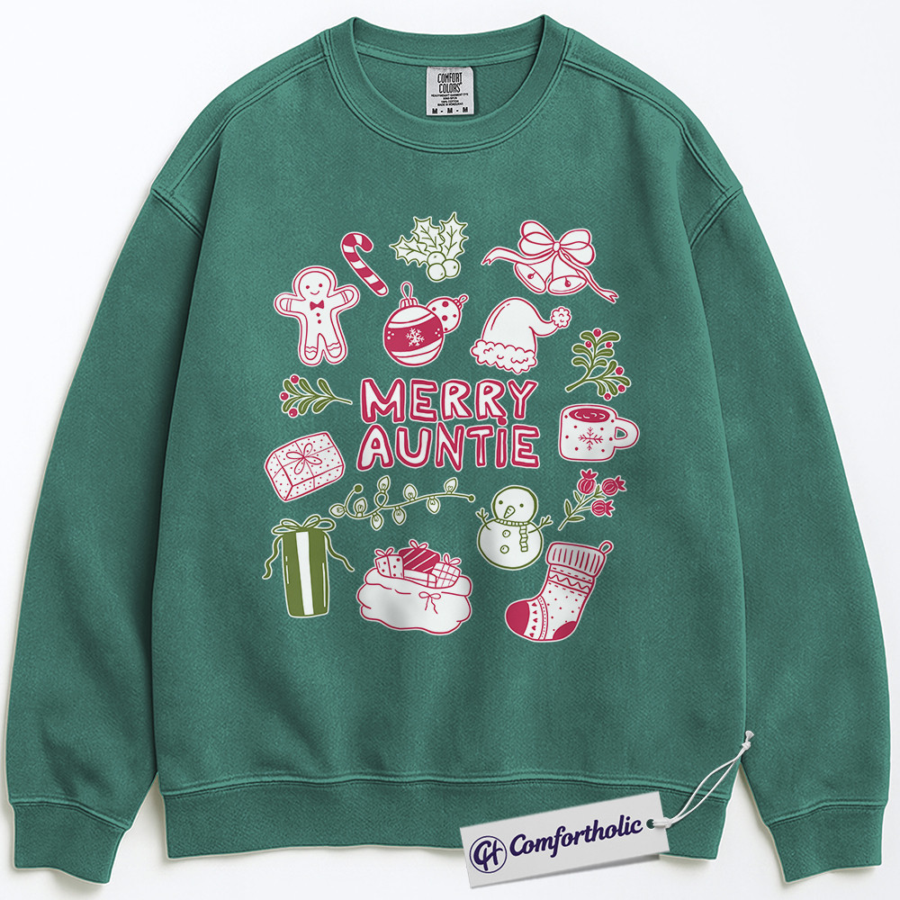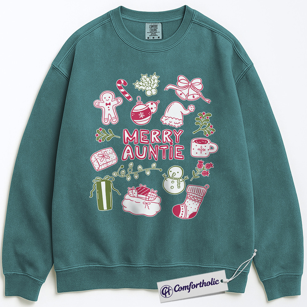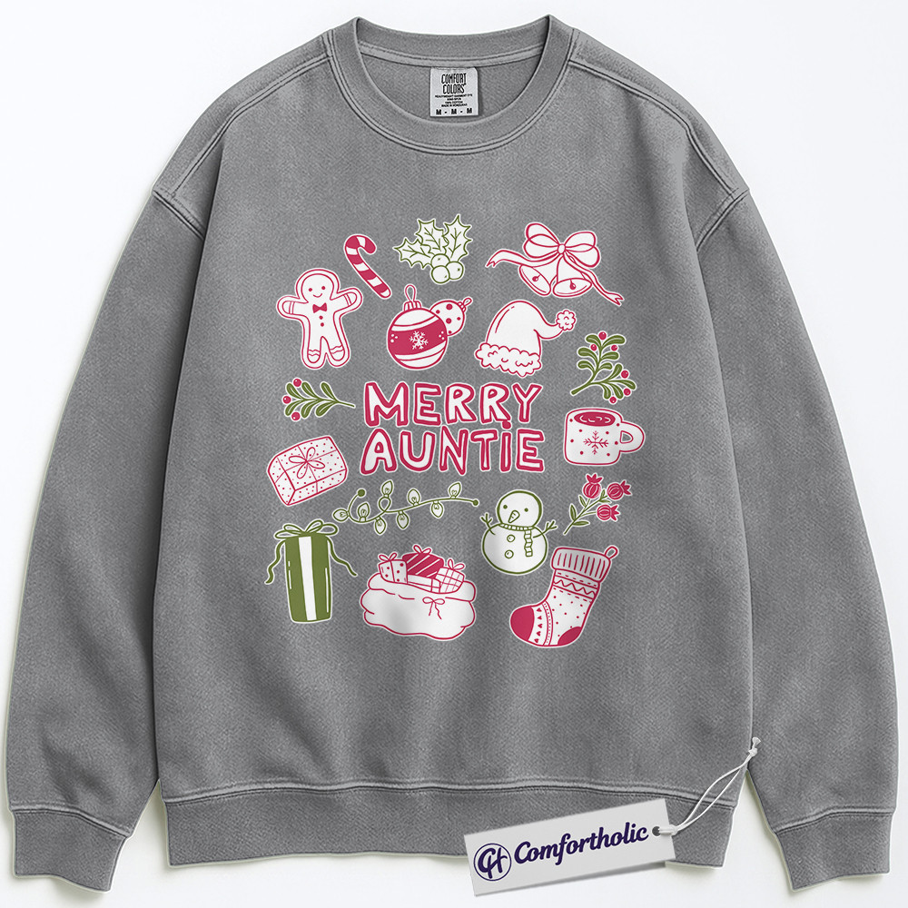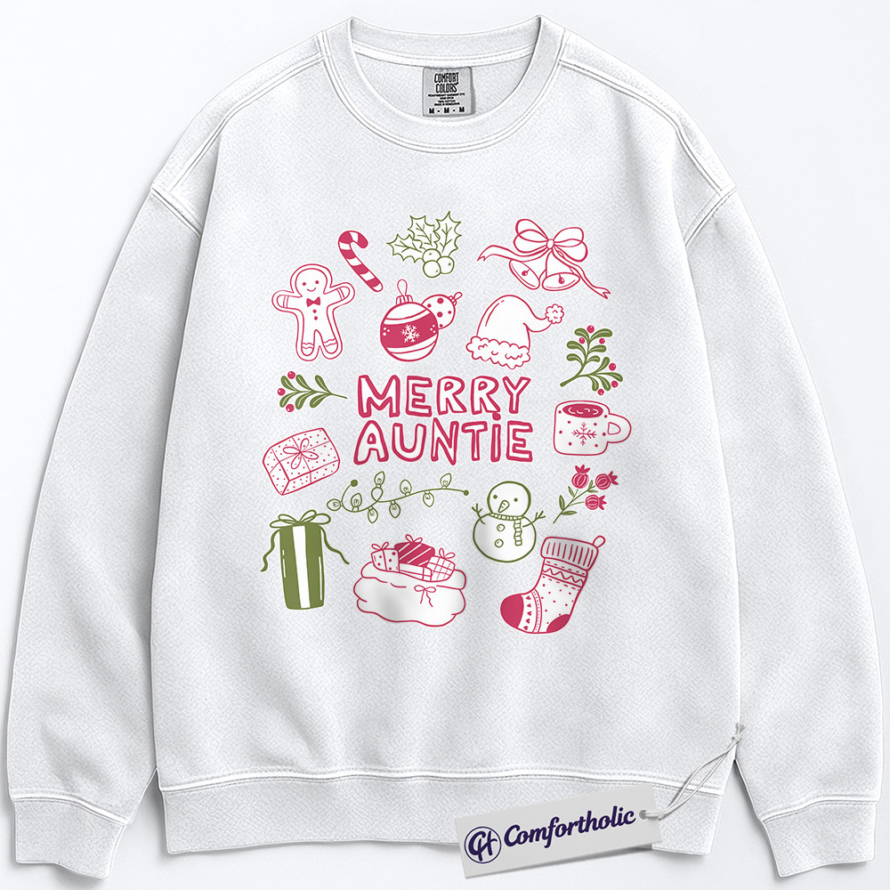 Merry Auntie Sweatshirt, Cute Christmas Aunt Crewneck, Family Matching Holiday Graphic Sweatshirt for Women, Festive Gift for Aunts, Christmas Comfort Colors Sweatshirt