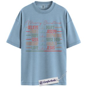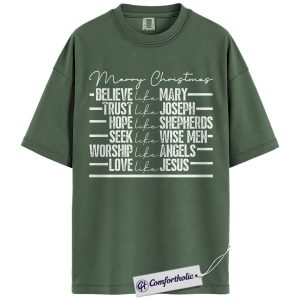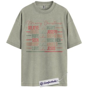 Merry Christmas Faith Shirt, Christian Holiday T-Shirt, Religious Bible Quote Typography Graphic Tee, Meaningful Christmas Gift for Women, Christmas Comfort Colors Shirt