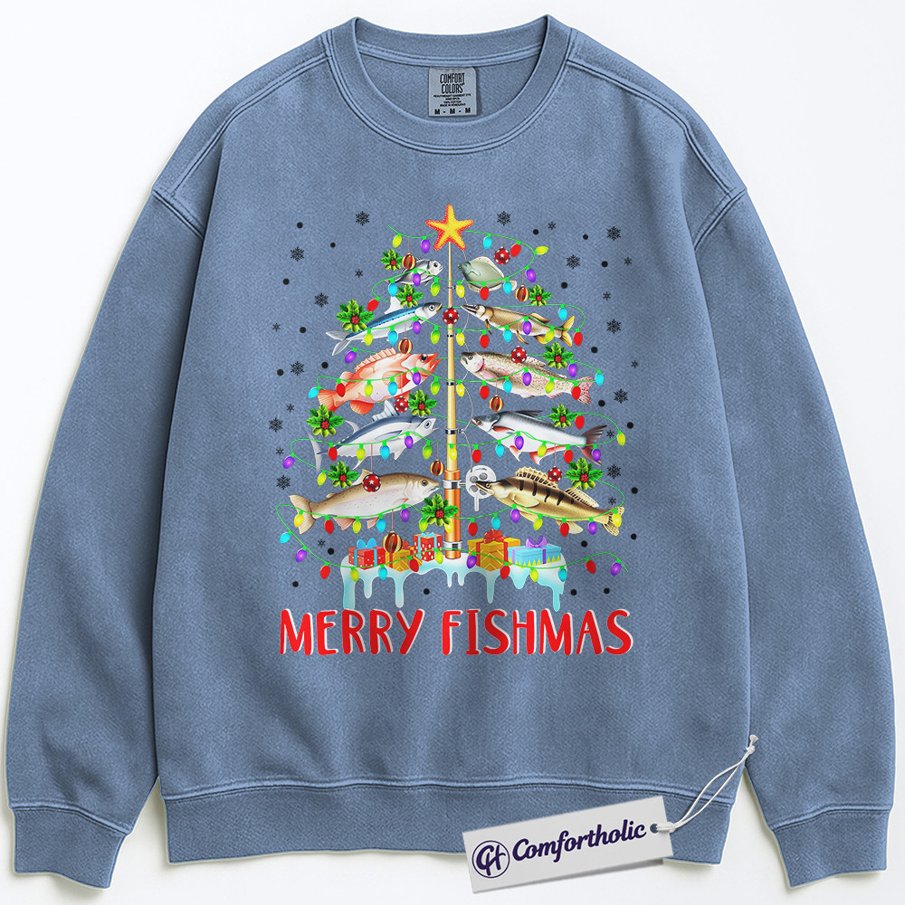 Merry Fishmas Sweatshirt, Funny Fishing Christmas Crewneck, Outdoor Angler Humor Graphic Sweatshirt, Festive Holiday Gift for Fishermen, Christmas Comfort Colors Sweatshirt