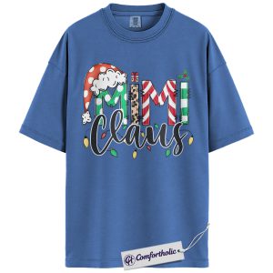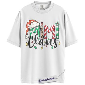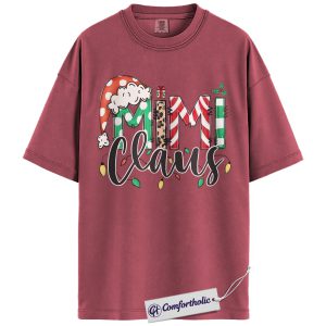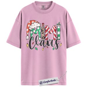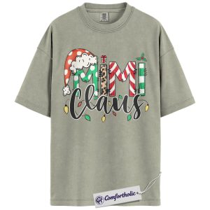 Mimi Claus Christmas Shirt, Cute Grandma Santa T-Shirt, Holiday Leopard and Candy Cane Graphic Tee, Festive Family Matching Gift, Christmas Comfort Colors Shirt