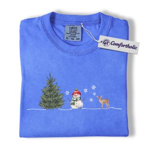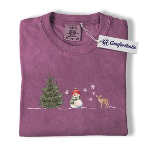Minimal Christmas Shirt, Watercolor Snowman Reindeer T-Shirt, Cozy Winter Holiday Graphic Tee, Christmas Comfort Colors Shirt