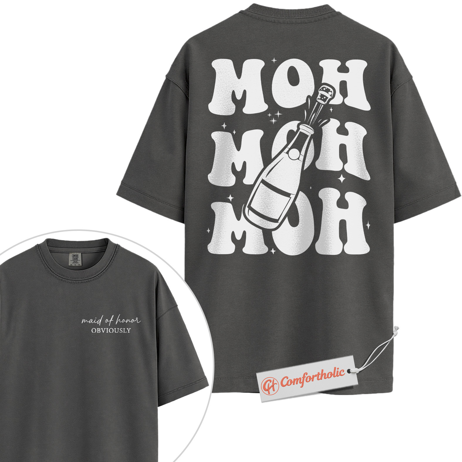 MOH Shirt, Maid of Honor Champagne T-Shirt, Funny Bridal Party Graphic Tee, Bachelorette Celebration Gift, Wedding Crew Comfort Colors Shirt 2-Sided