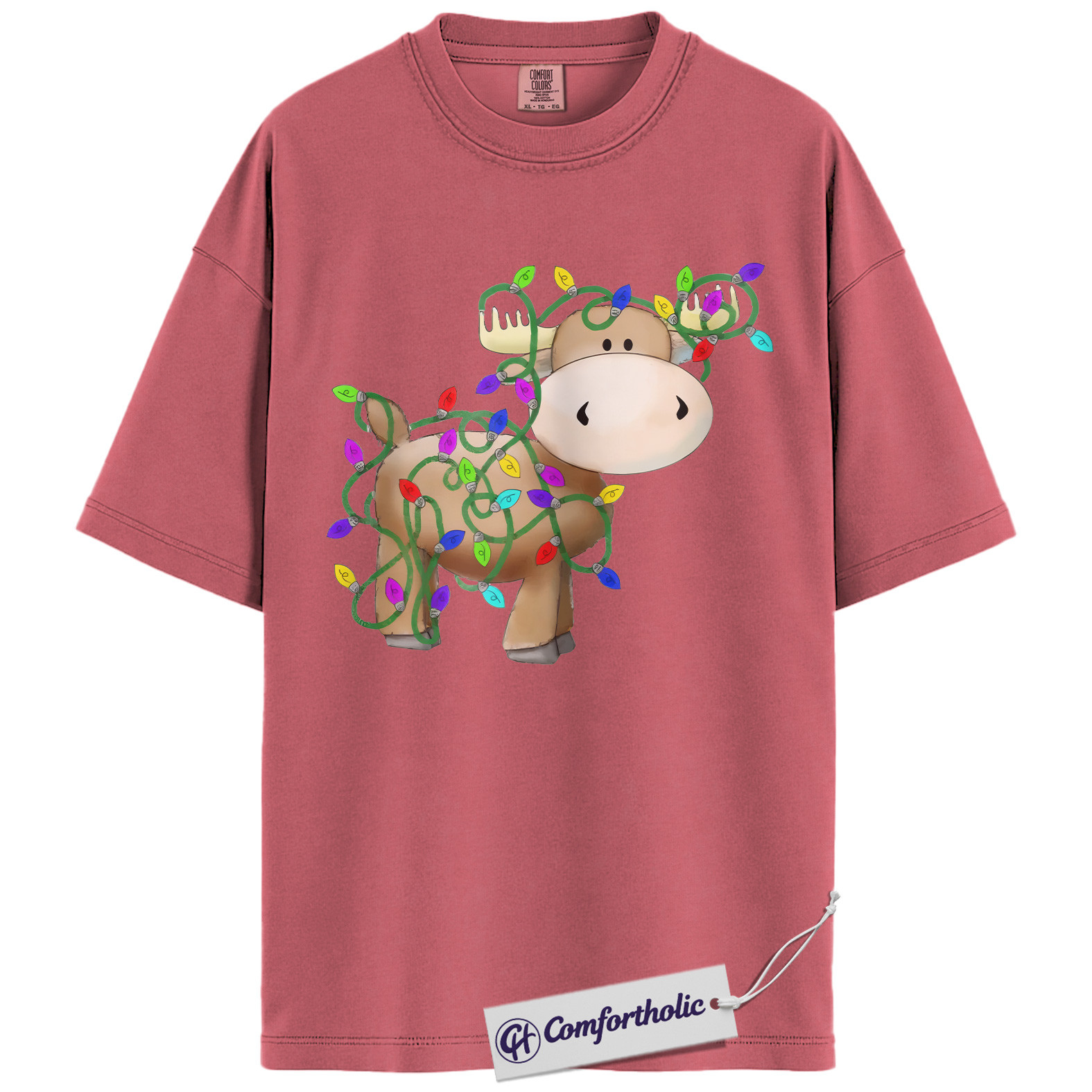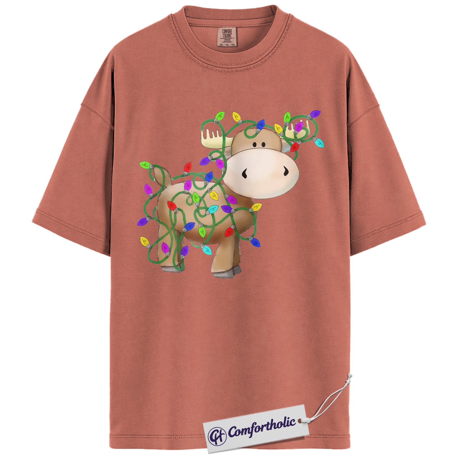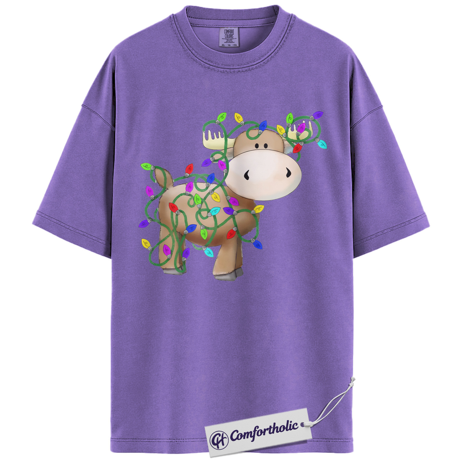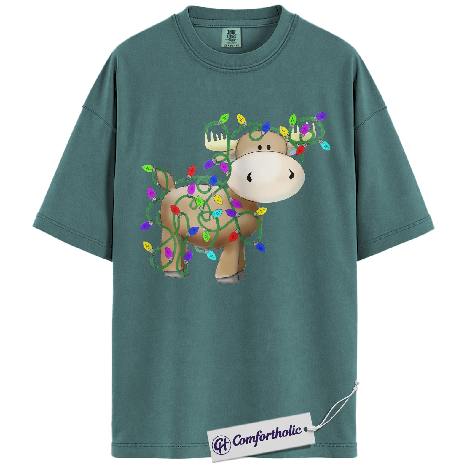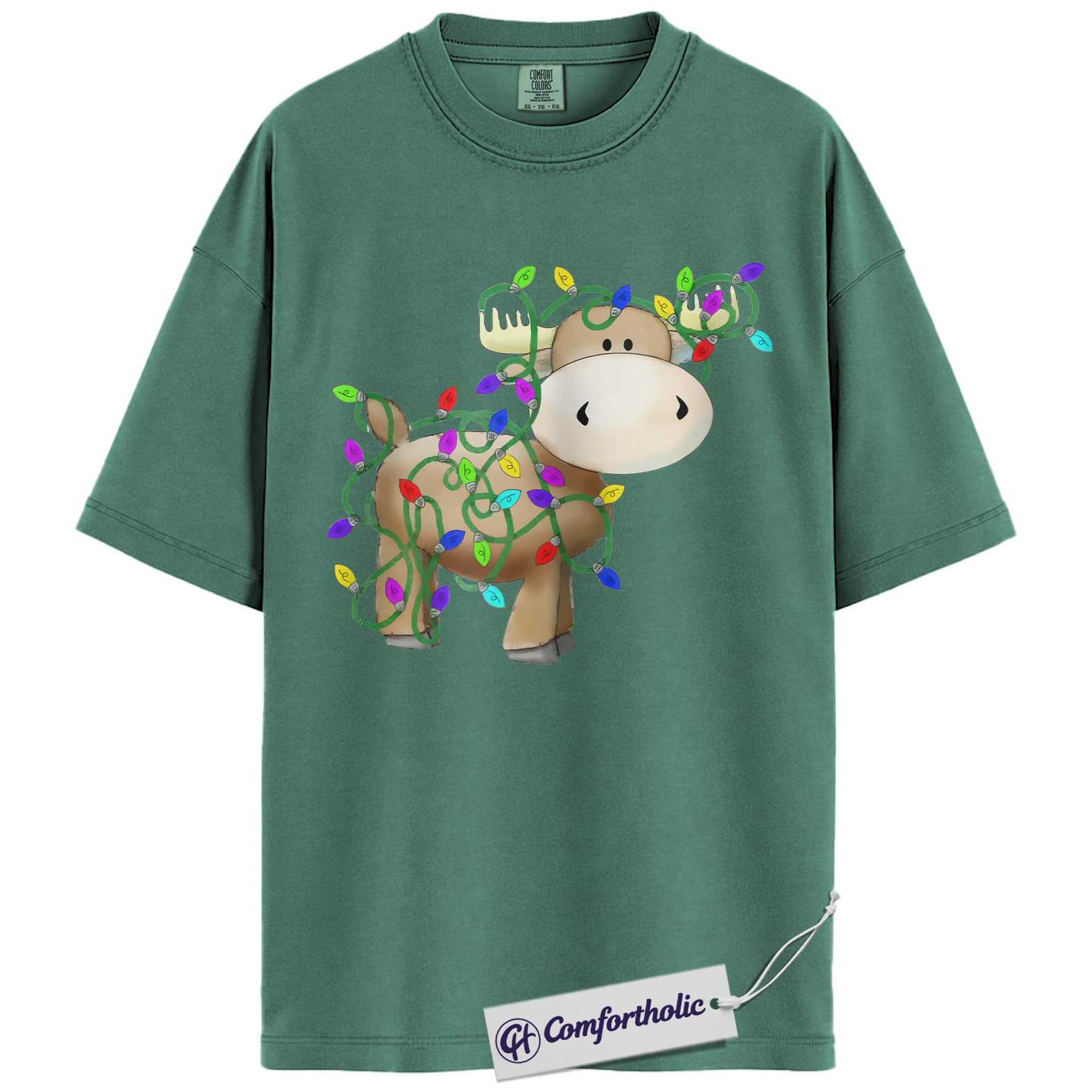 Moose Christmas Shirt, Funny Holiday T-Shirt, Cute Animal Lights Graphic Tee, Festive Winter Gift for Christmas Lovers, Christmas Comfort Colors Shirt