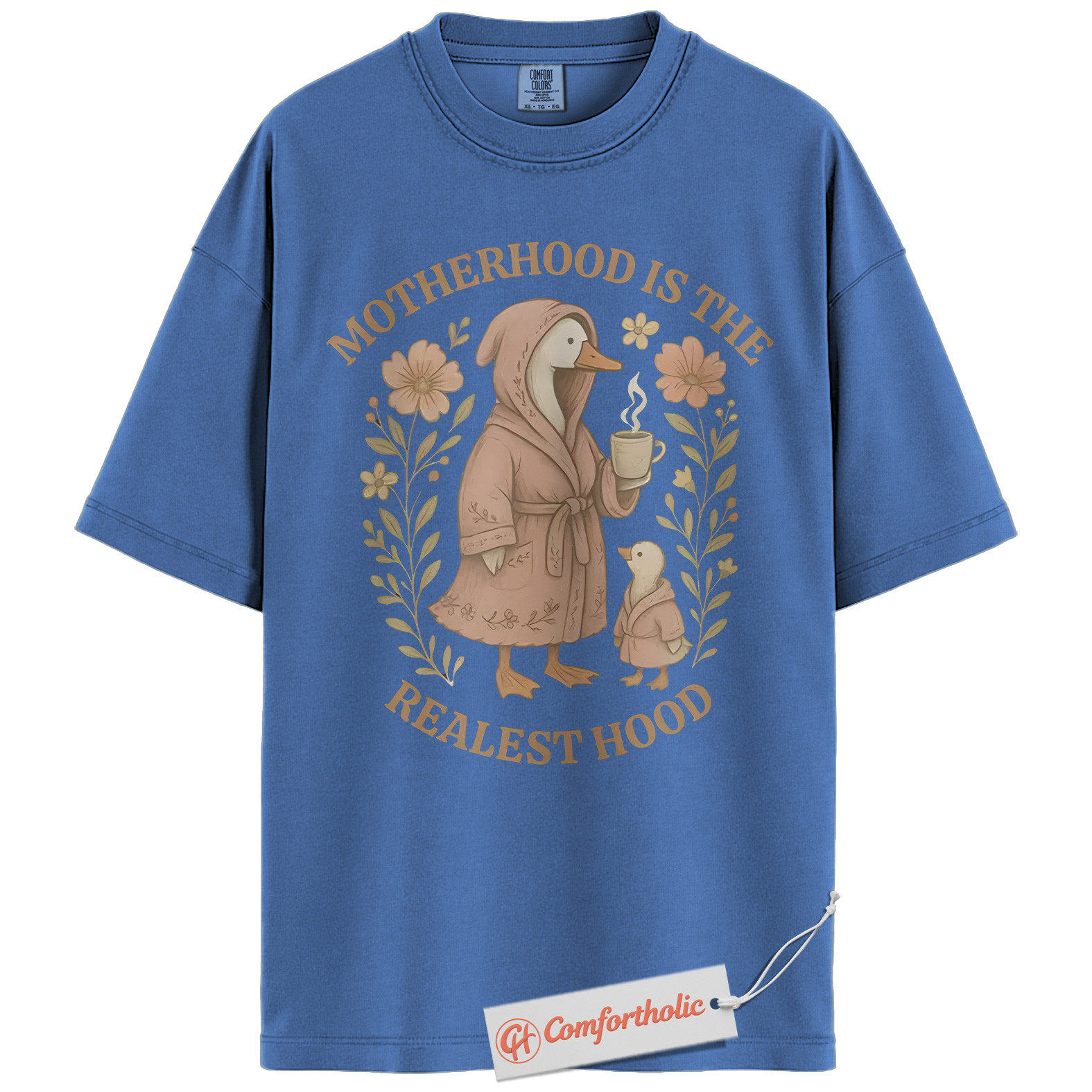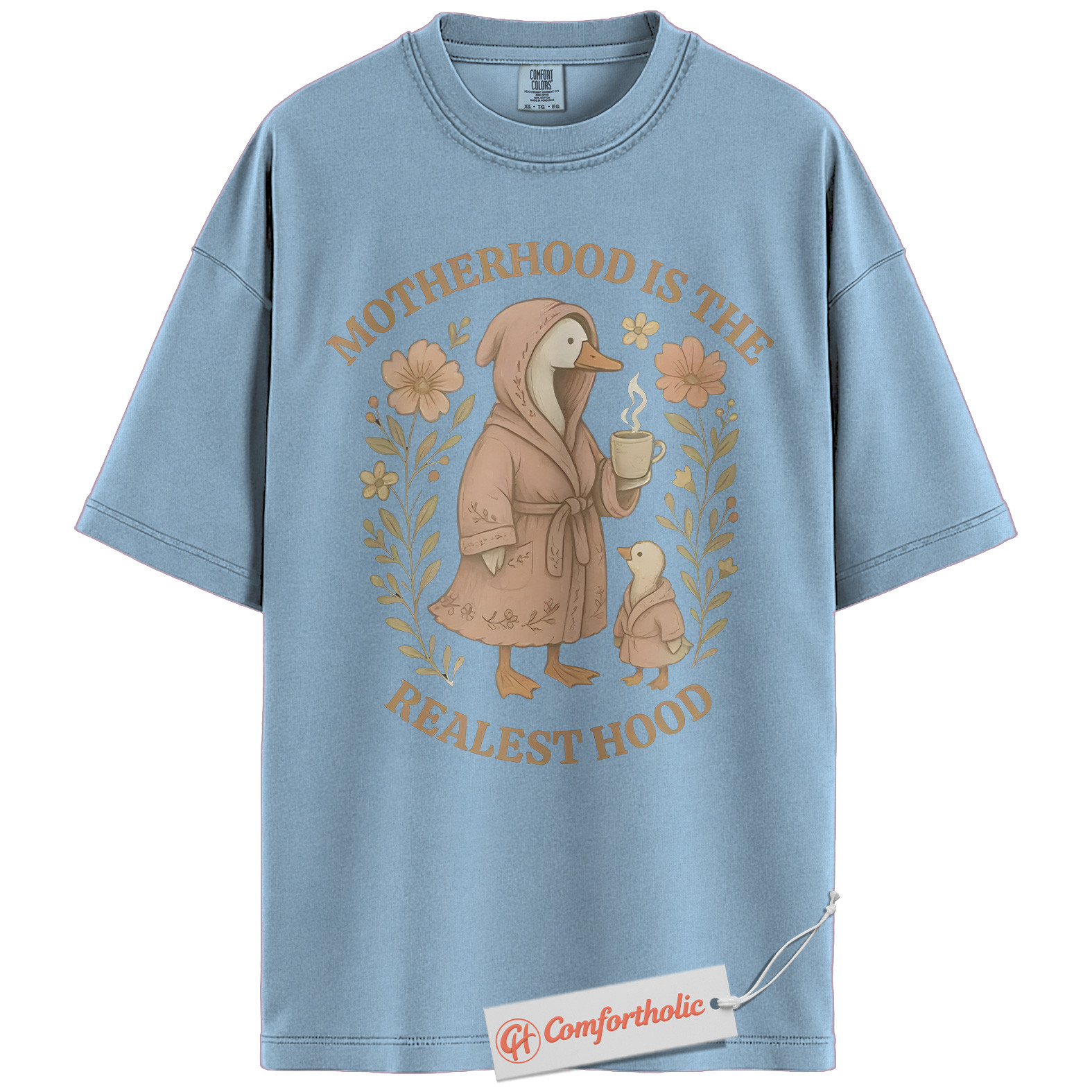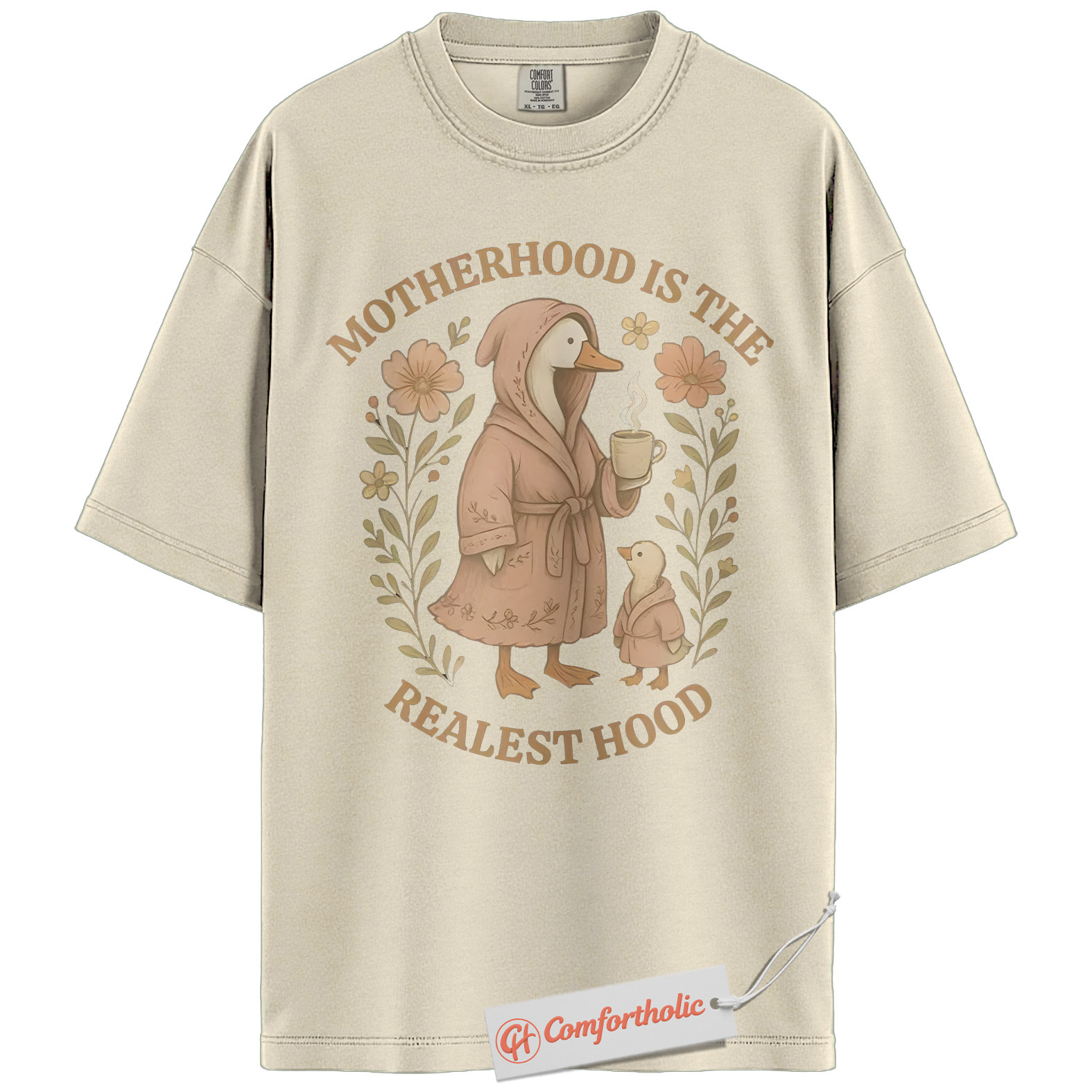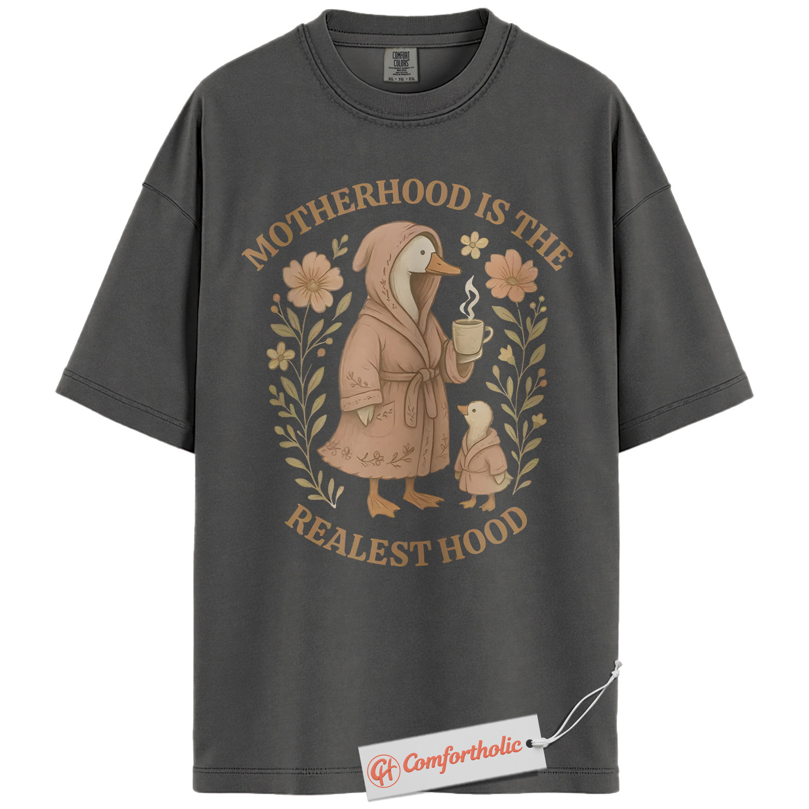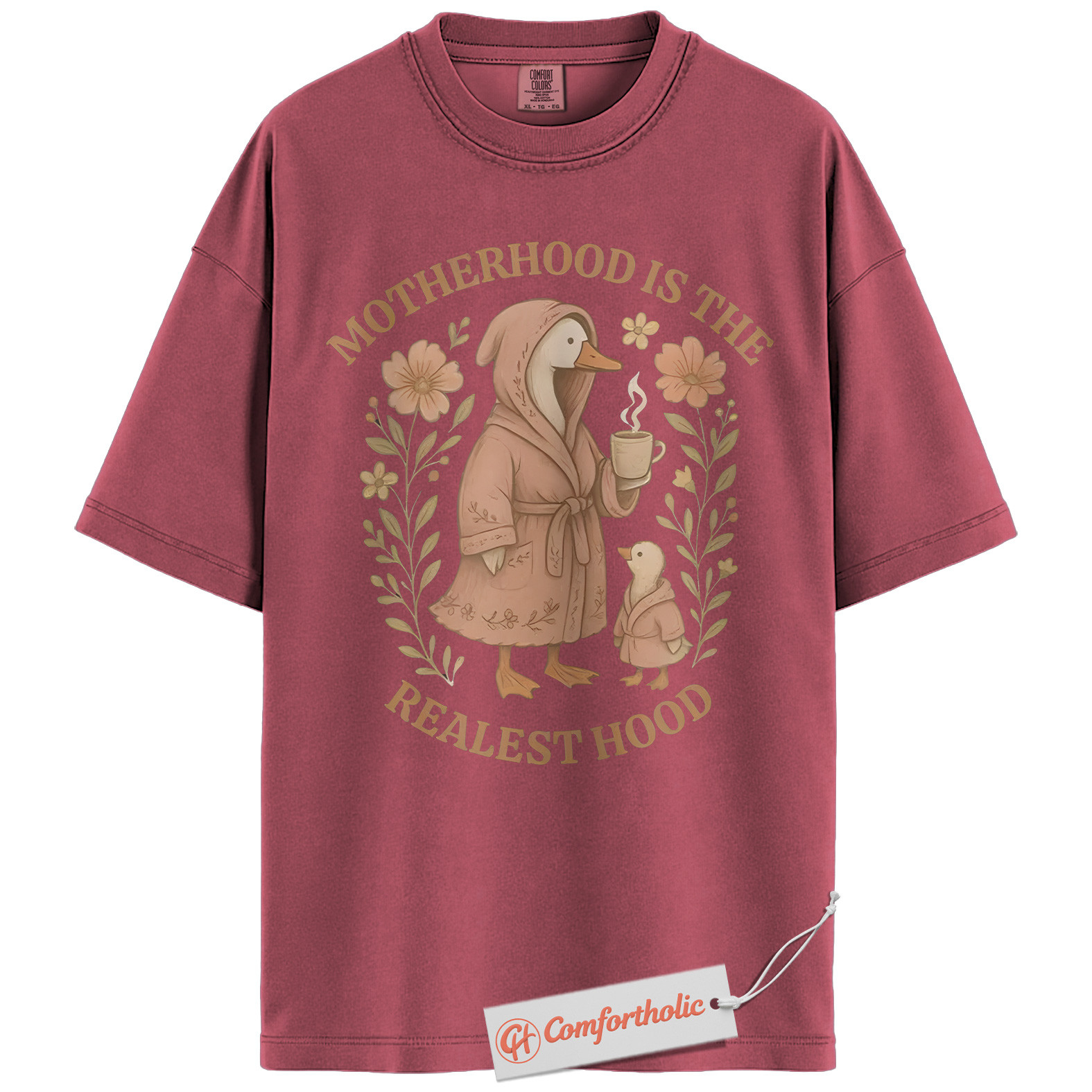 Motherhood Is the Realest Hood Shirt, Funny Duck Mom Shirt, Cute Animal Shirt, Mother’s Day Shirt, Comfort Colors Shirt