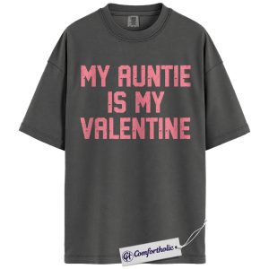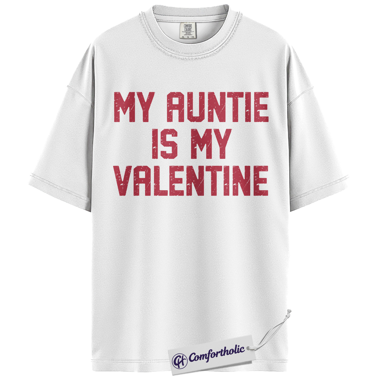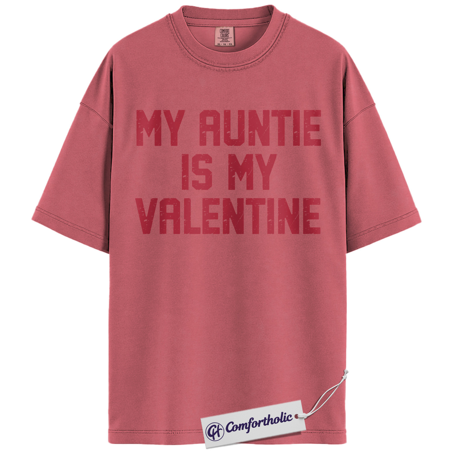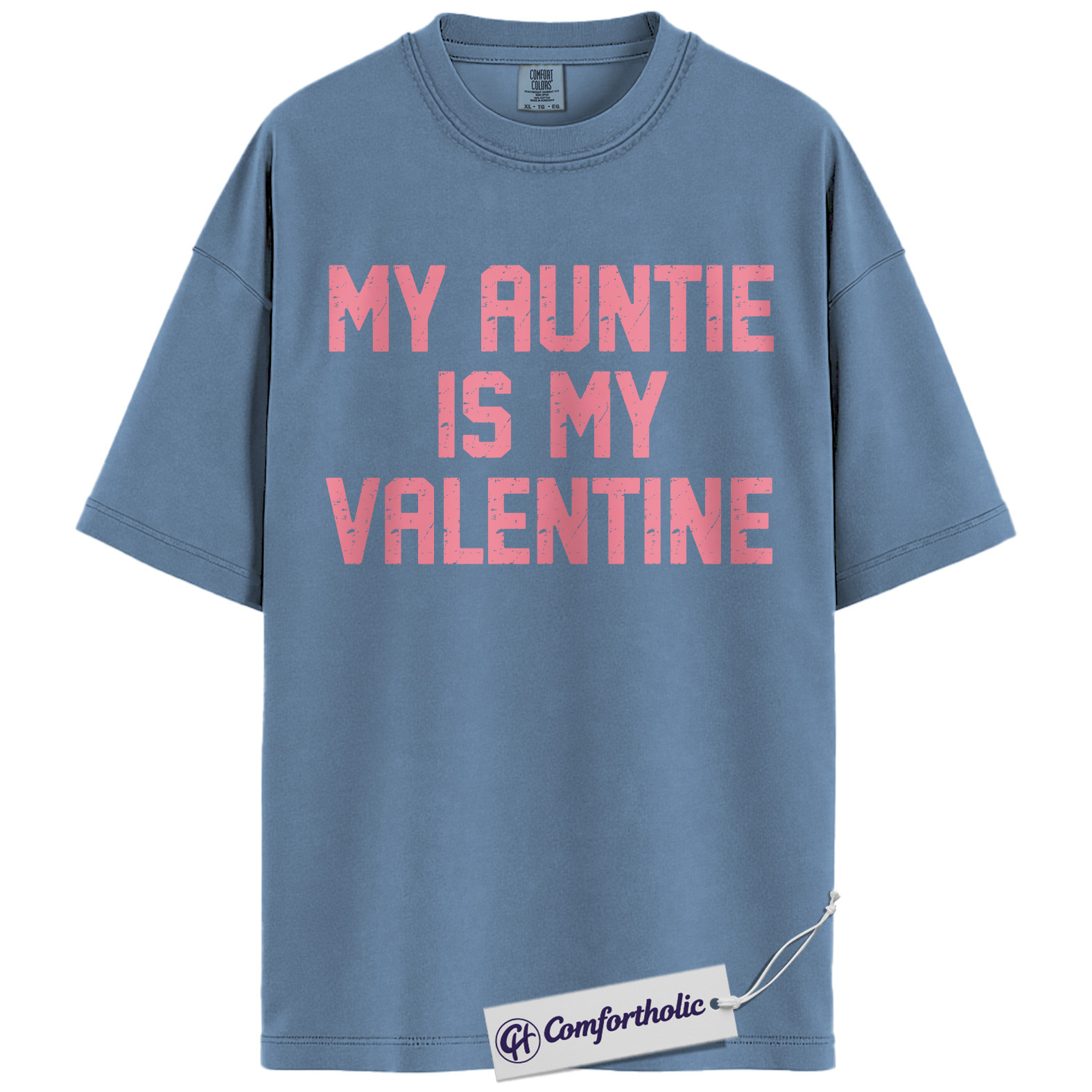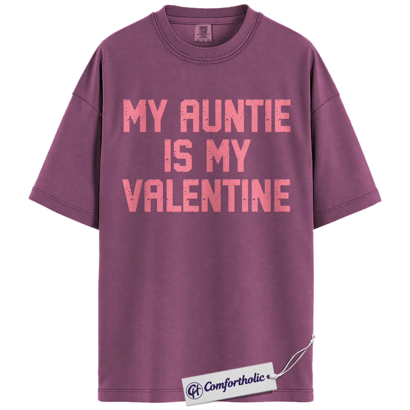 My Auntie Is My Valentine Shirt, Cute Pink Family Valentine T-Shirt, Minimalist Heart Graphic Tee, Sweet Valentine Gift for Kids and Aunties, Comfort Colors Shirt