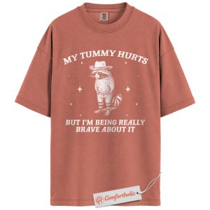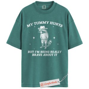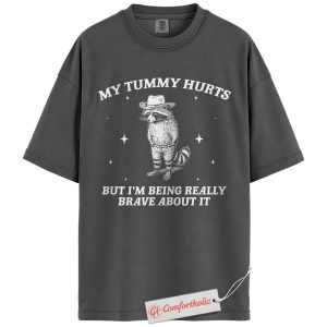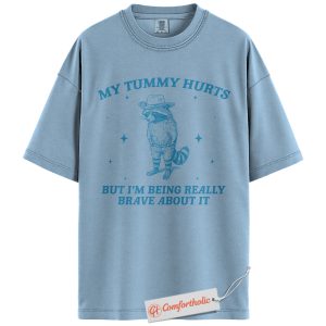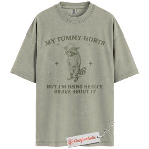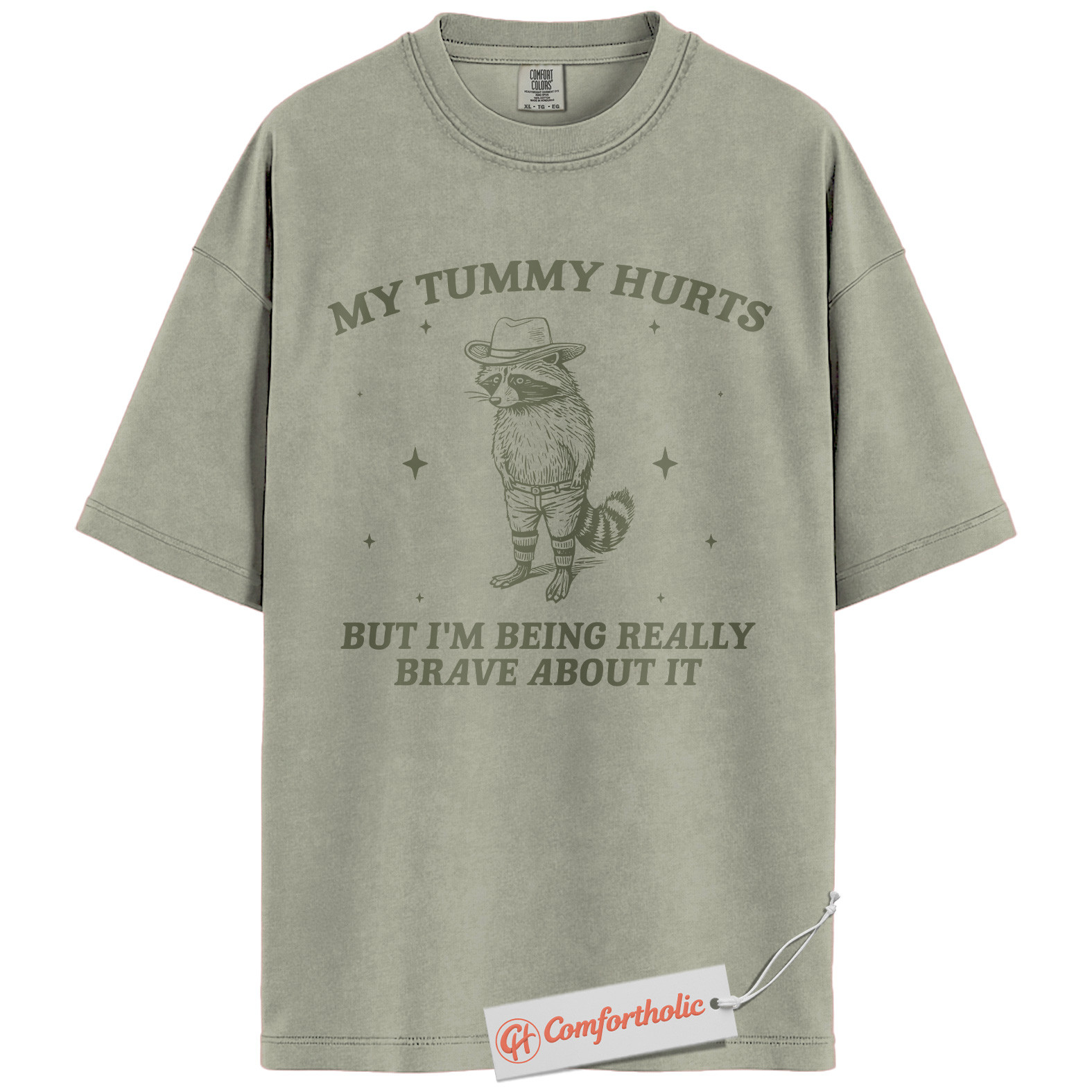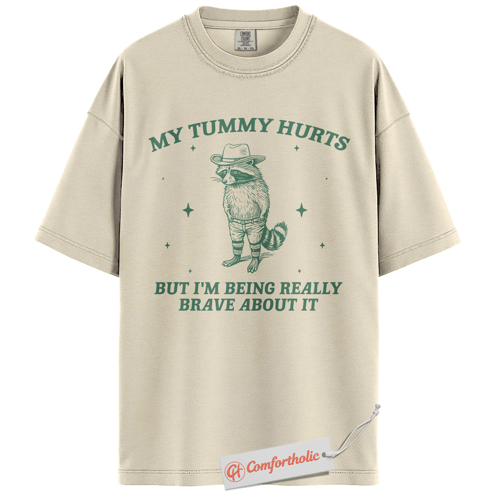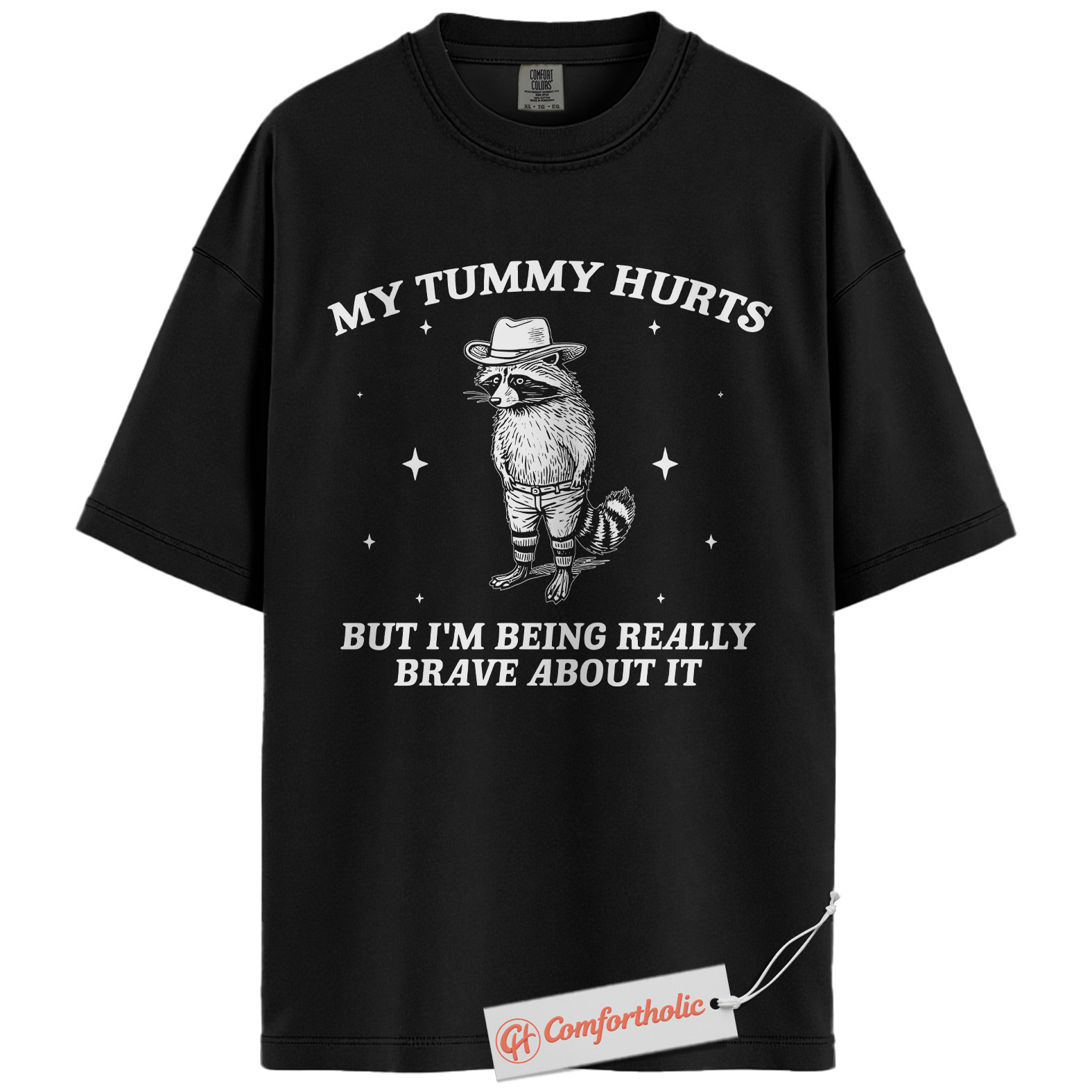 My Tummy Hurts Shirt, Funny Raccoon T-Shirt, Cute Animal Meme Graphic Tee, Humor Gift for Animal Lovers, Trash Panda Comfort Colors Shirt