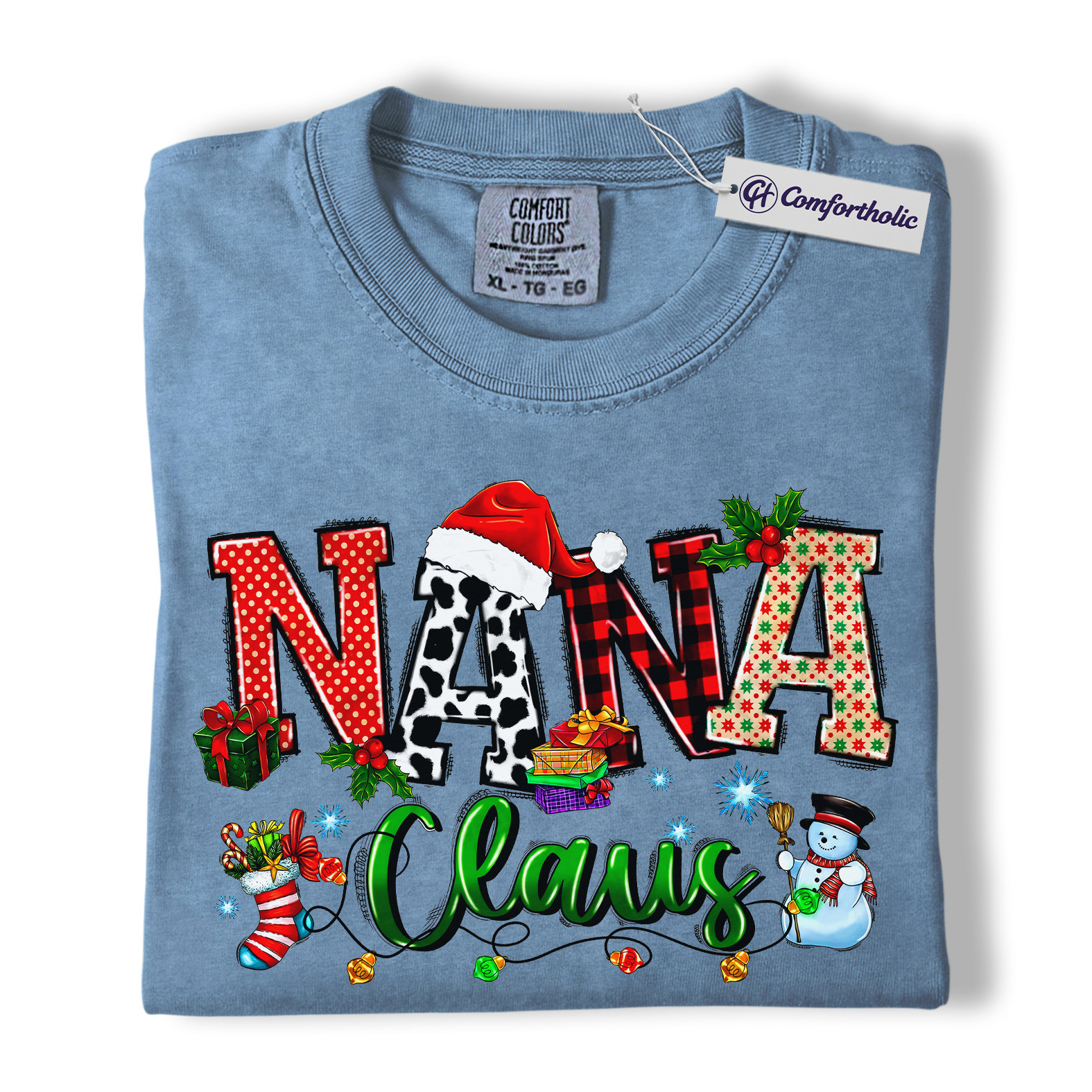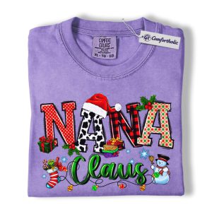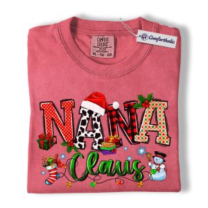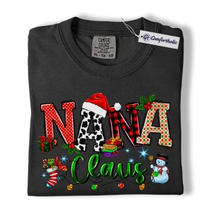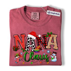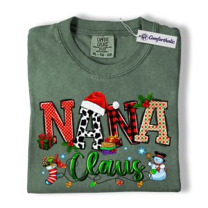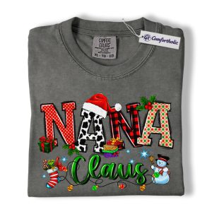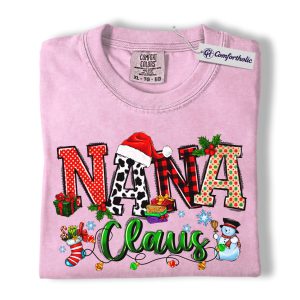 Nana Claus Shirt, Christmas Grandma T-Shirt, Festive Holiday Family Graphic Tee, Cute Christmas Gift for Nana, Christmas Comfort Colors Shirt
