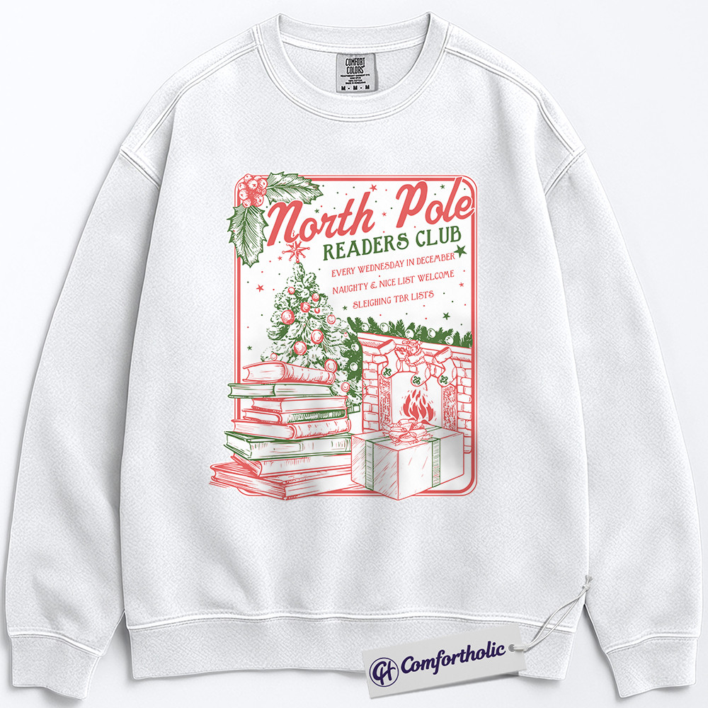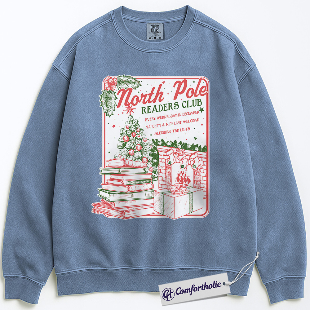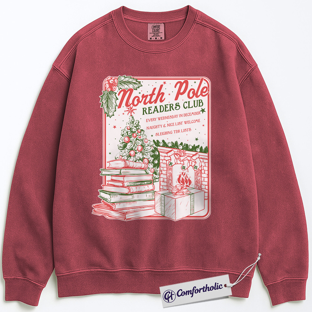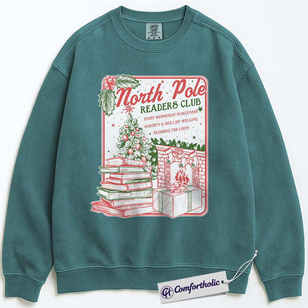 North Pole Readers Club Sweatshirt, Christmas Book Lover Pullover, Cozy Holiday Reading Graphic Sweatshirt, Festive Literary Gift for Readers, Comfort Colors Sweatshirt