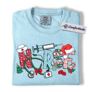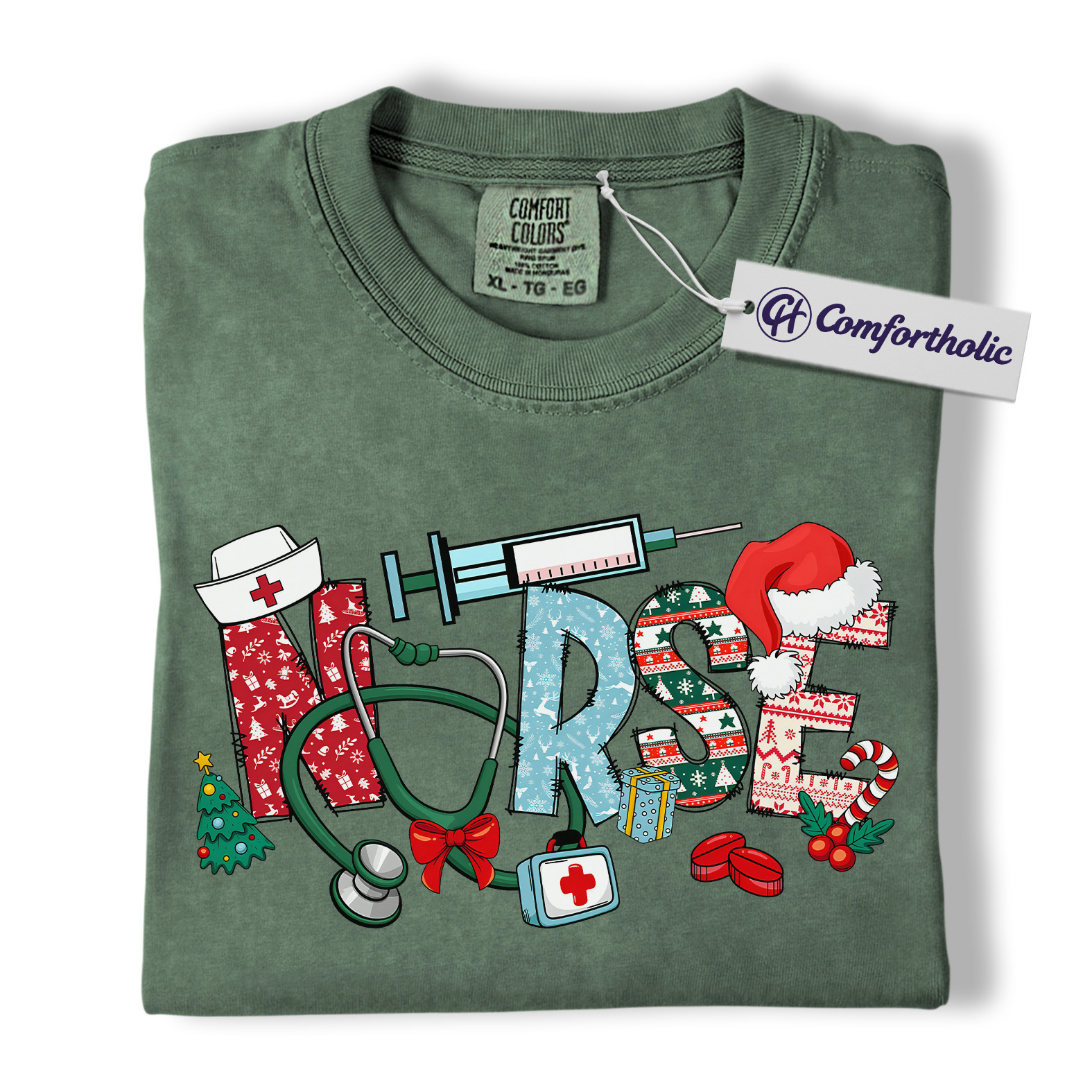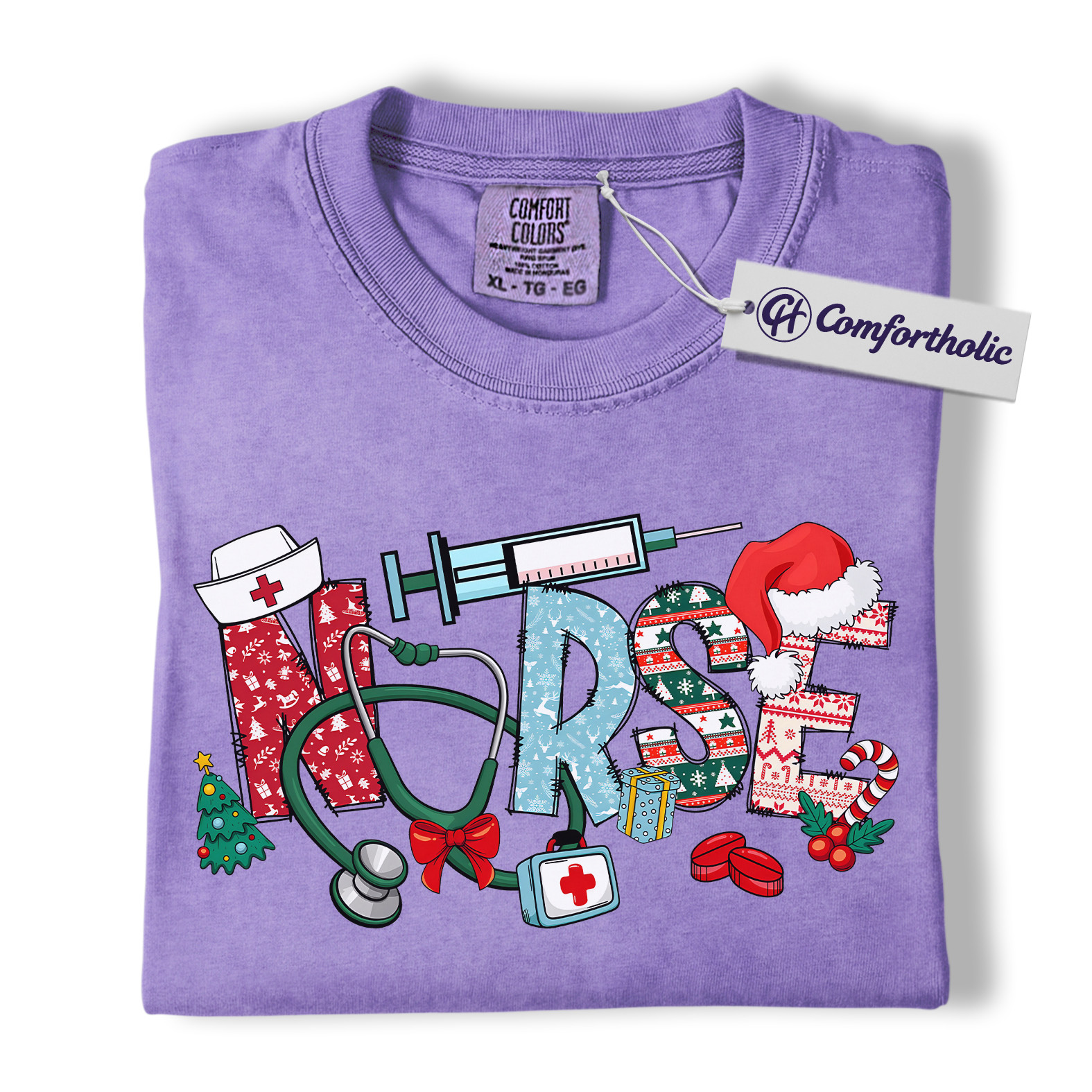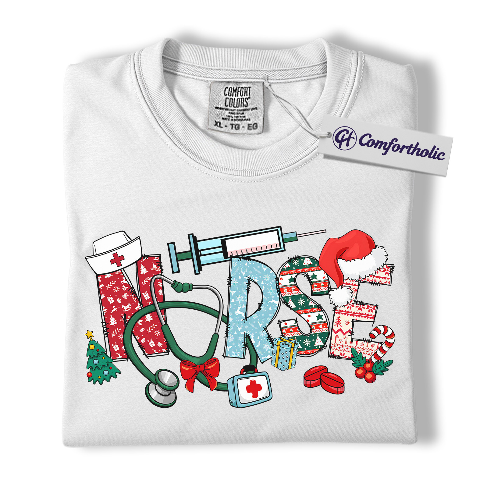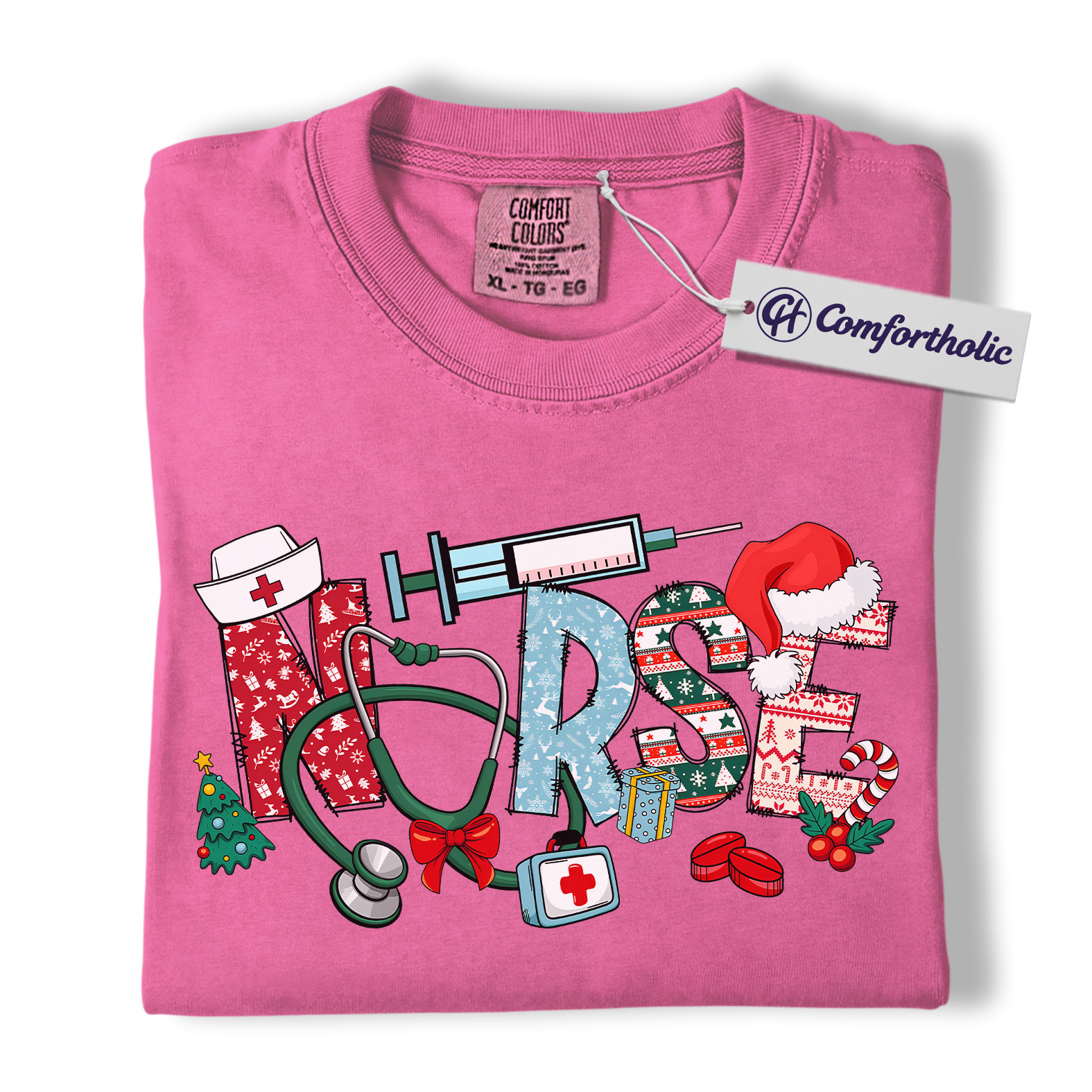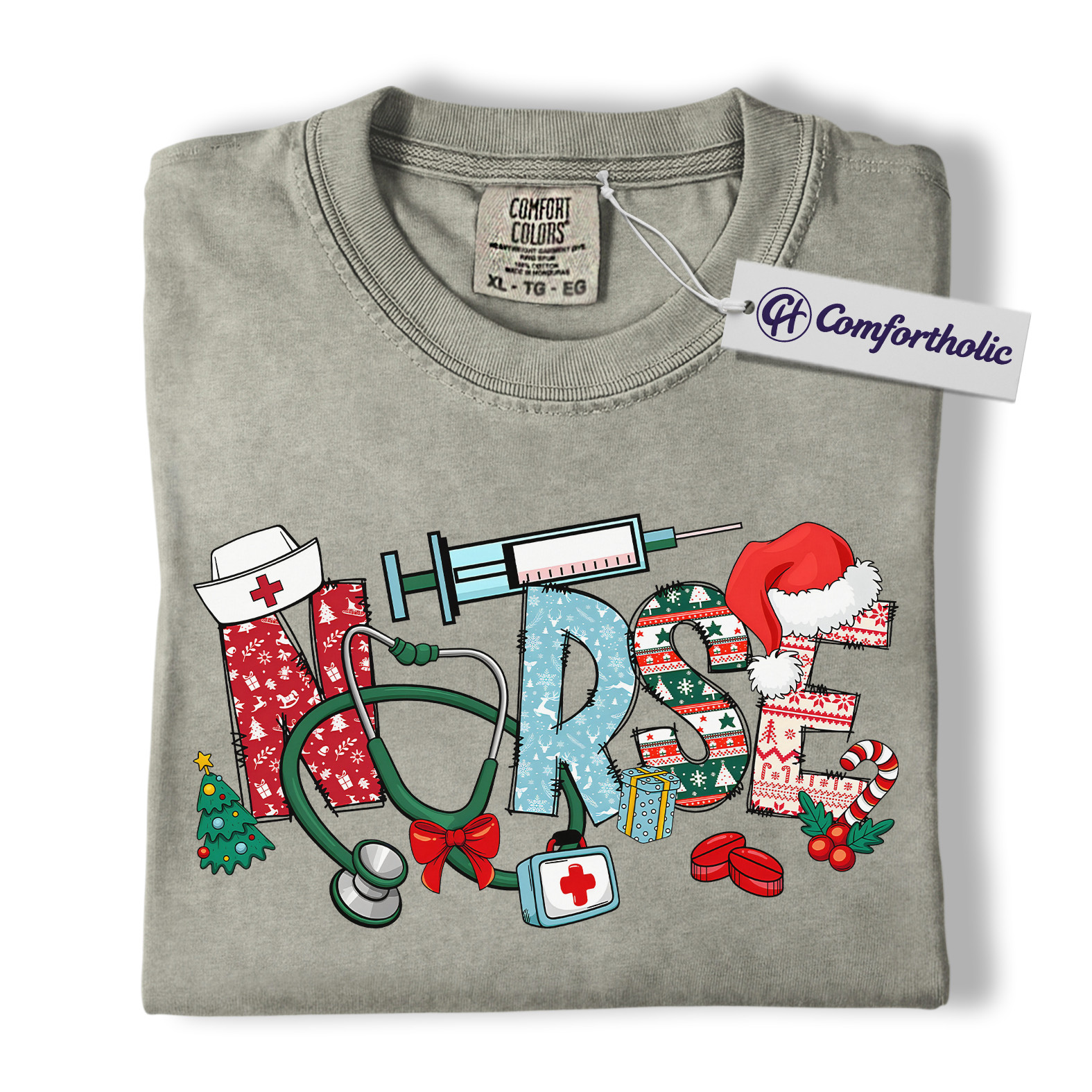 Nurse Christmas Shirt, Funny Holiday Medical T-Shirt, Cute RN Graphic Tee for Healthcare Workers, Festive Nurse Gift, Christmas Comfort Colors Shirt
