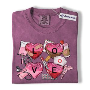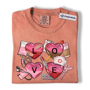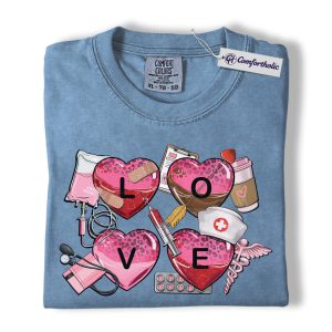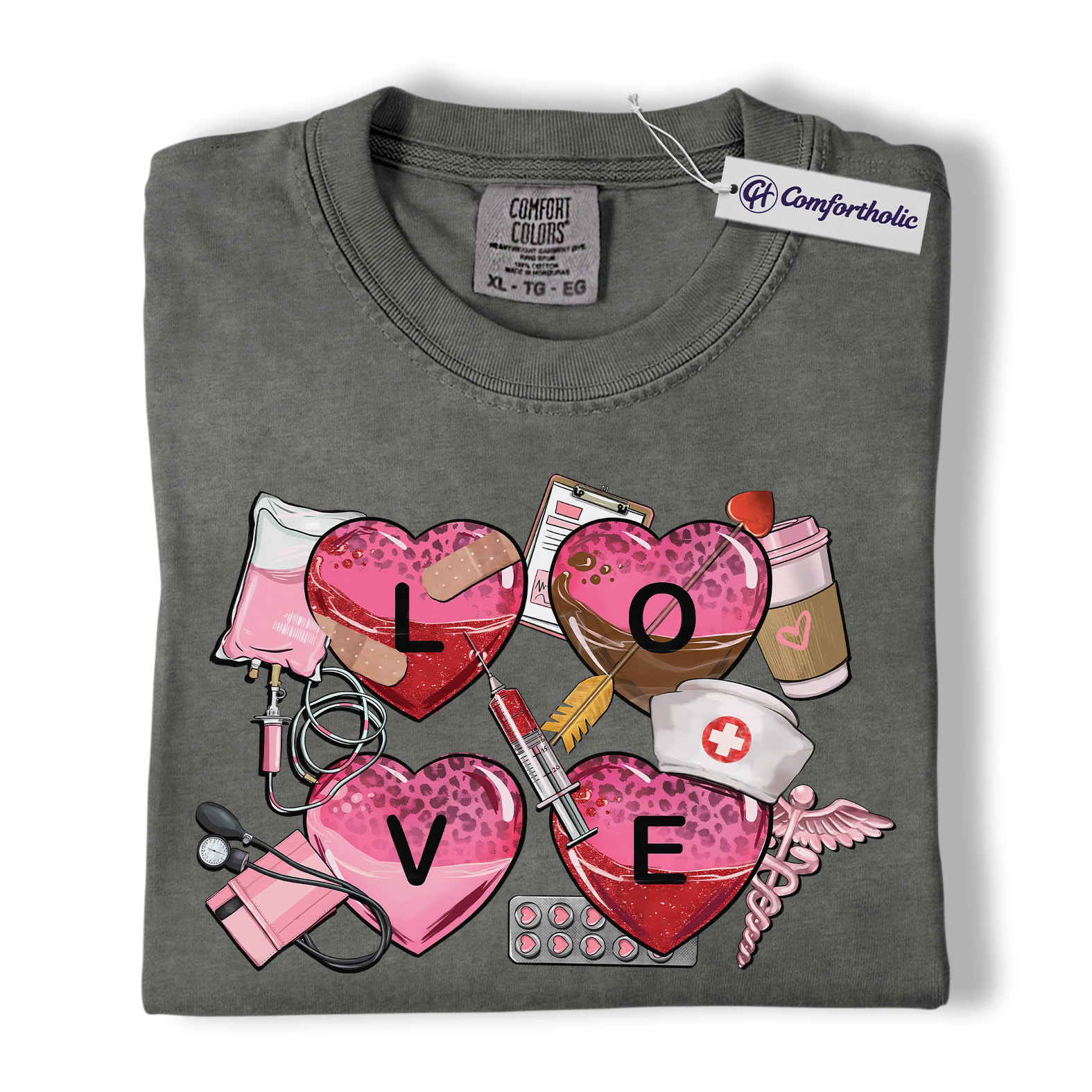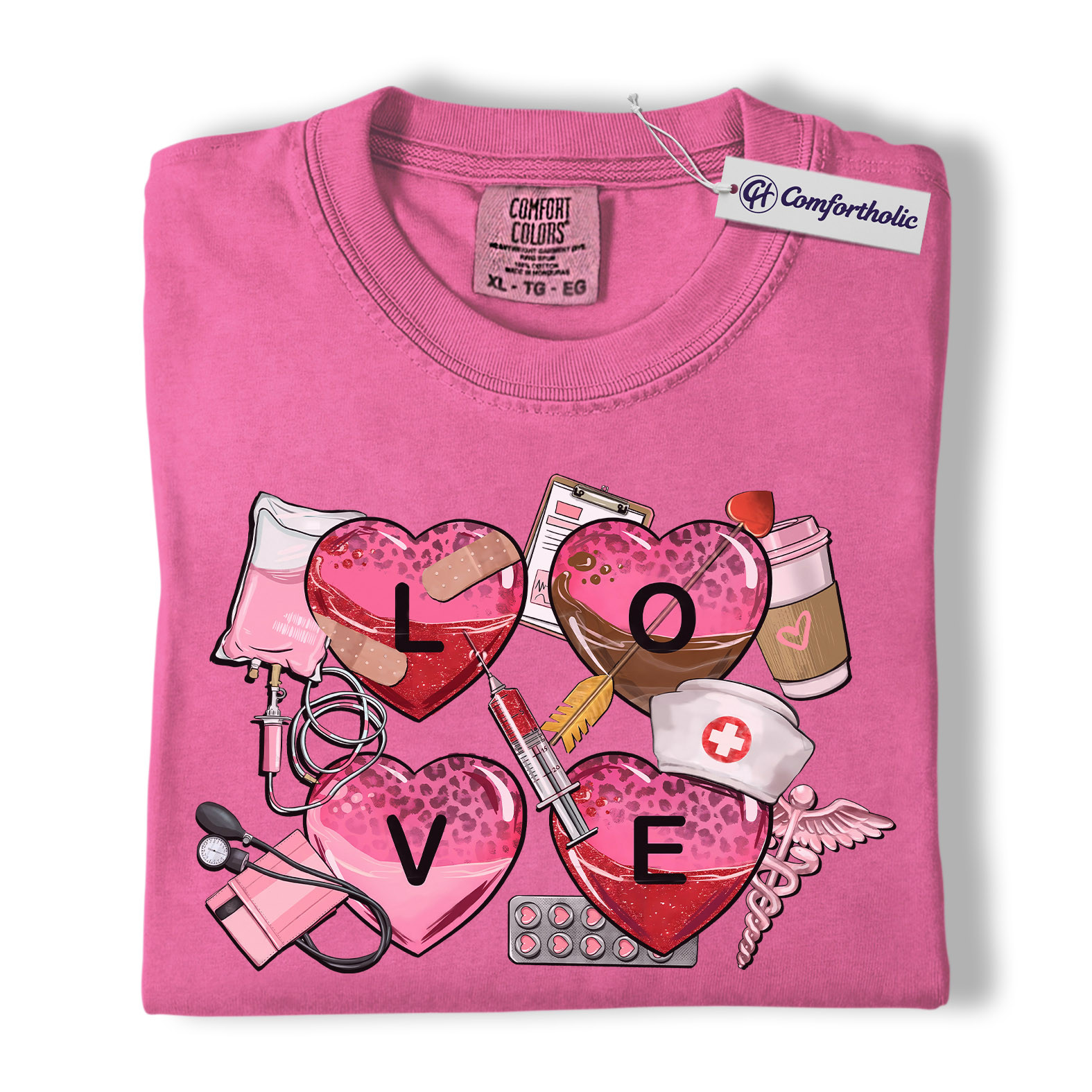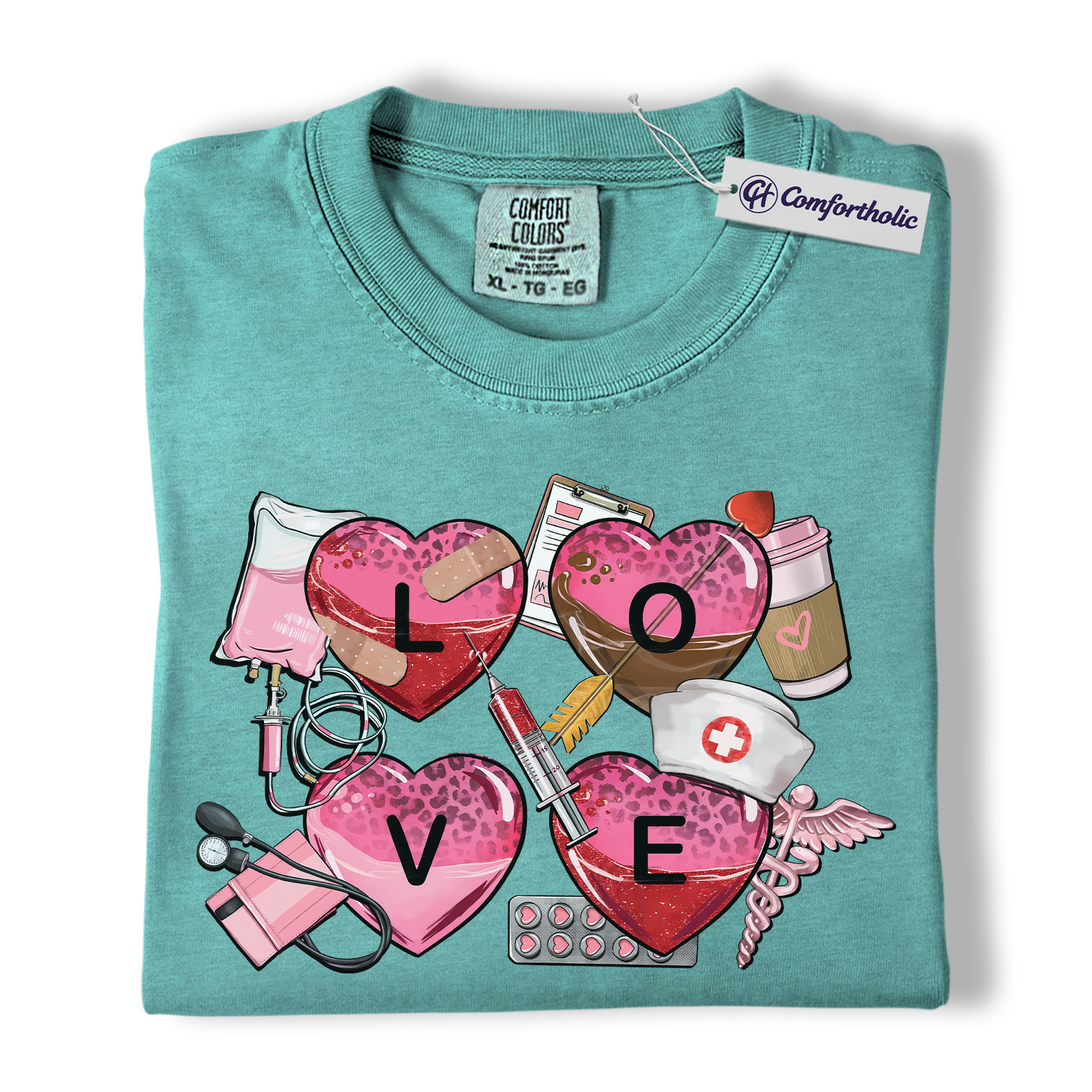 Nurse Love Valentine Shirt, Cute Medical Heart Graphic Tee, Healthcare Worker Valentine T-Shirt, Sweet Gift for Nurses, Comfort Colors Shirt
