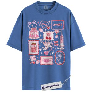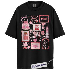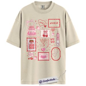 Nurse Valentine Shirt, Pink Coquette Doodle Graphic Tee, Cute Nurse Love Hearts T-Shirt, Valentine’s Day Gift for Nurses & Nursing Students, Comfort Colors Shirt