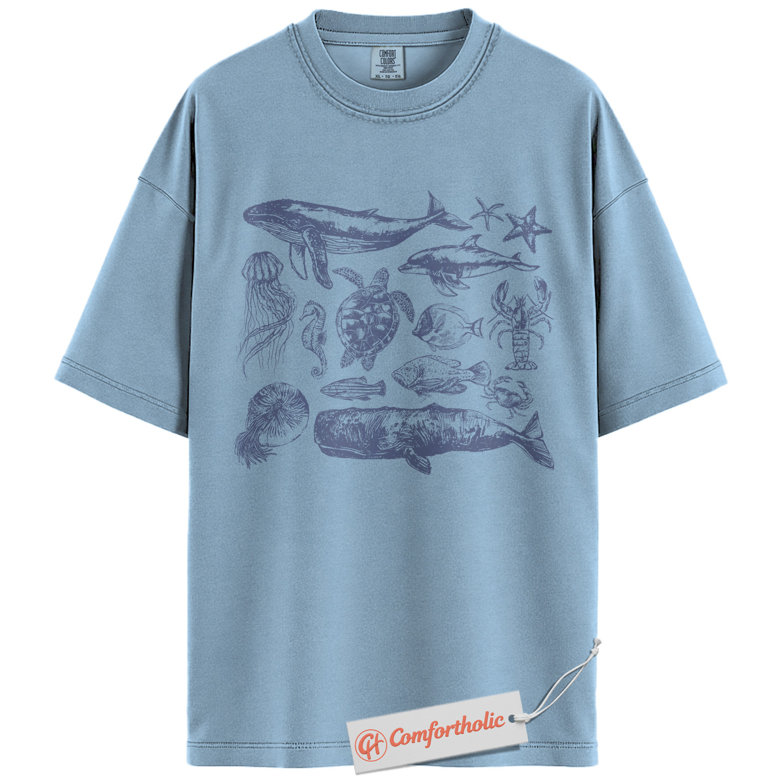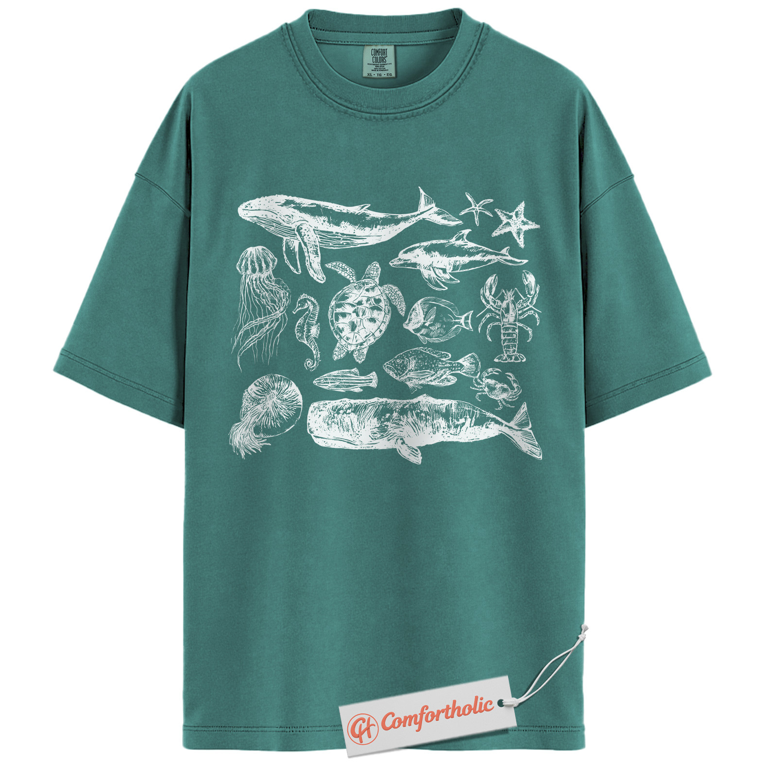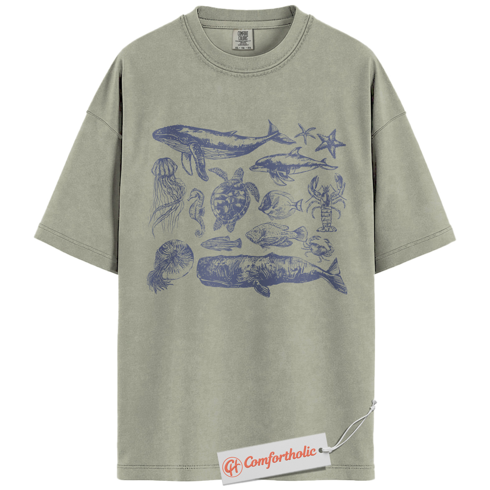 Ocean Creatures Collection Shirt, Marine Life Graphic Tee, Sea Animal Lover T-Shirt, Beach Comfort Colors Shirt