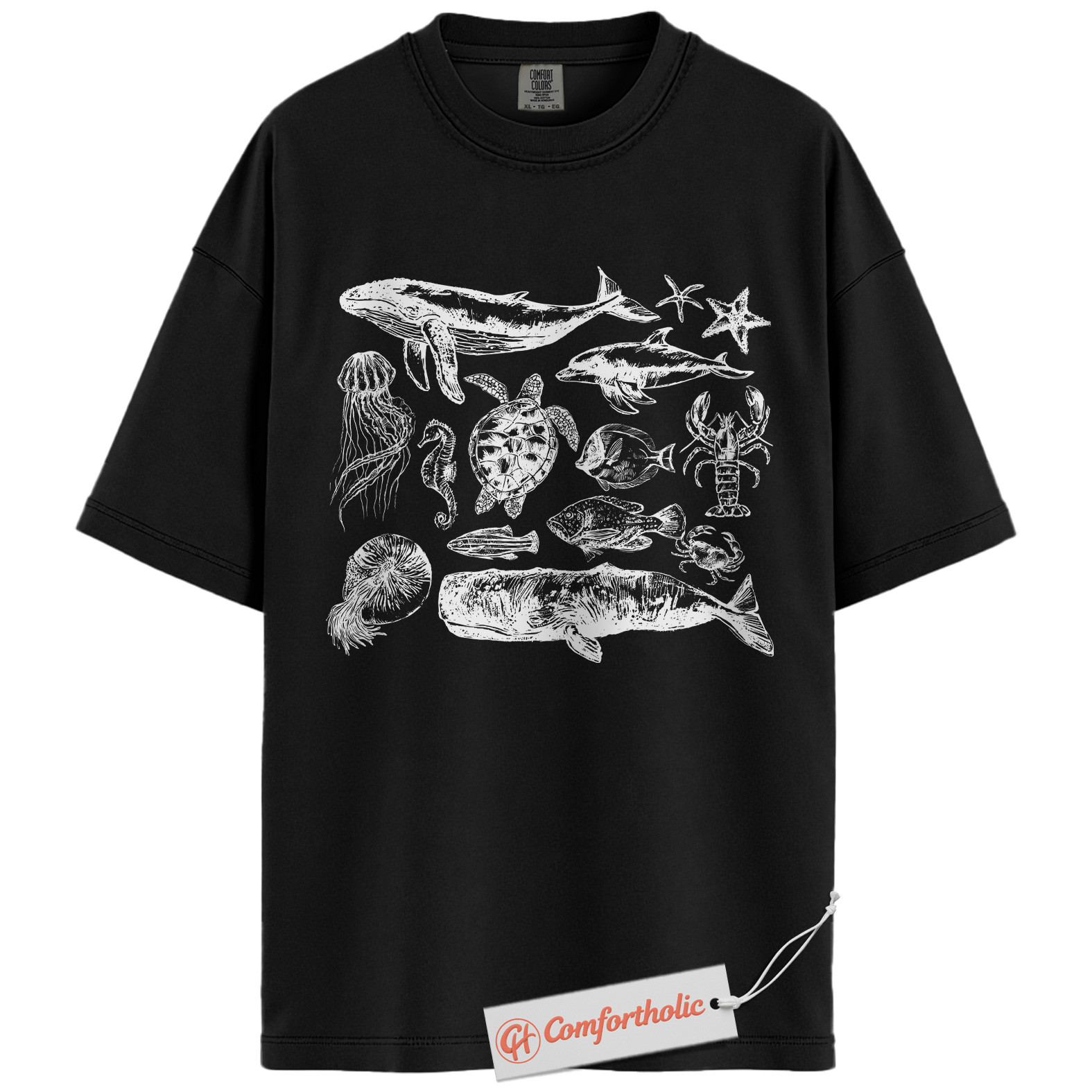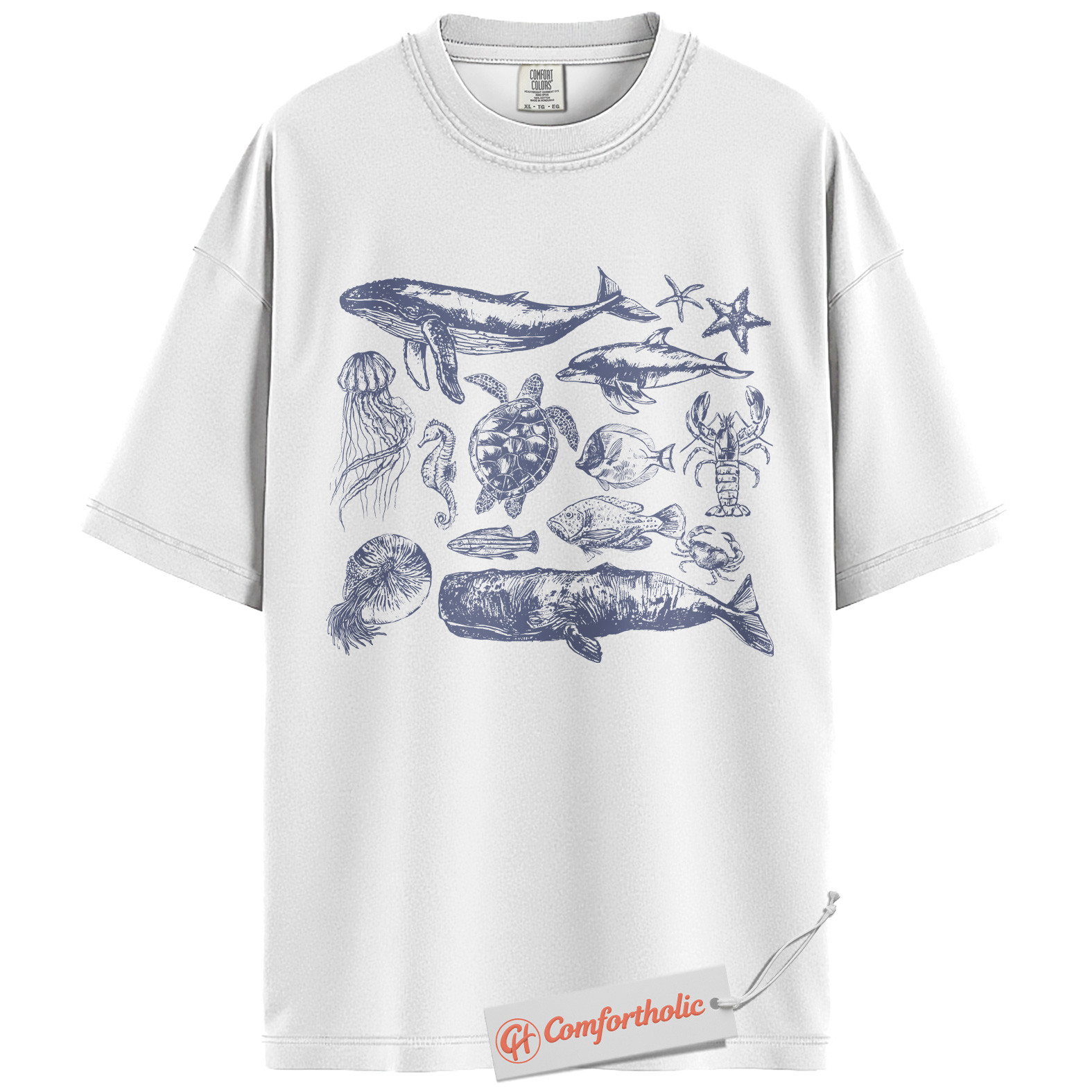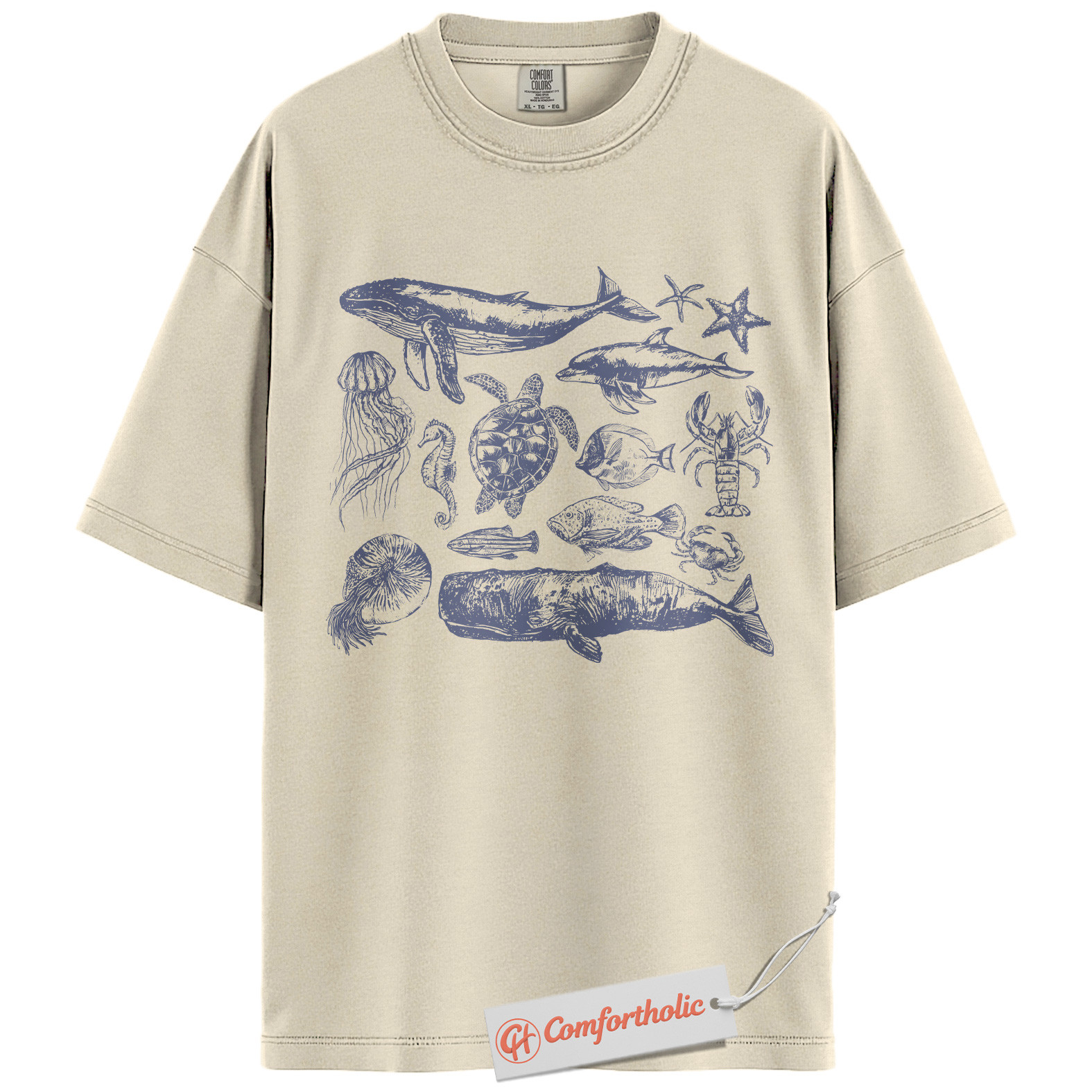 Ocean Creatures Collection Shirt, Marine Life Graphic Tee, Sea Animal Lover T-Shirt, Beach Comfort Colors Shirt