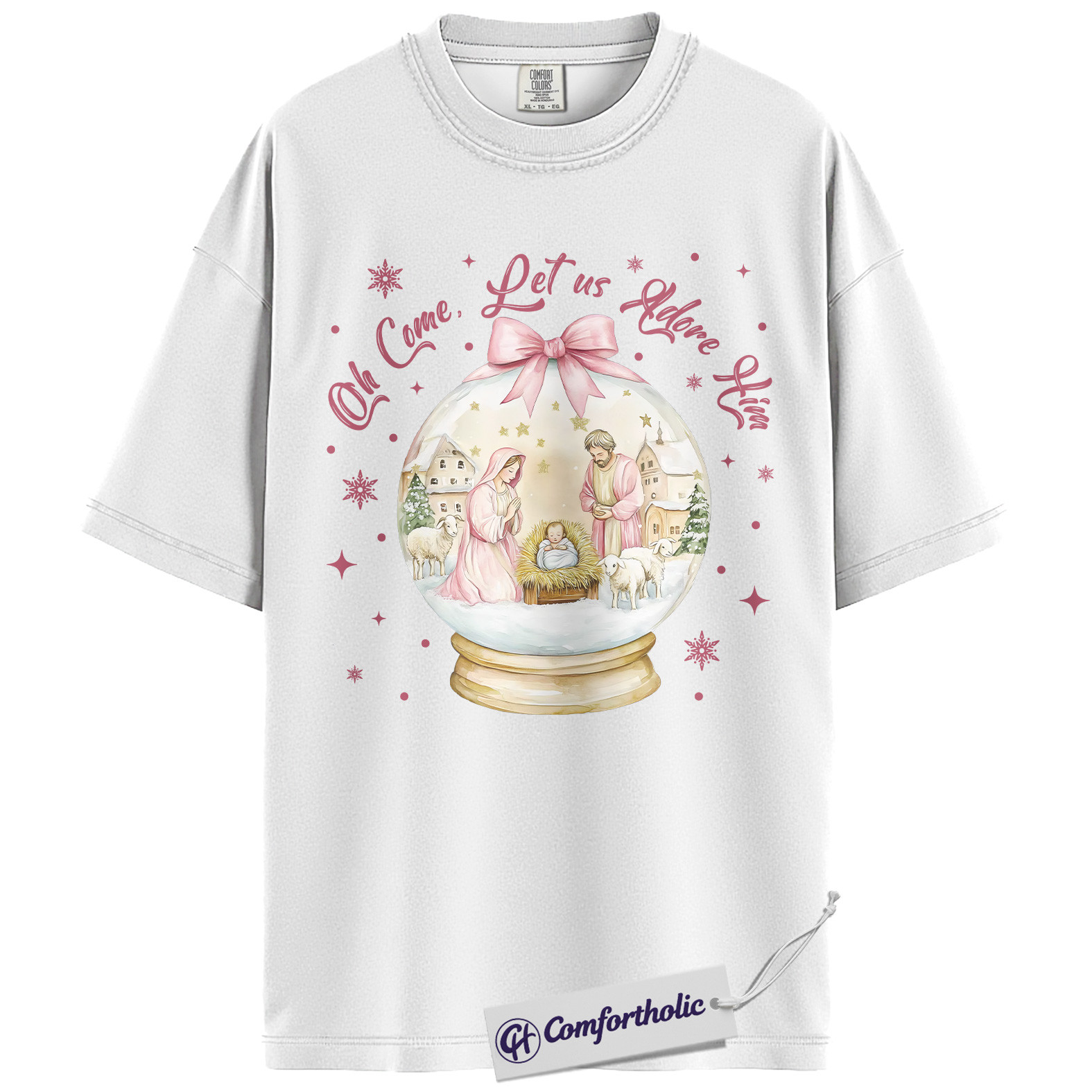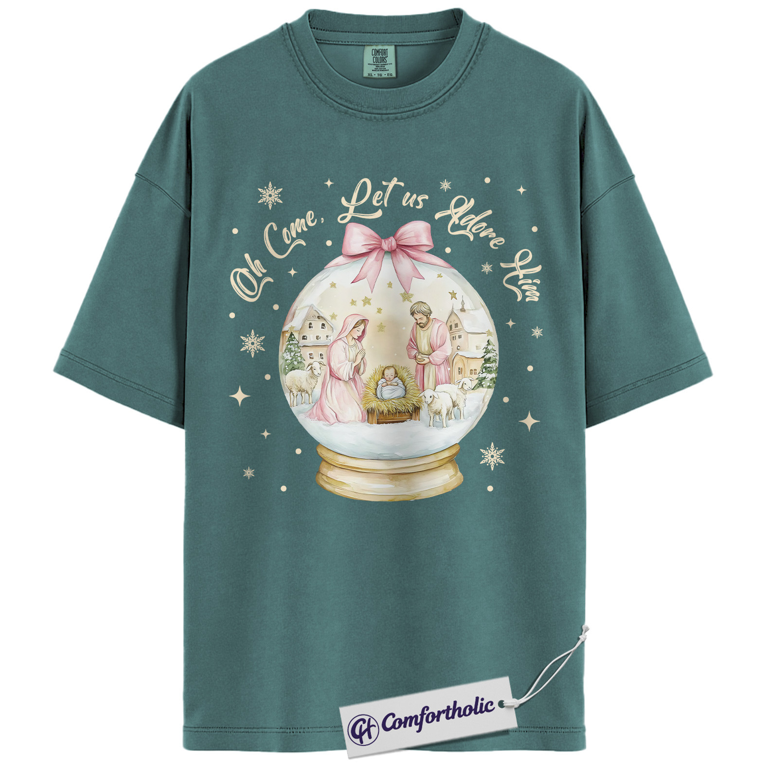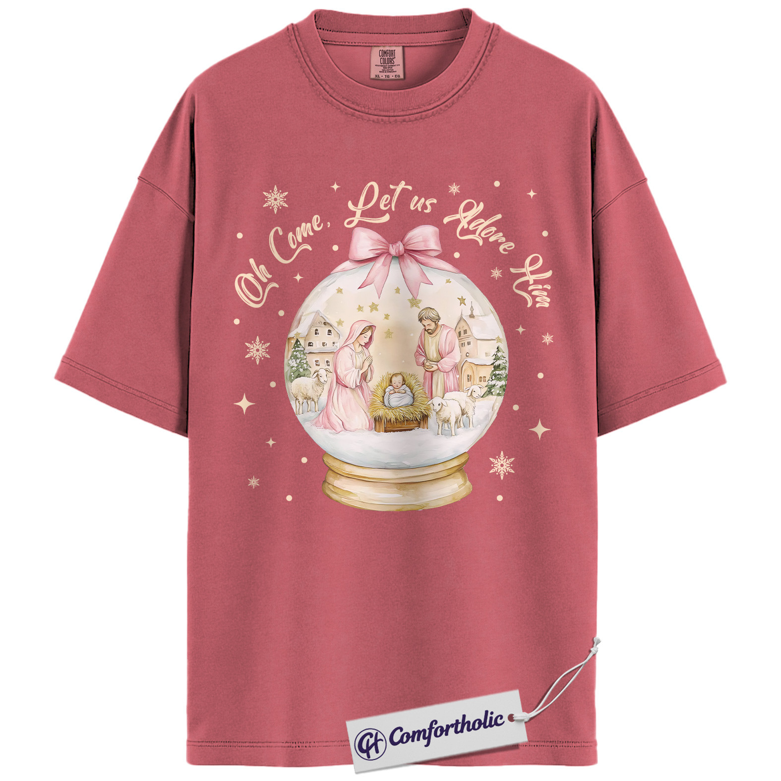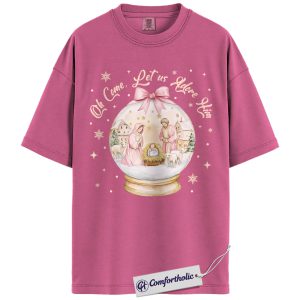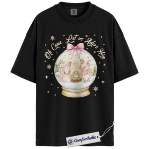 Oh Come Let Us Adore Him Shirt, Christian Nativity Scene T-Shirt, Religious Christmas Graphic Tee, Faith-Based Holiday Gift for Believers, Christmas Comfort Colors Shirt