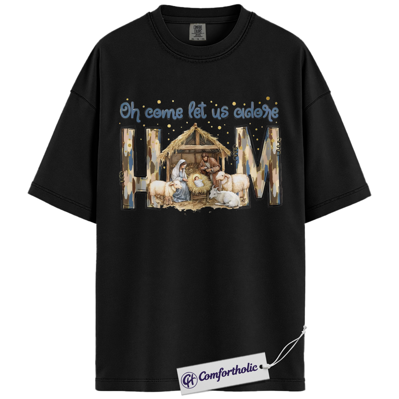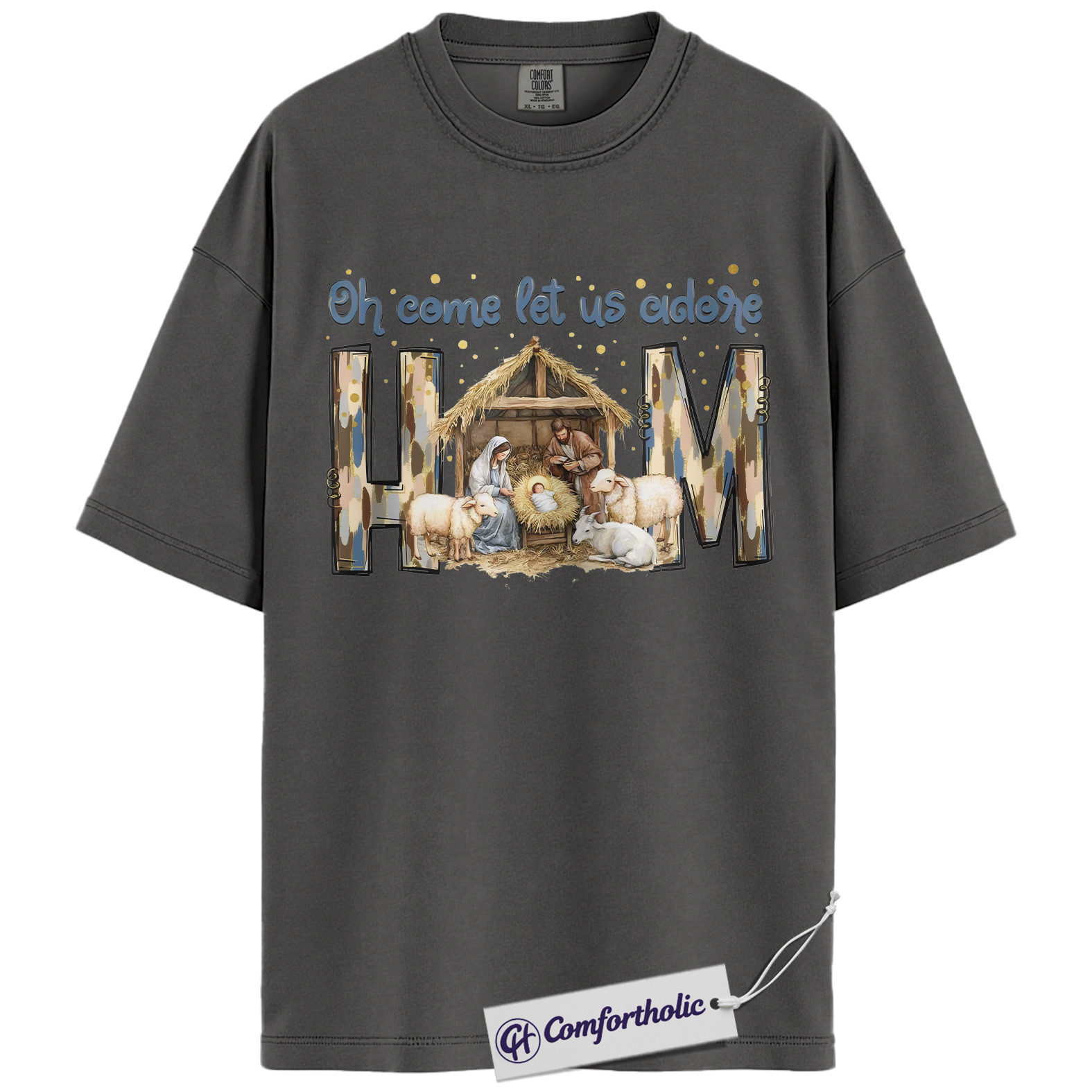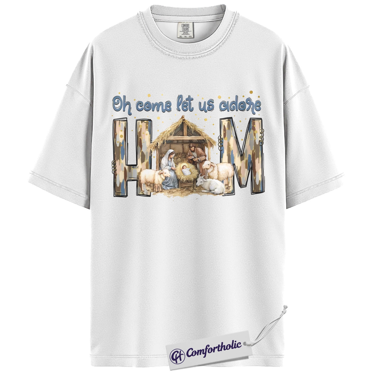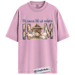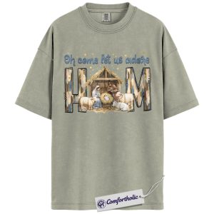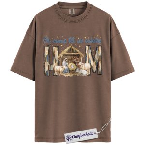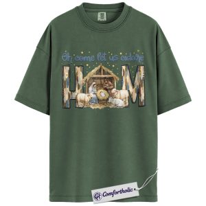 Oh Come Let Us Adore Him Shirt, Christian Nativity Scene T-Shirt, Religious Christmas Graphic Tee, Faith-Based Holiday Gift for Believers, Christmas Comfort Colors Shirt